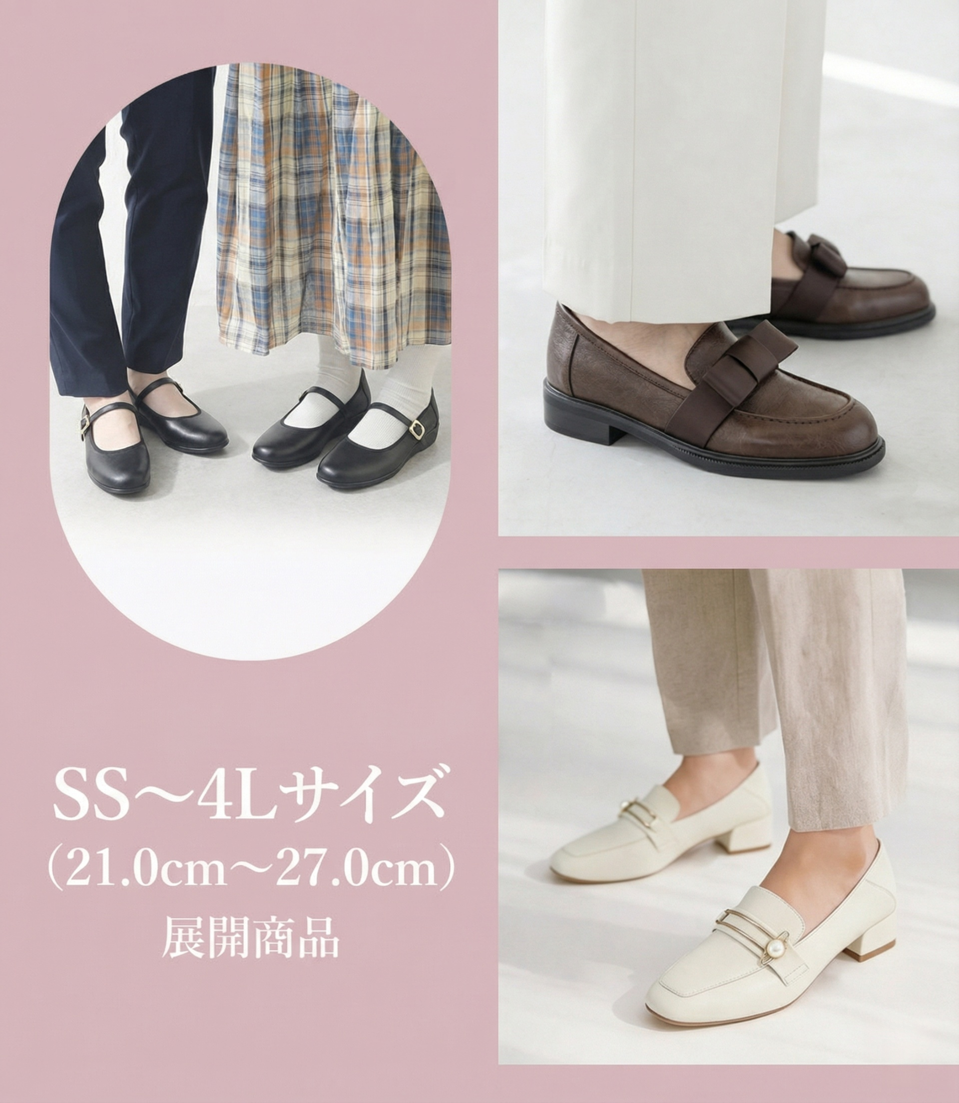 本革 レトロシューズ 4E 幅広設計 2.5cmヒール 面ファスナー ストラップ 痛くない