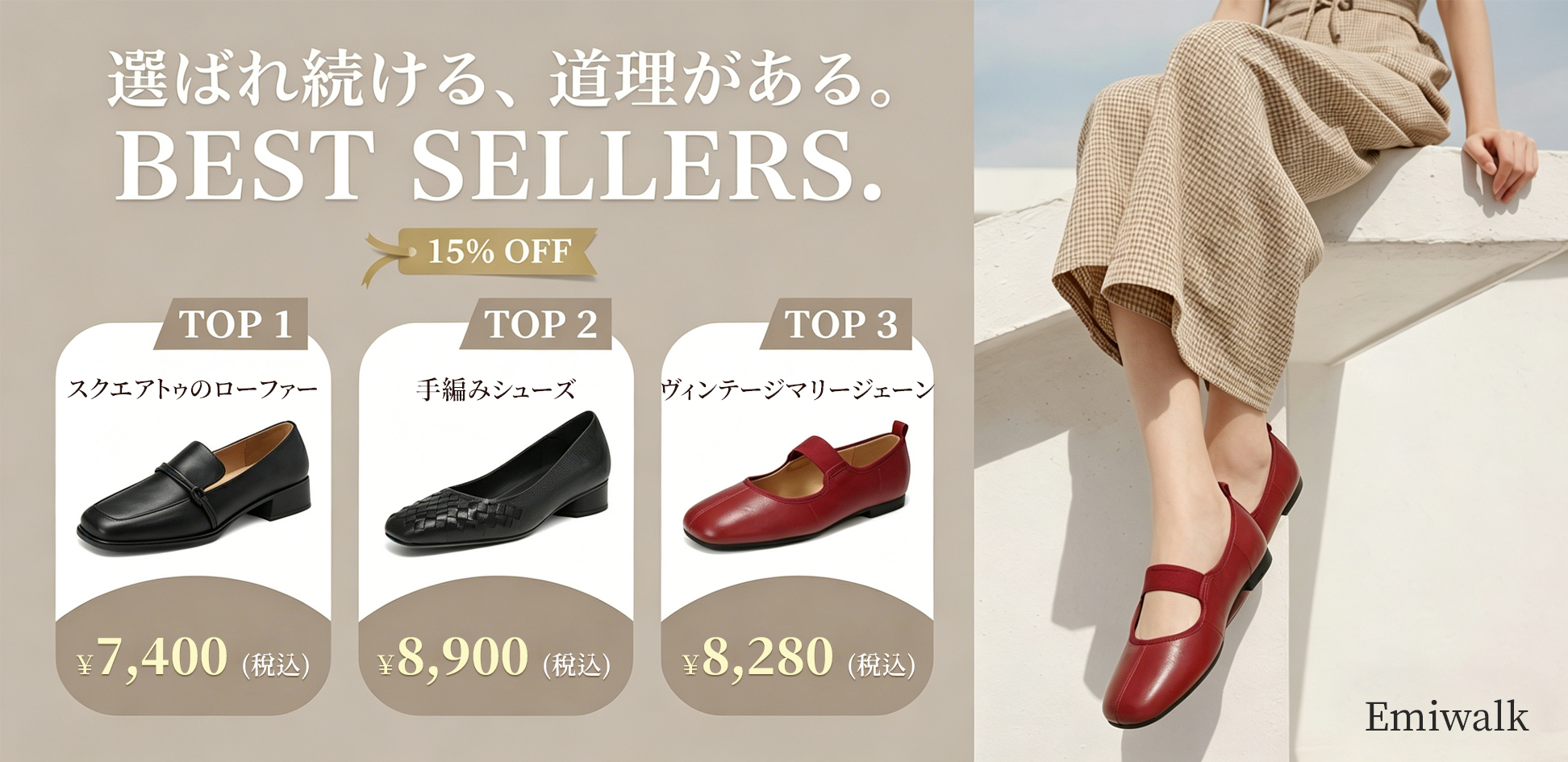 【外反母趾さんも痛くない】とろける履き心地の上質本革 ラウンドトゥパンプス|Emiwalk