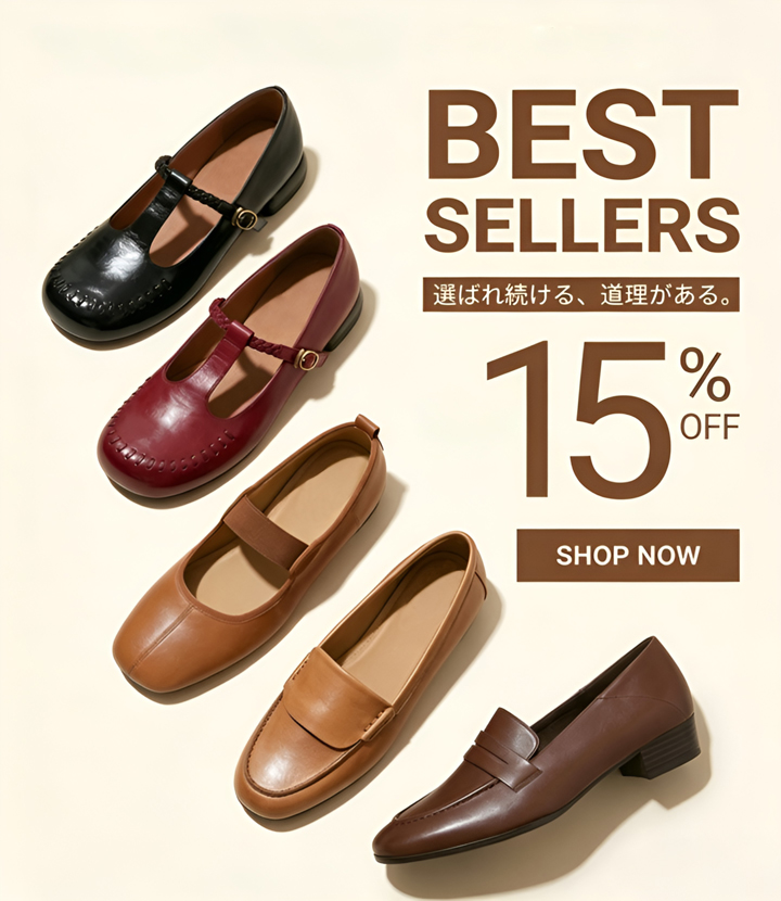 本革手縫いレディースフラットパンプス 柔らかソール 幅広2E 屈曲性ローファー