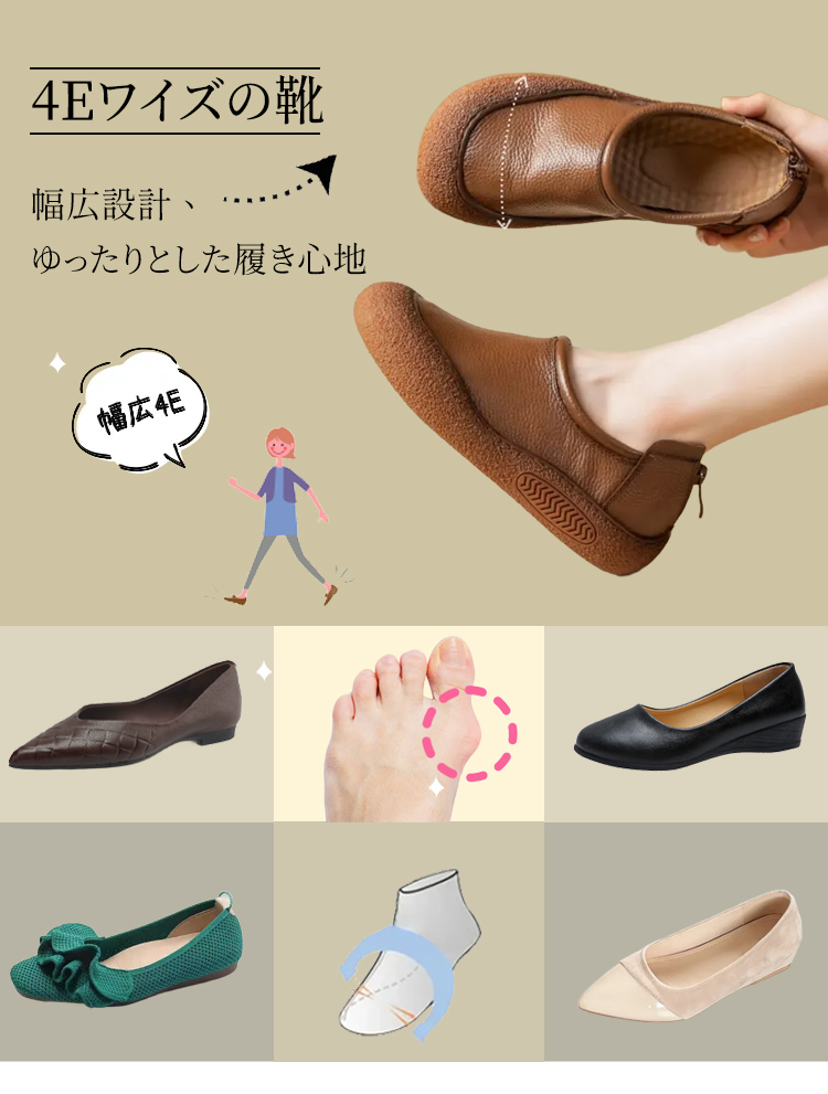 本革 幅広4E コンフォートシューズ 外反母趾対応 レトロ スリッポン レディース