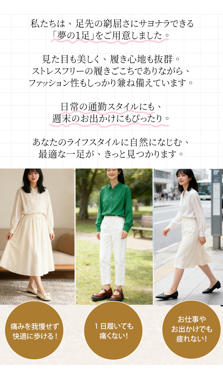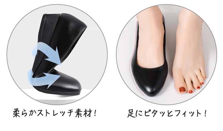 幅広 4E 外反母趾対応 軽量 ストレッチパンプス ウェッジソール 5cm 痛くない 走れる 牛革