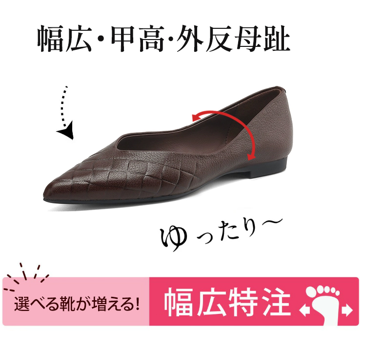 ラムスキン キルティング フラットパンプス 4E 幅広 外反母趾対応 痛くない ぺたんこ ポインテッドトゥ 羊革 レディース