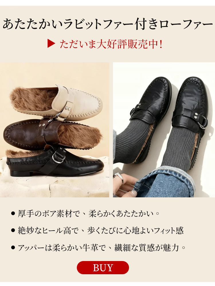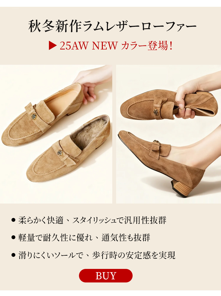 上質牛革 ギャザーデザイン フラットシューズ ワンピース成型 手作りバックル仕様