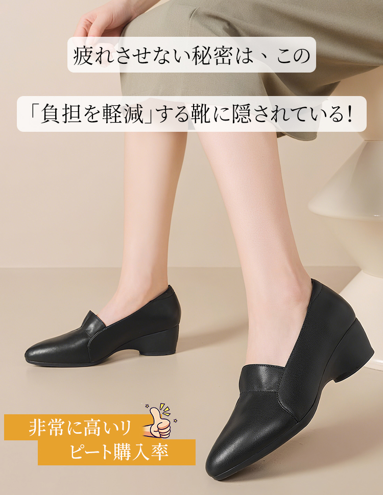 「素材・フィット感をグレードアップ版に刷新」牛革製の浅口・尖頭パンプス| 通勤・お出かけに最適