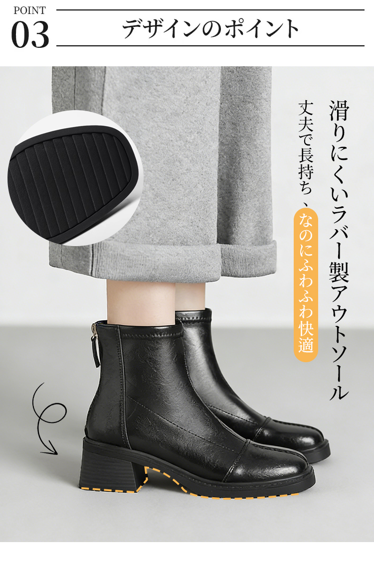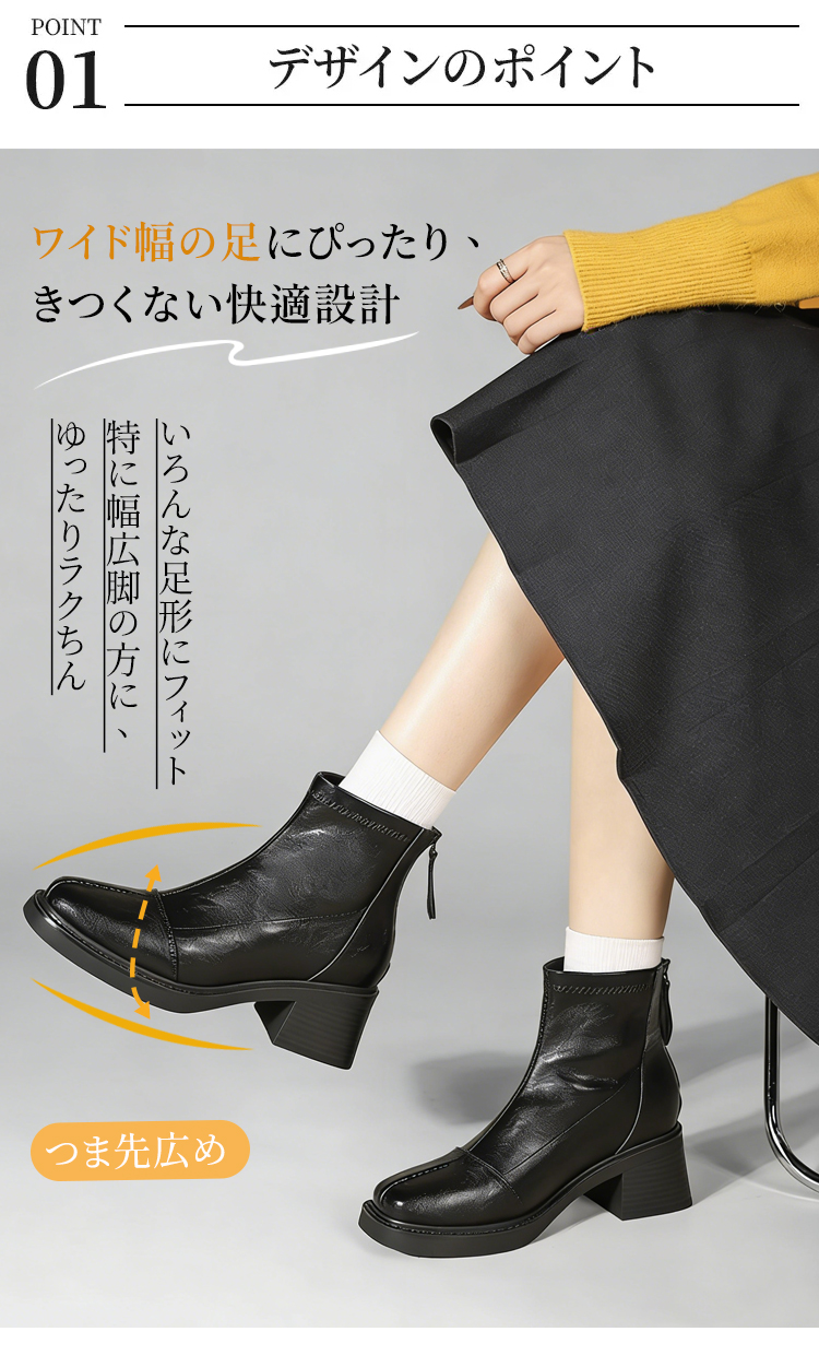 毎日履く人のための柔らか素材ショートブーツ|スクエアトゥ・太めヒール・幅広対応・軽量