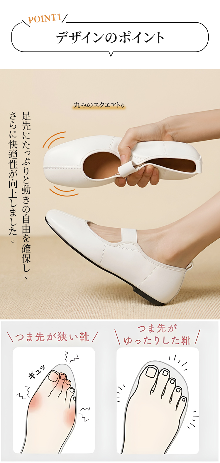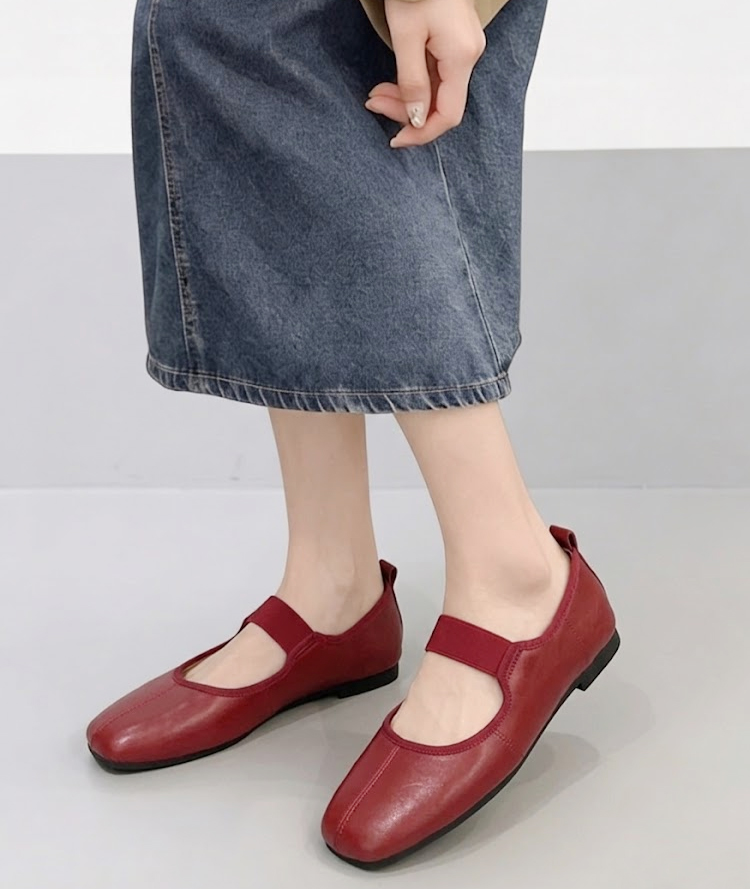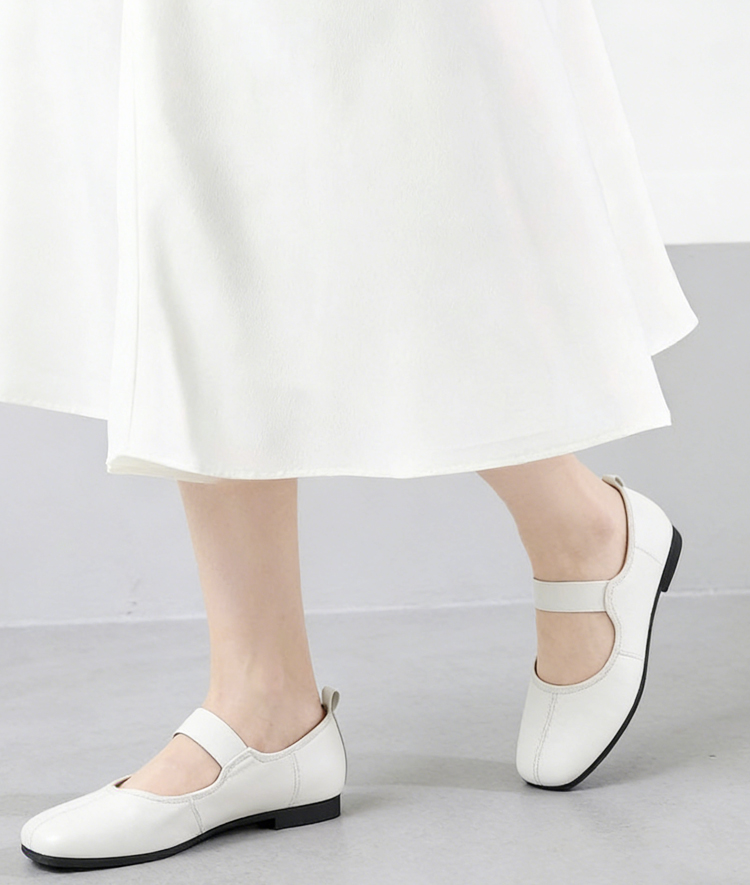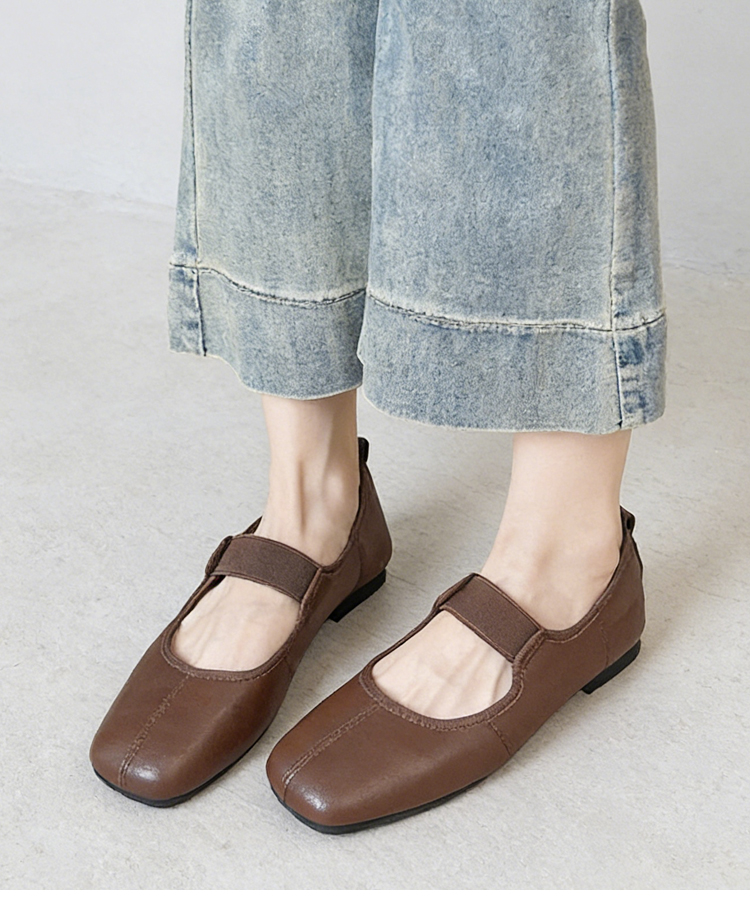 2026新モデル プレミアム羊革 スクエアトゥ メリージェーン 超軽量 コンフォート フラットシューズ