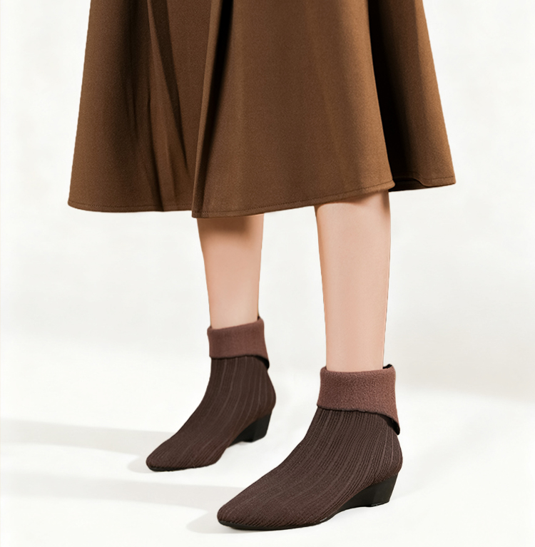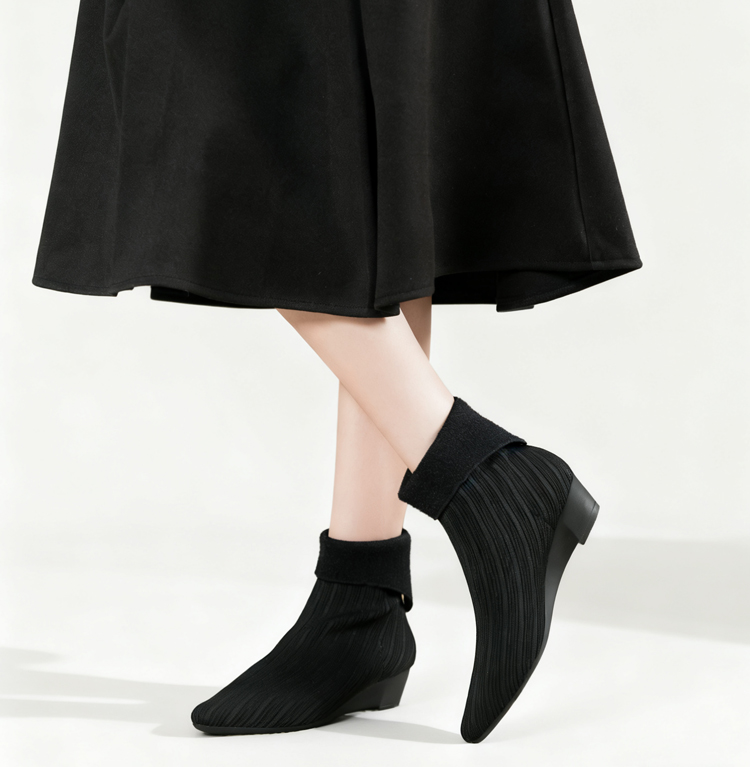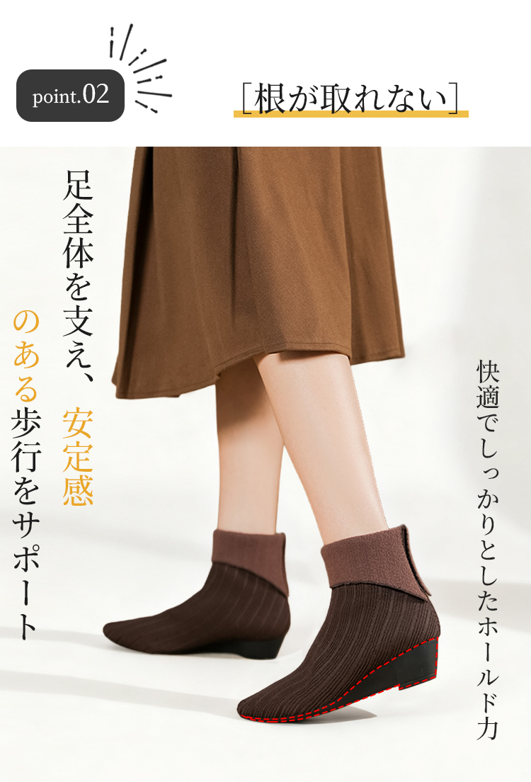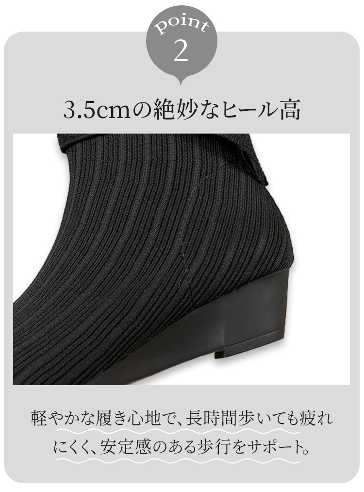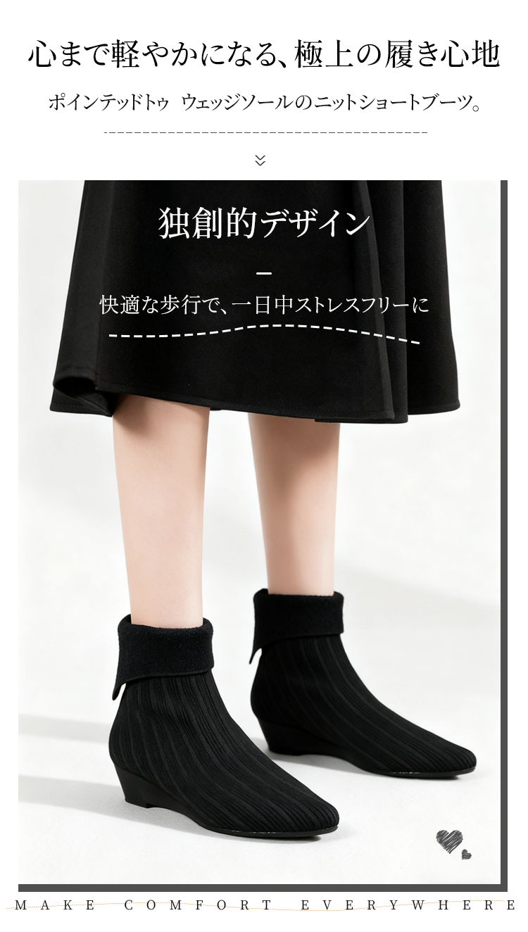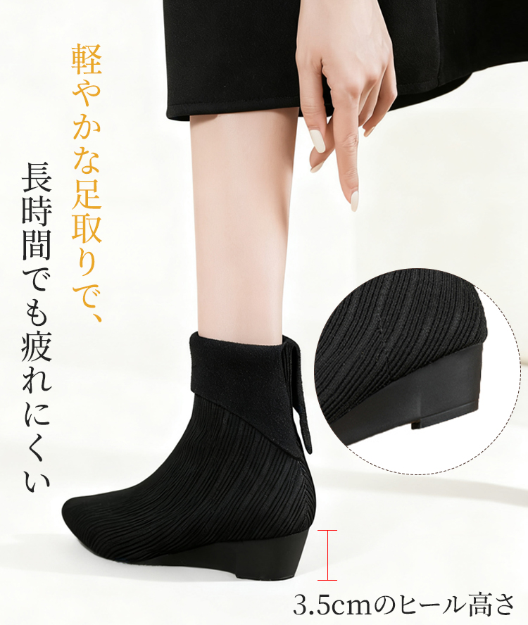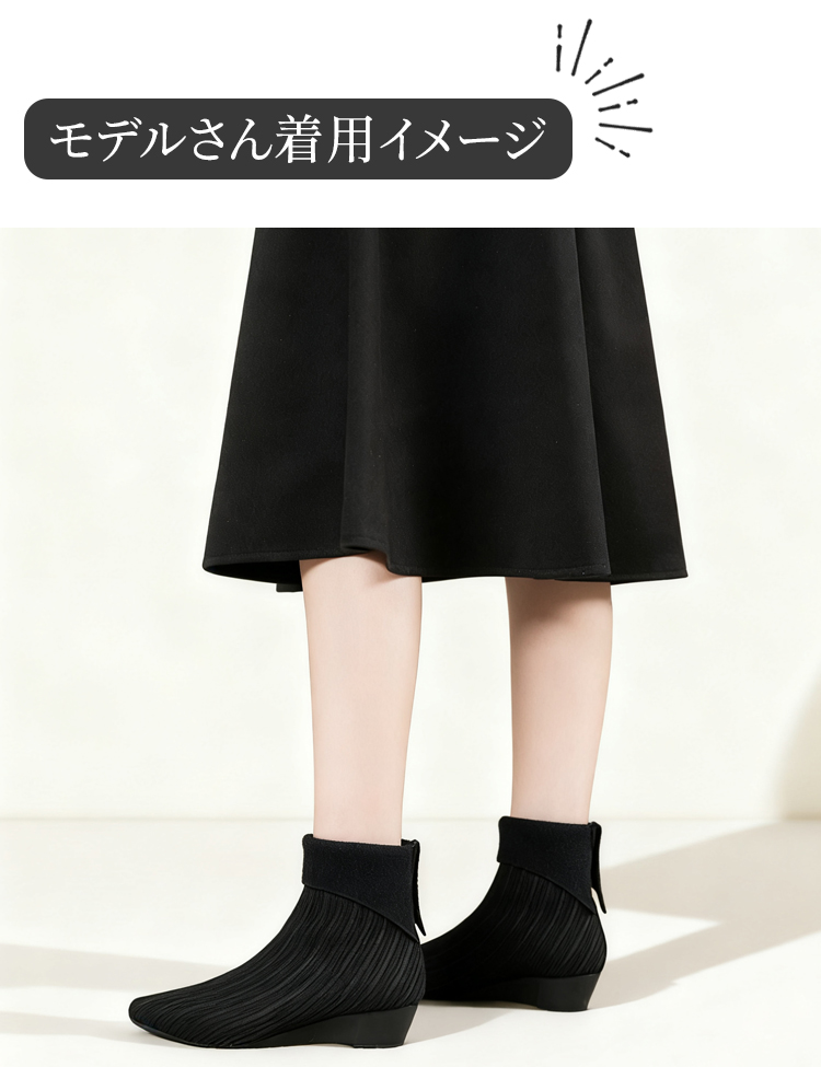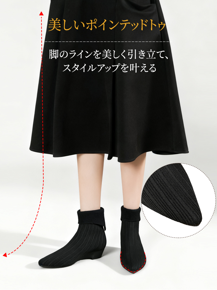 2WAY ポインテッドトゥ ニットショートブーツ 折り返しデザイン ウェッジソール 疲れにくい