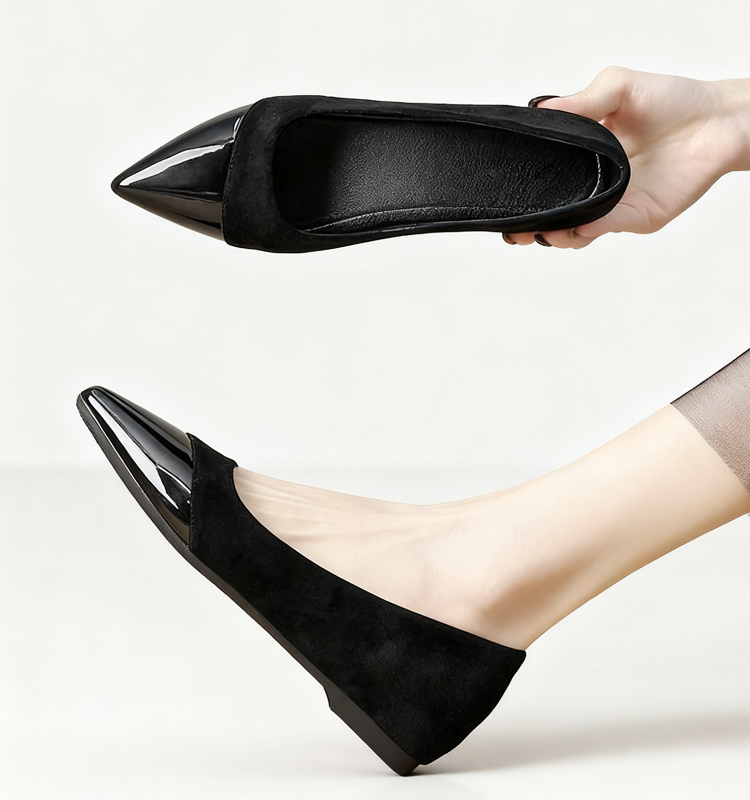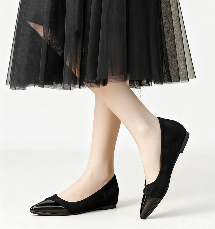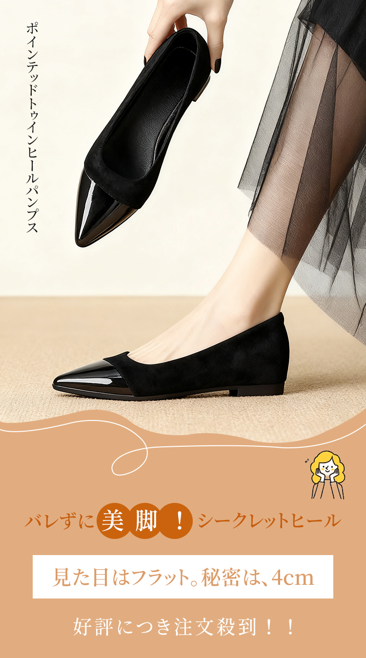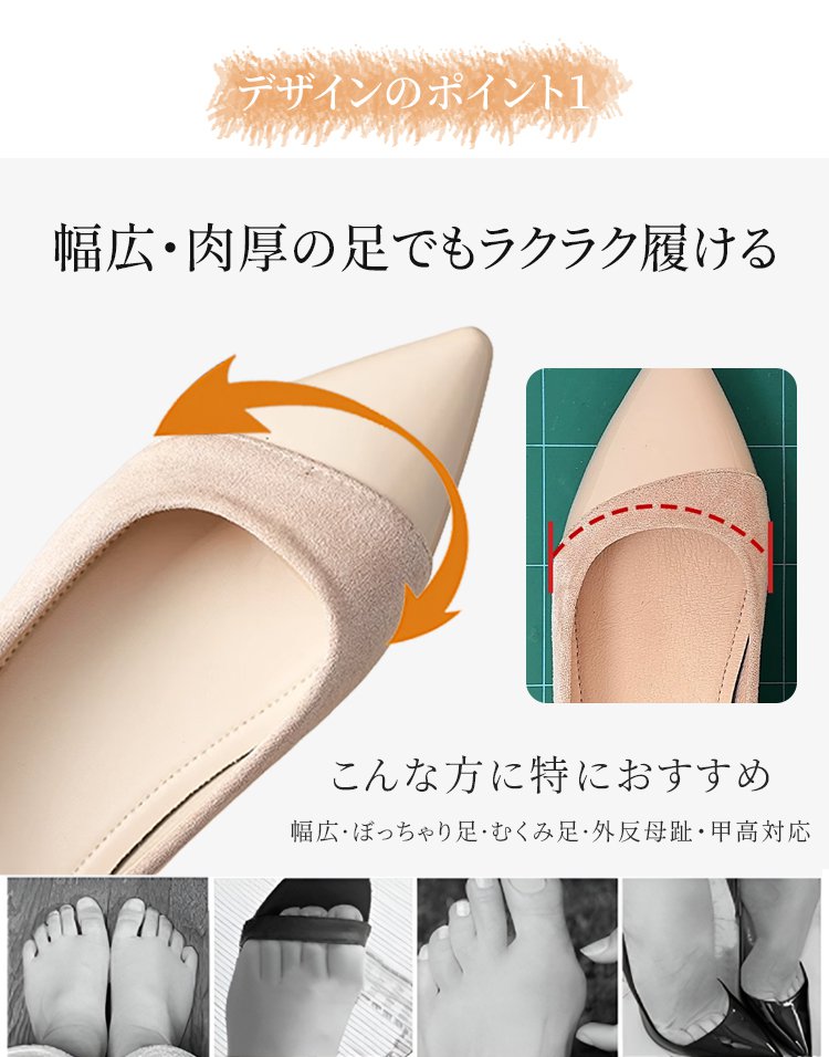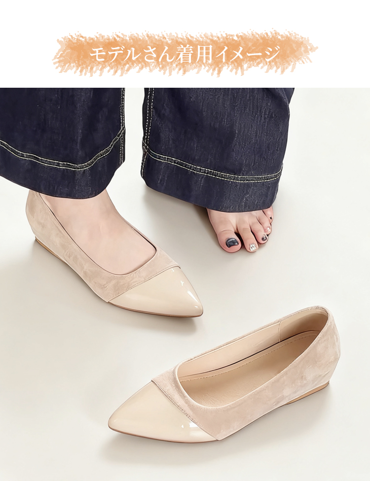 4cmインヒールパンプス 4E 幅広 外反母趾対応 痛くない 美脚 脚長 ポインテッドトゥ スエード 本革 レディース