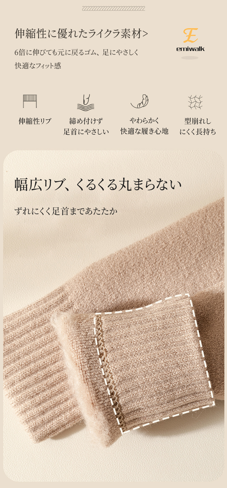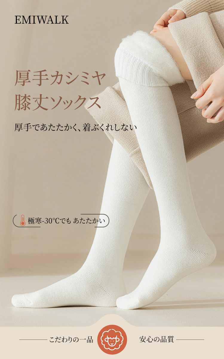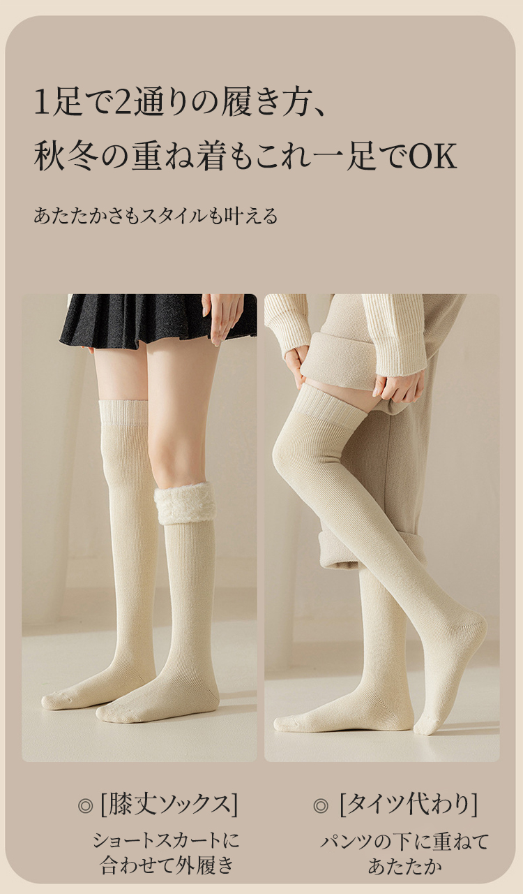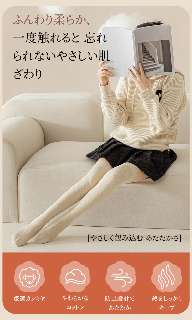 裏カシミヤ ニーハイソックス 厚手 膝丈 ロングソックス 防寒 蓄熱保温