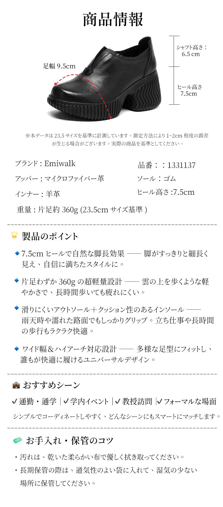 【当店売れ筋No.1】「7.5cmのヒール高さ」幅広対応・甲高OK|単裏と裏起毛の2タイプから選べます|emiwalk