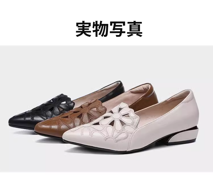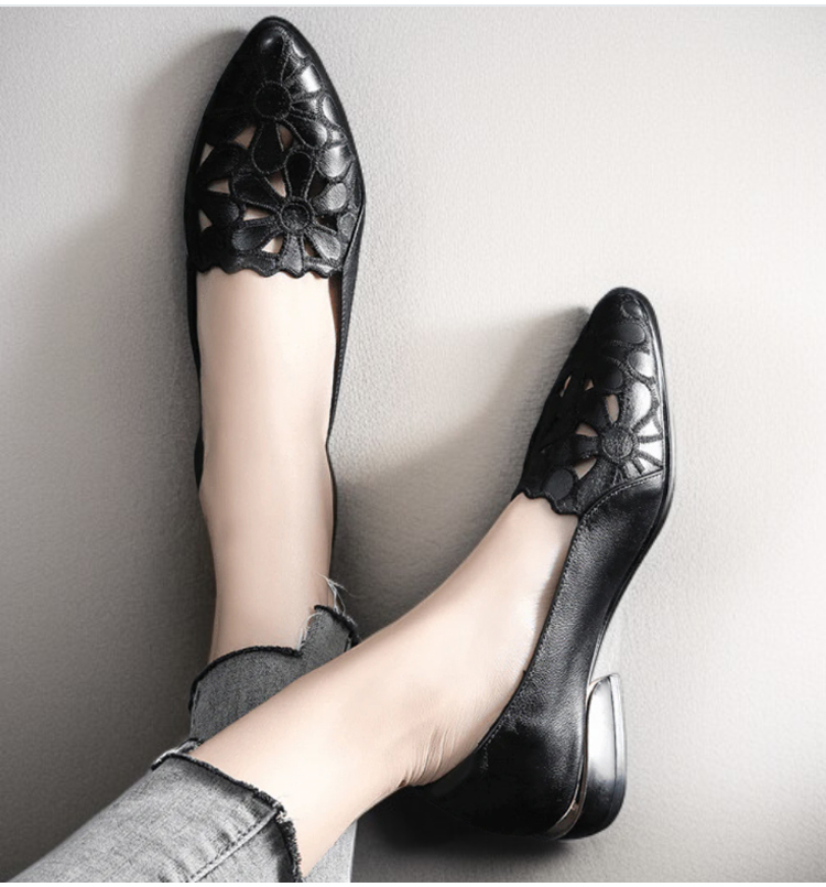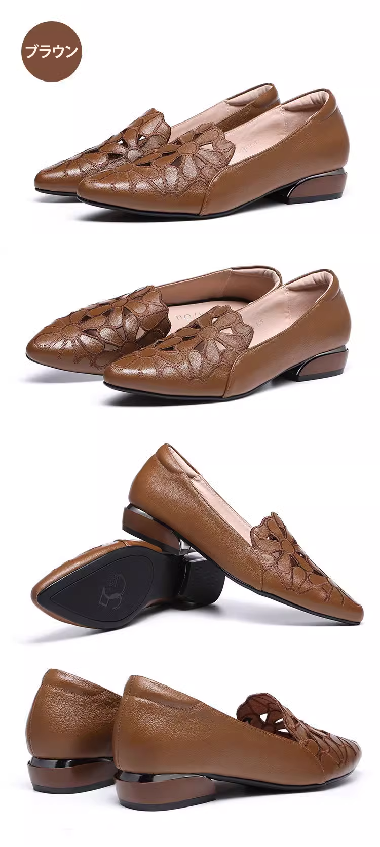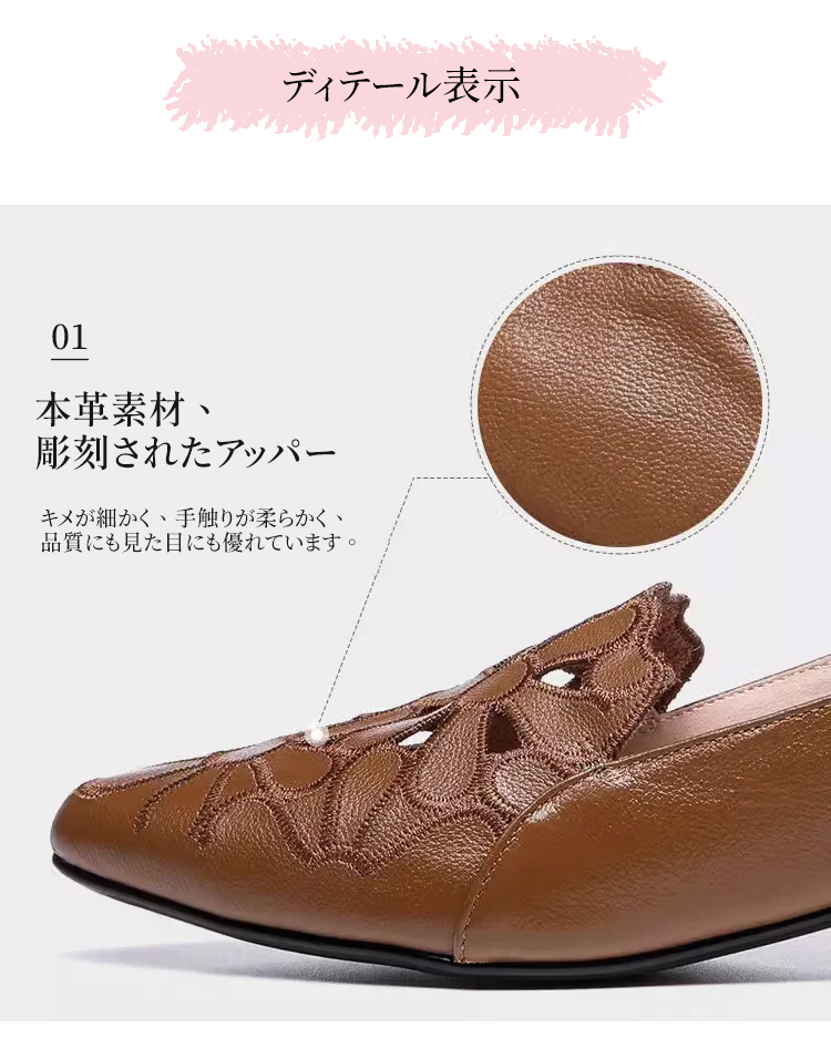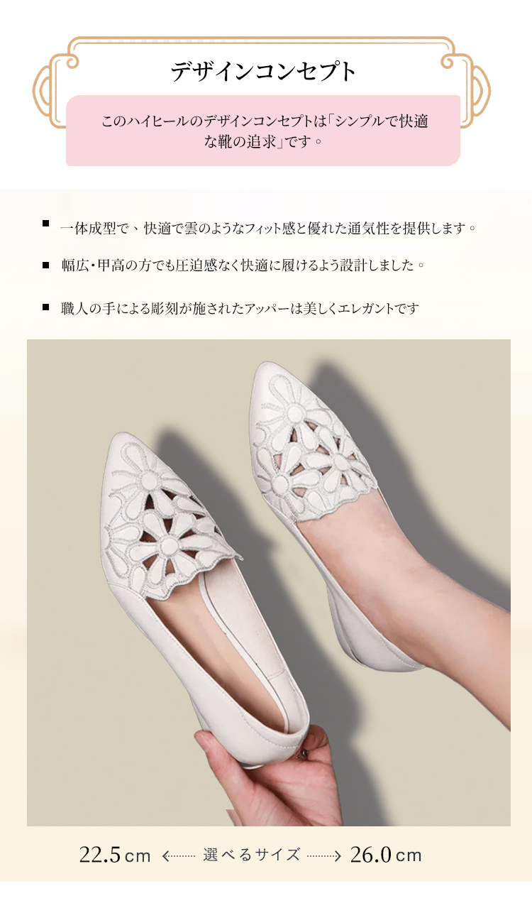 外反母趾対応 フラワーカット ポインテッドトゥ パンプス ローヒール 2.5cm 痛くない 幅広 甲高