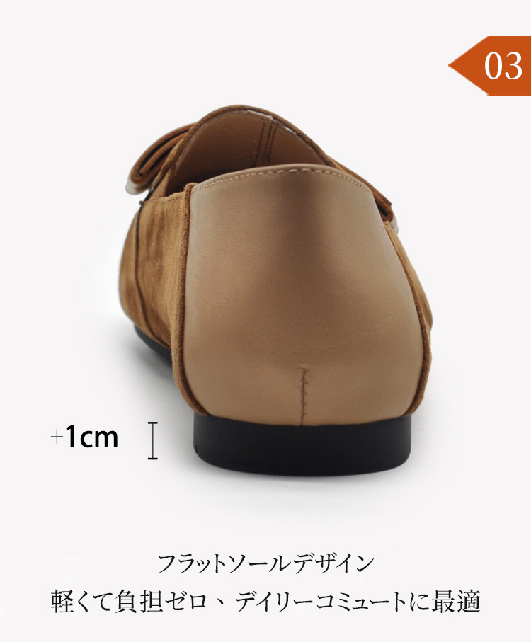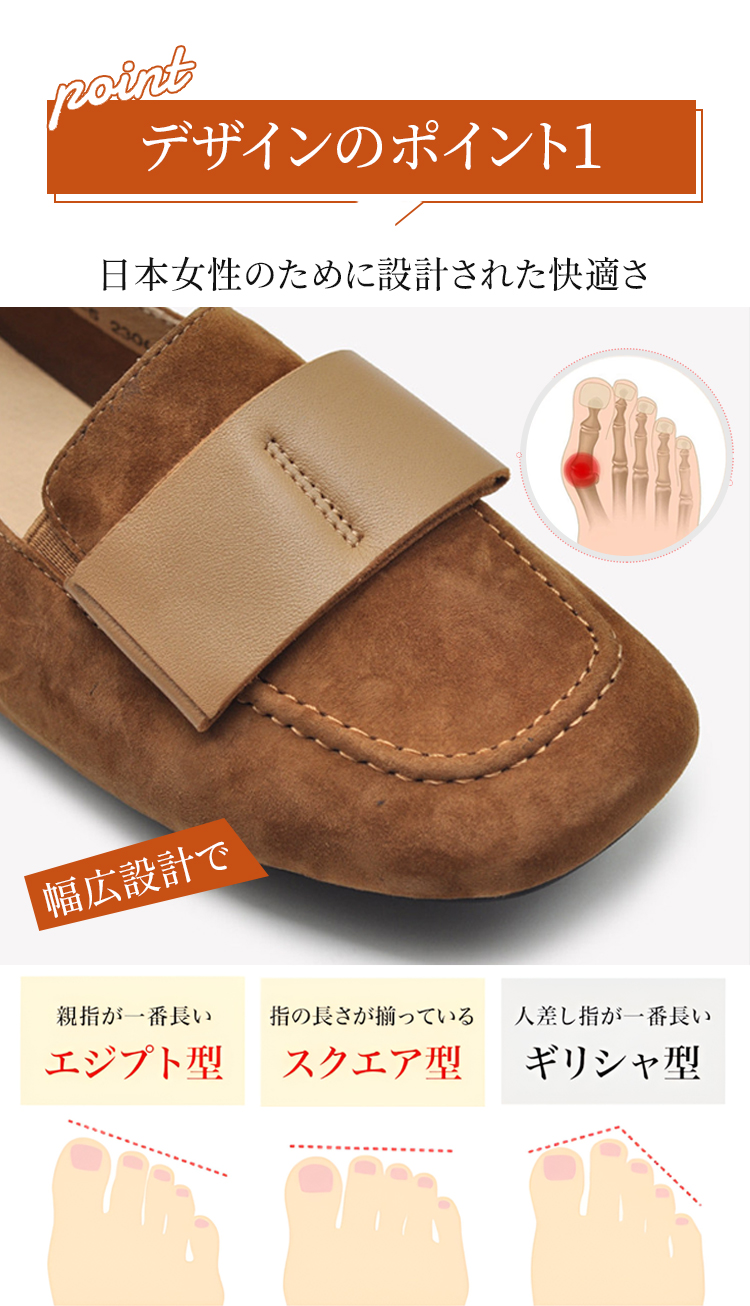 本革スエード 2WAY スクエアトゥ ローファー 幅広設計 外反母趾サポート