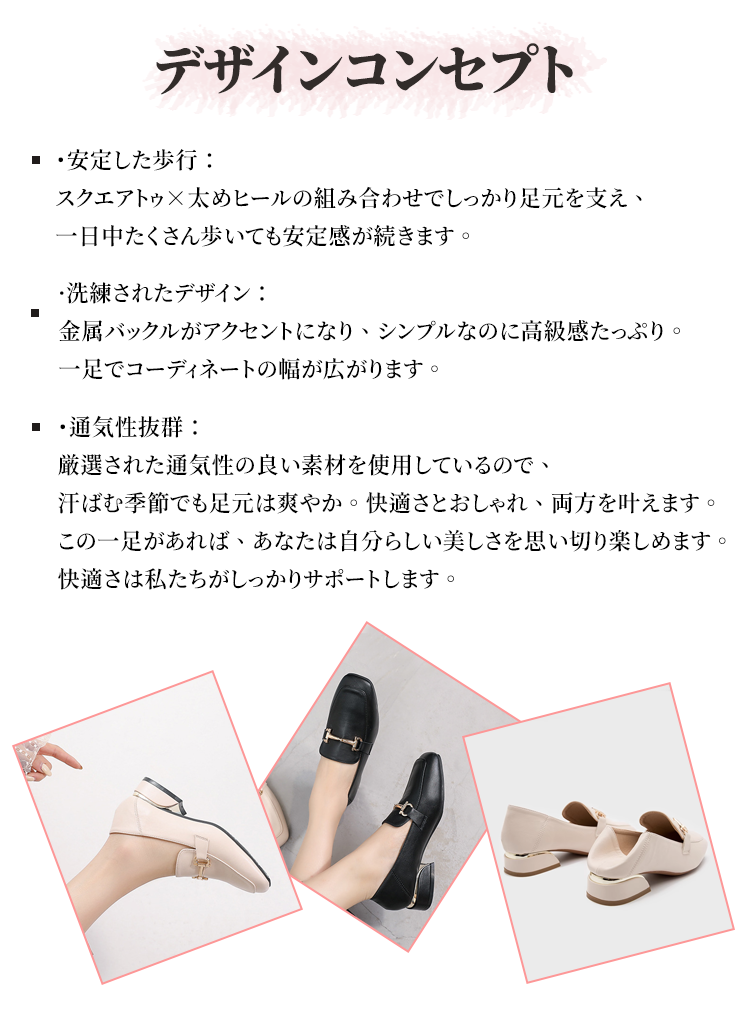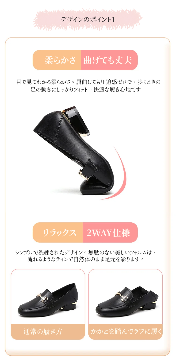 本革 2WAY スクエアトゥ ビットローファー 3層構造コンフォートインソール