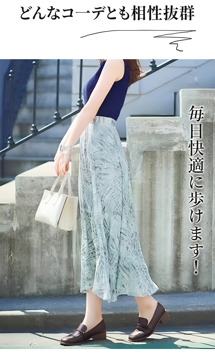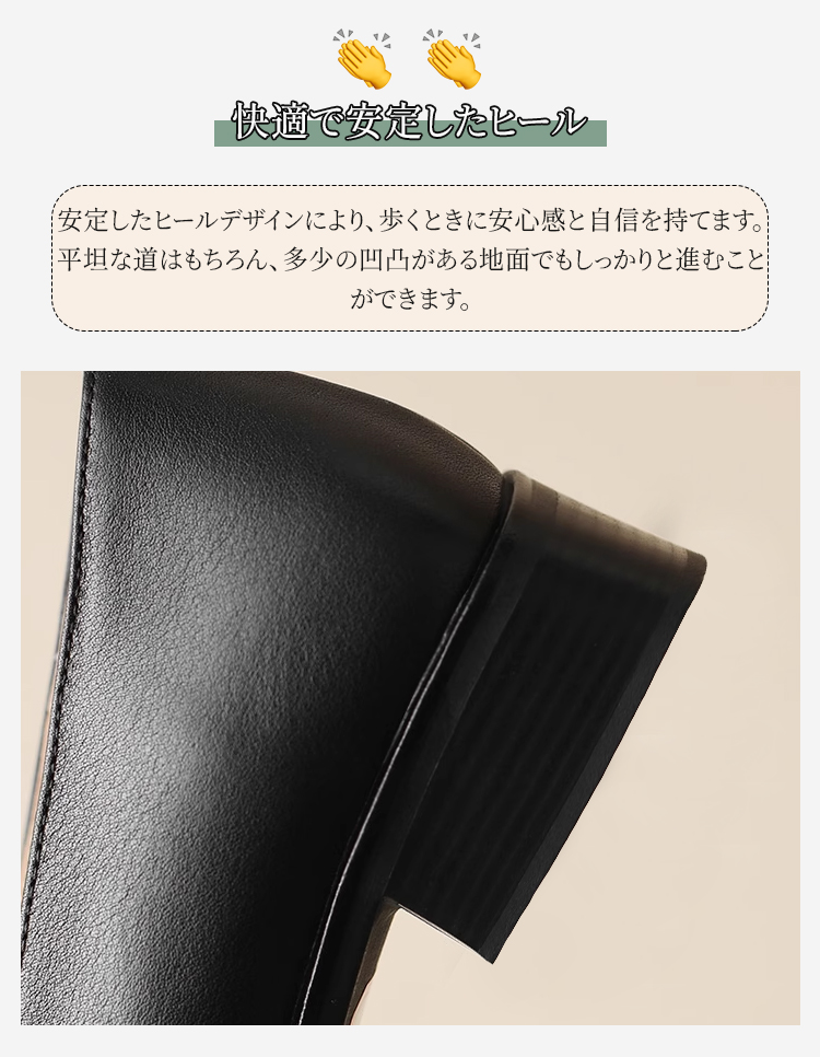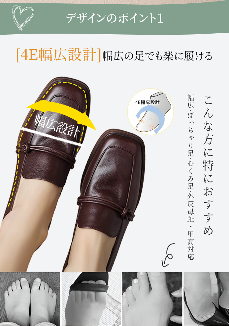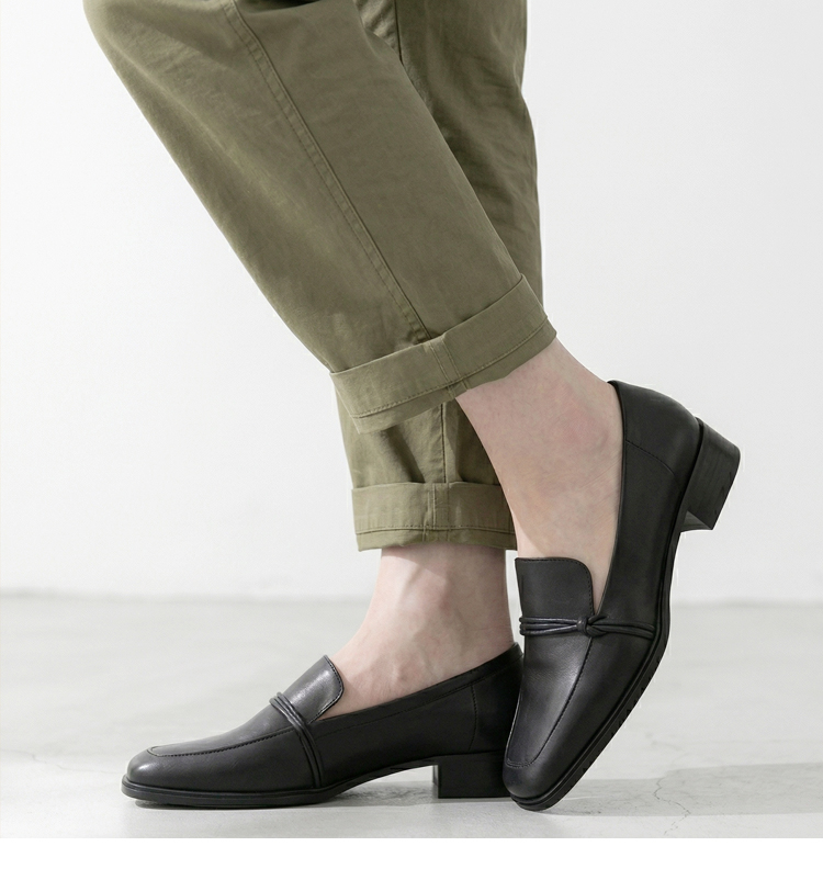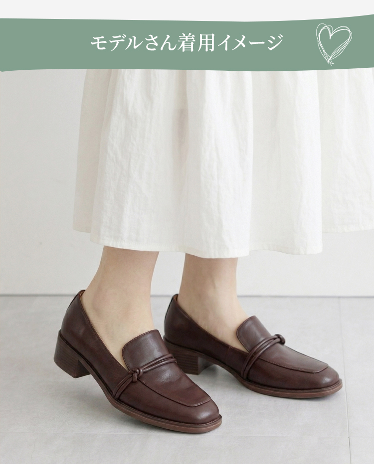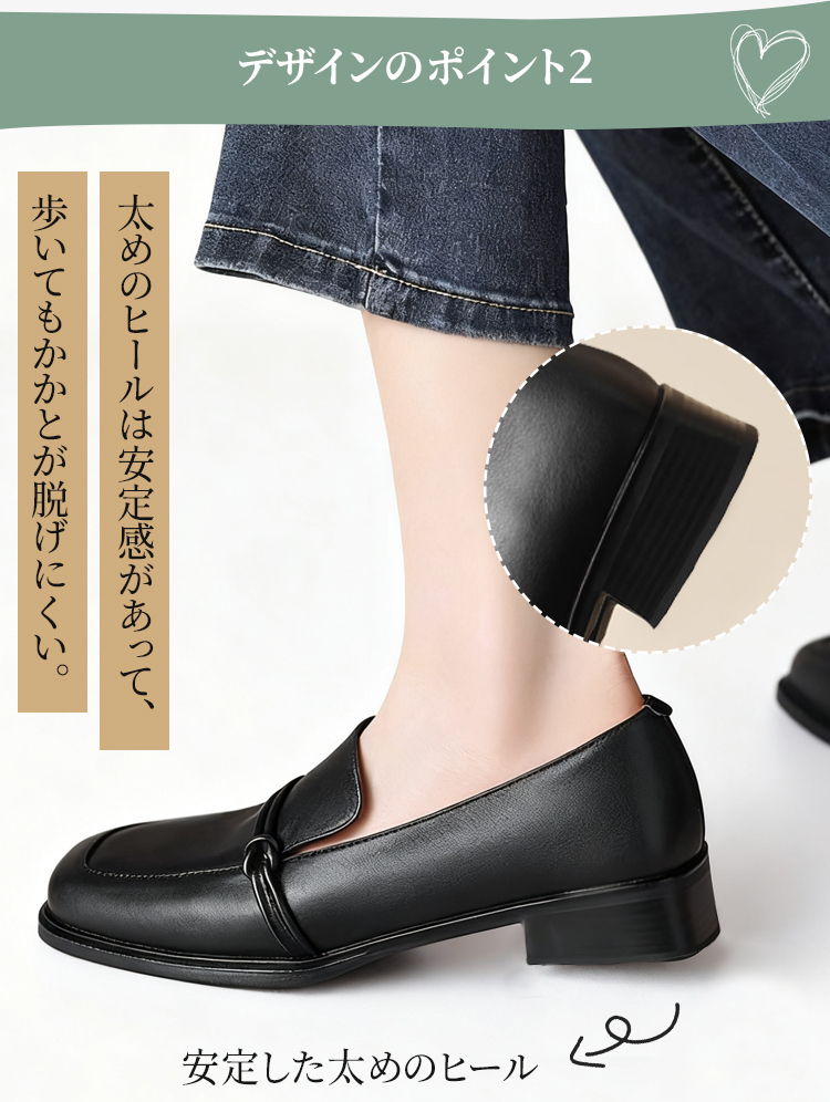 スクエアトゥ ローファー 4E幅広設計 抗菌防臭インソール 太ヒール レディース