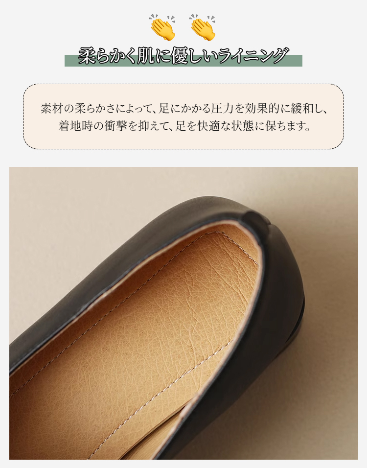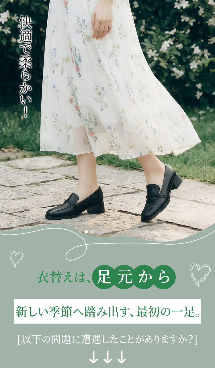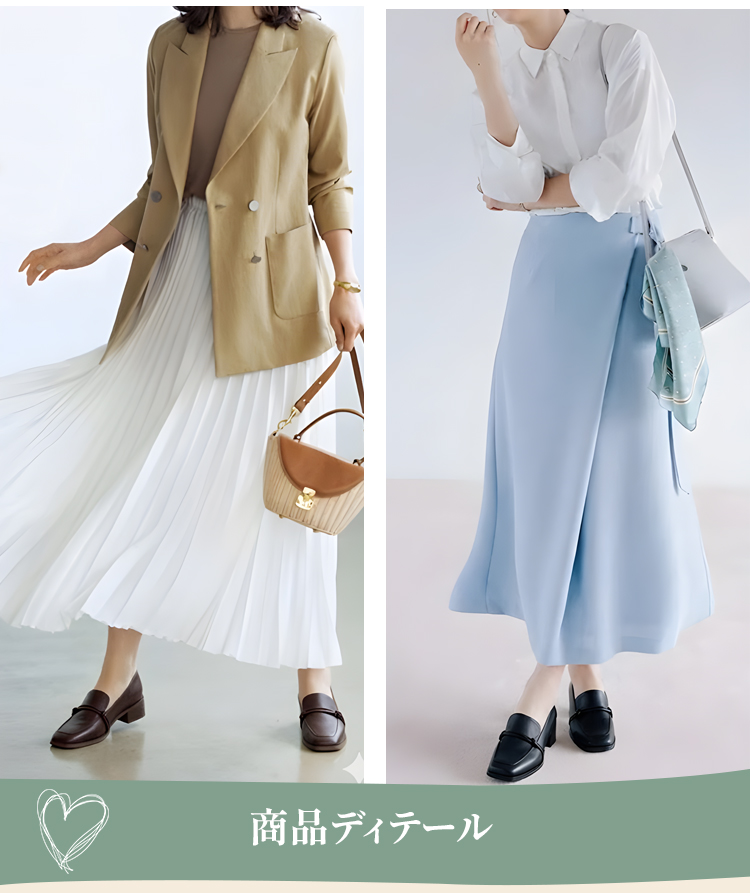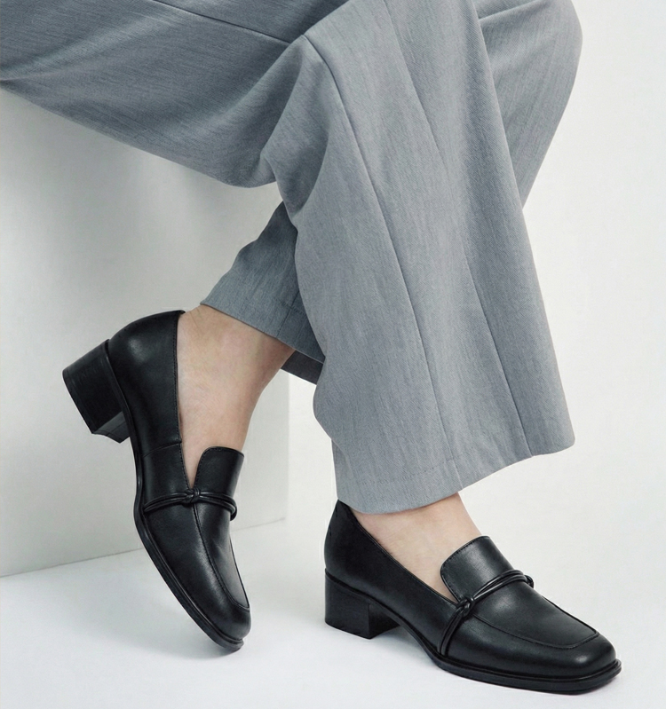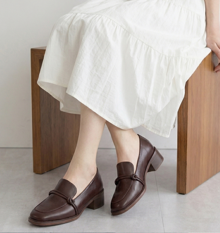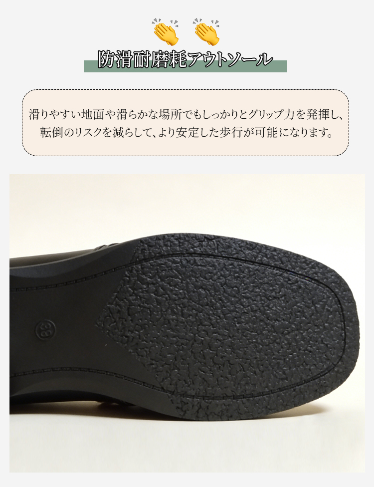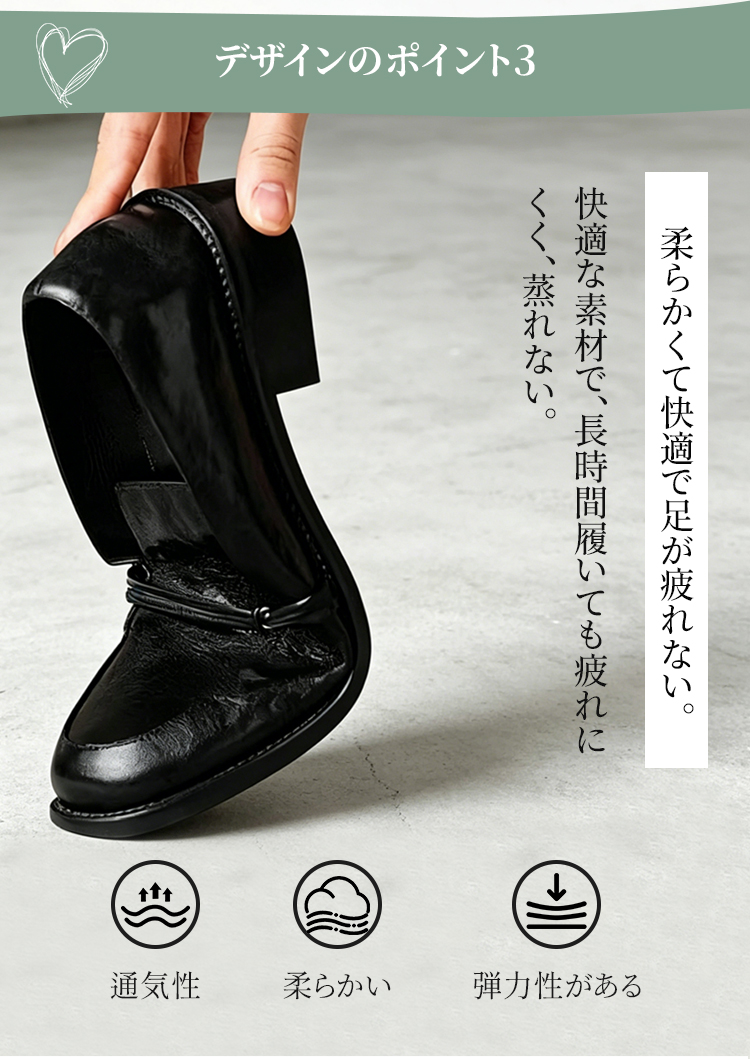 スクエアトゥ ローファー 4E幅広設計 抗菌防臭インソール 太ヒール レディース