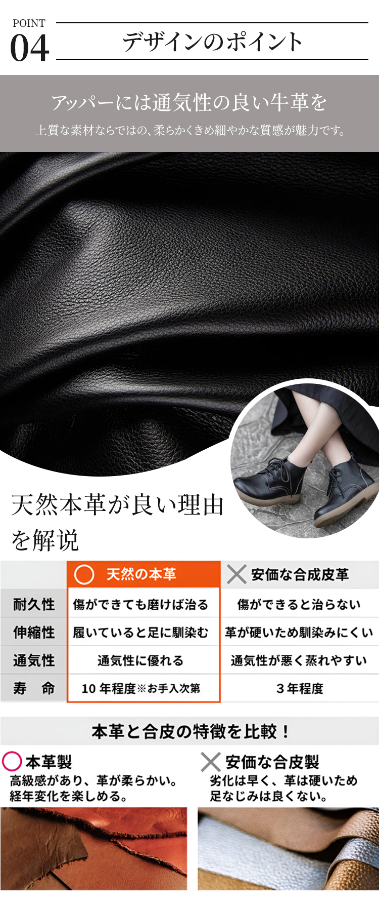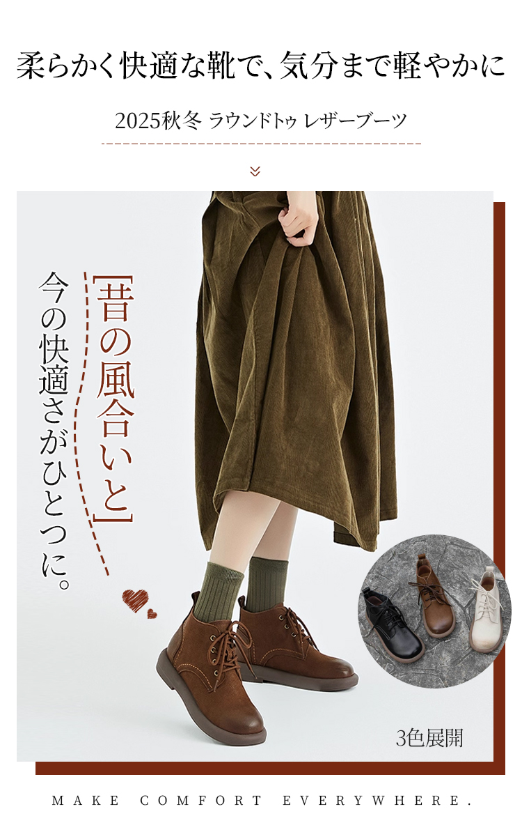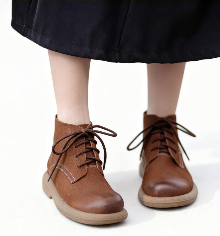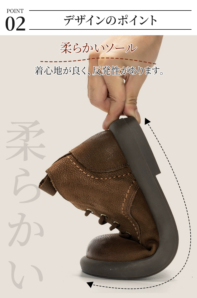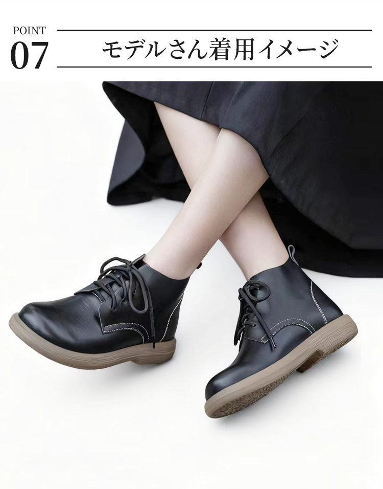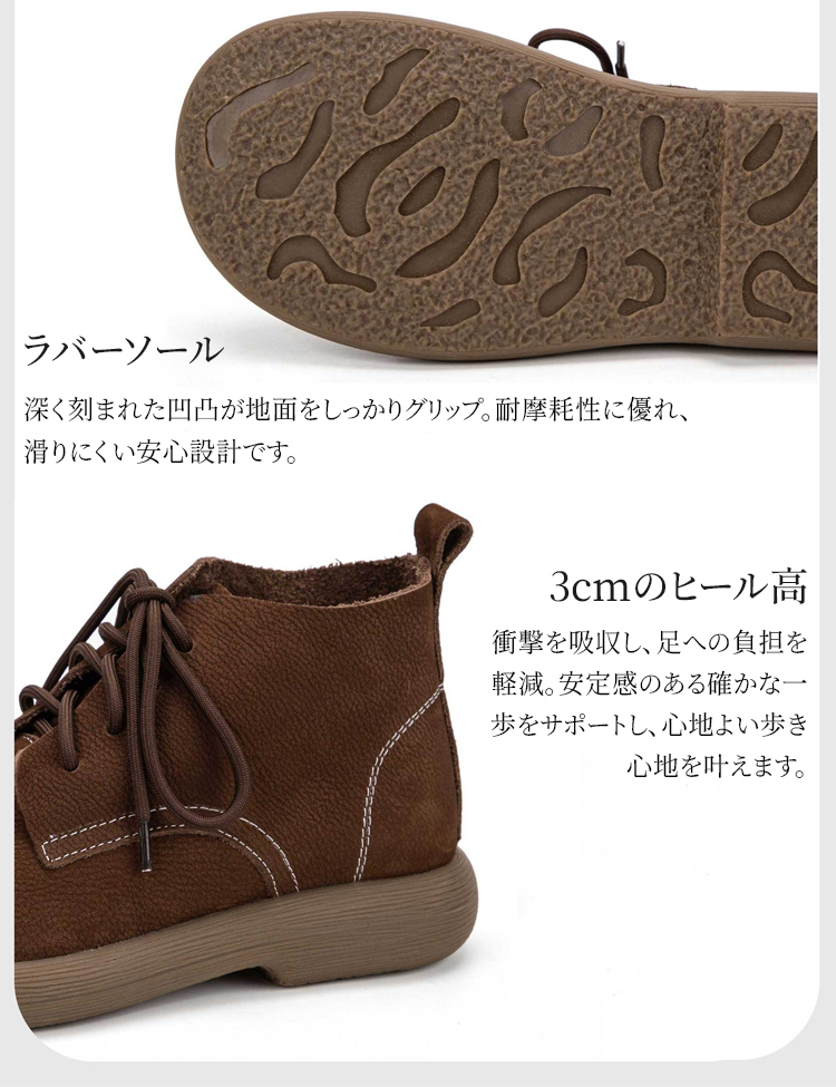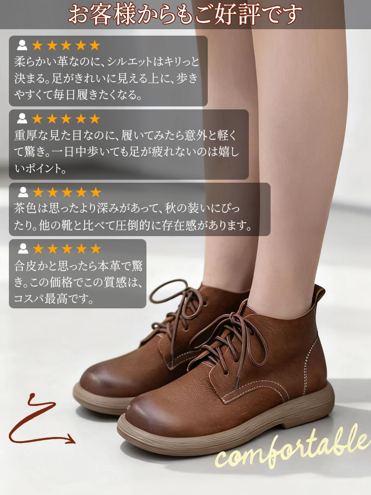 ヴィンテージ風 本革レースアップブーツ 幅広設計 軽量 屈曲ソール 牛革