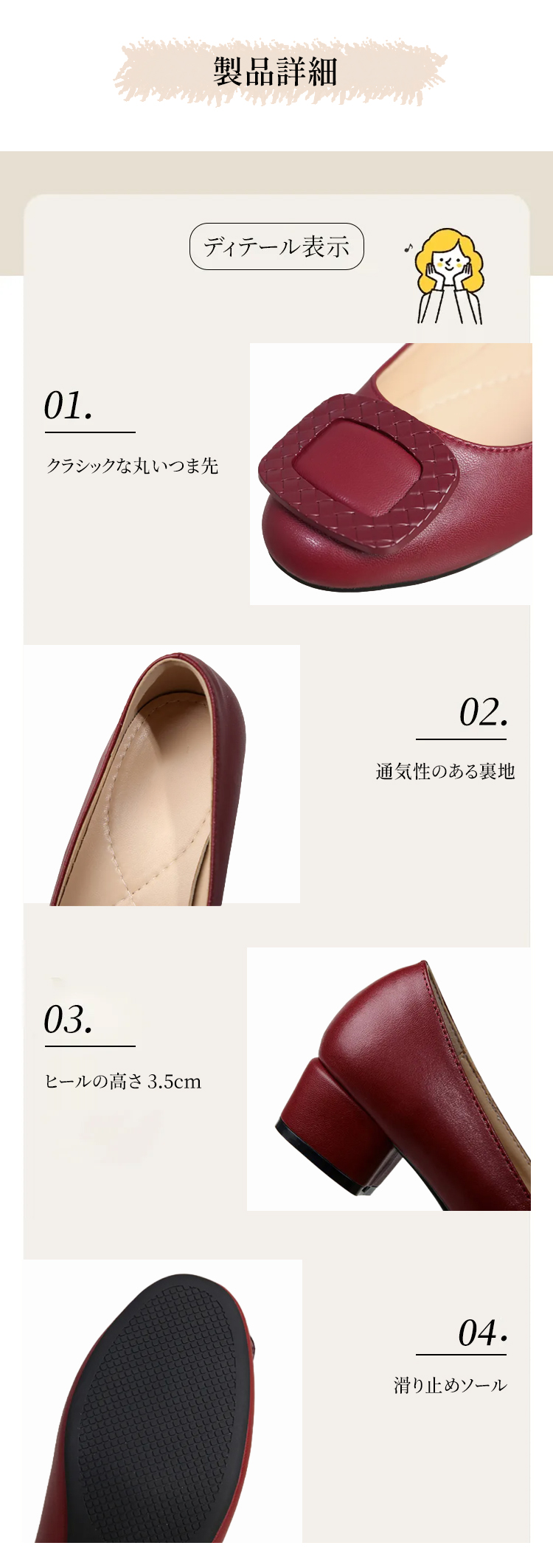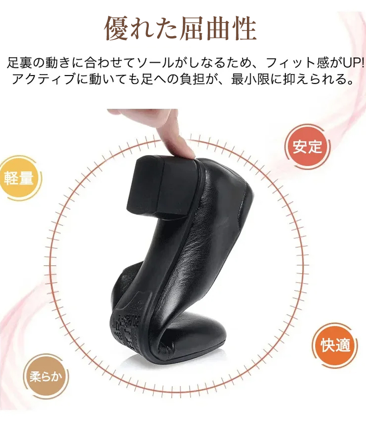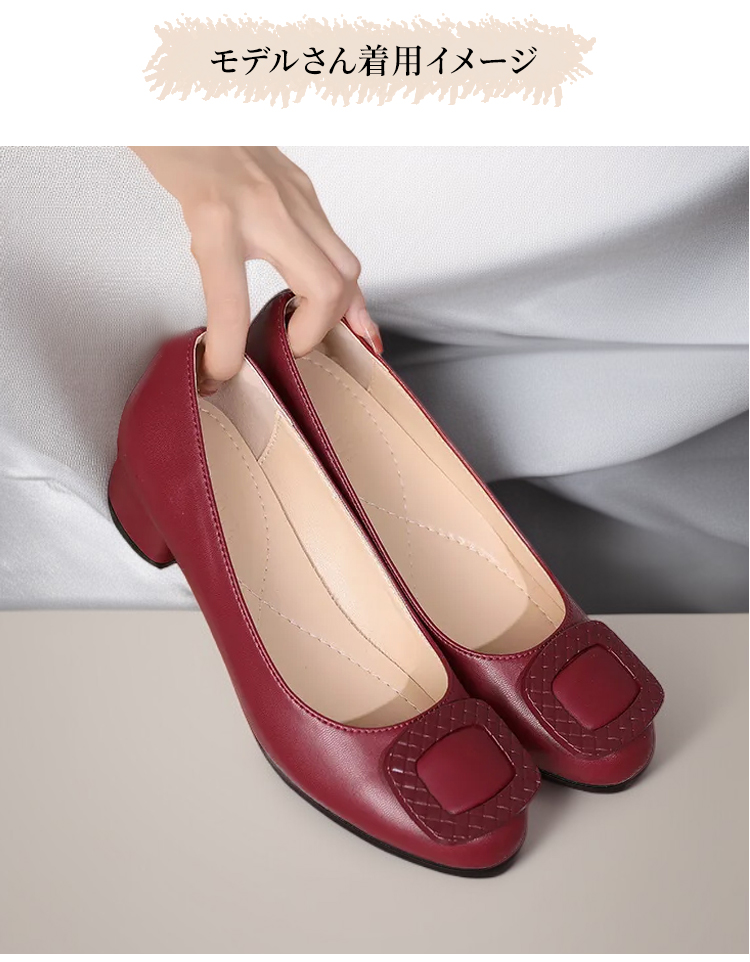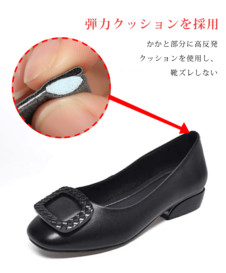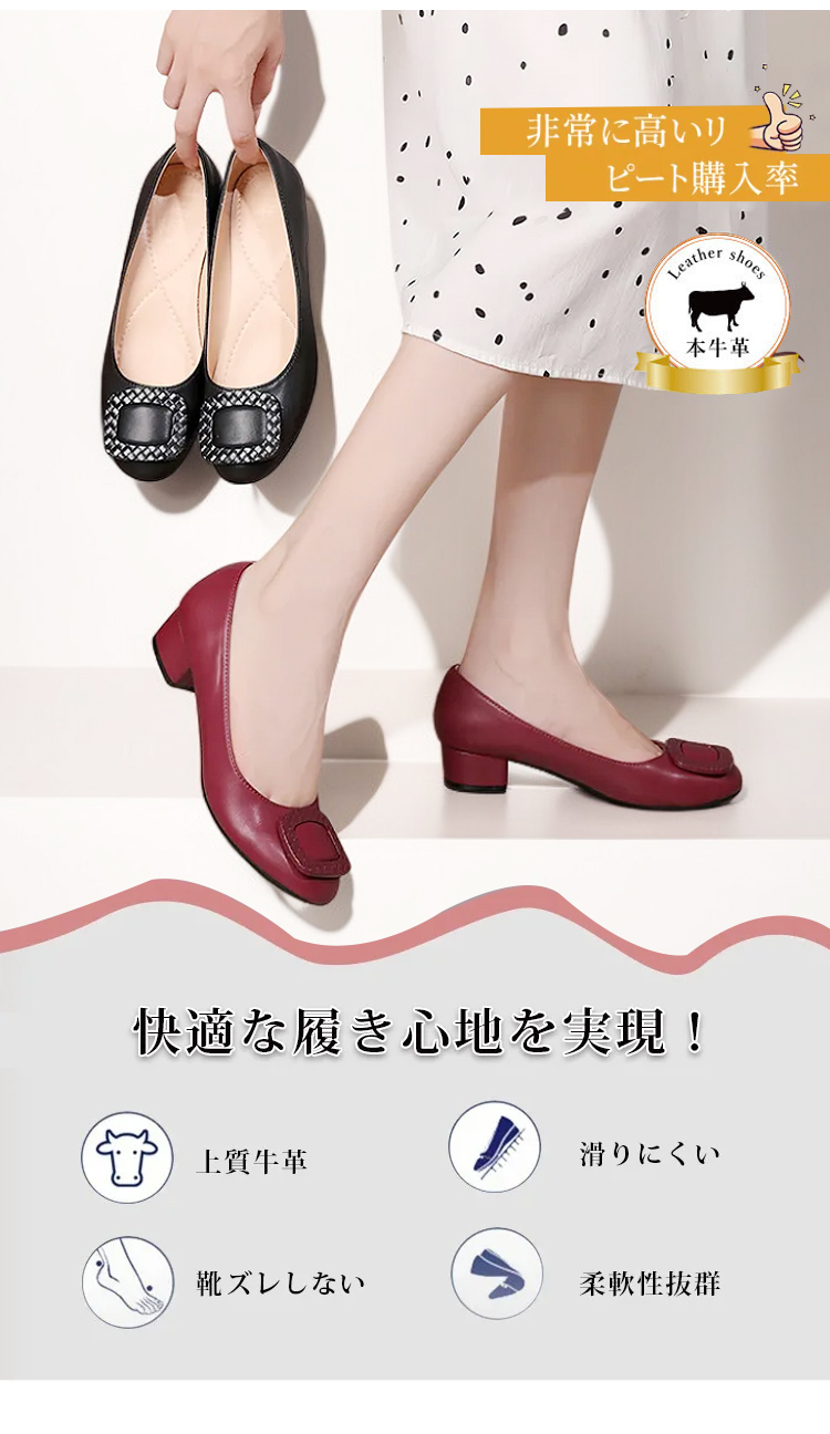 本革 コンフォートパンプス 軽量 ローヒール 3.5cm 痛くない 外反母趾 幅広 甲高 走れる スクエアトゥ レディース