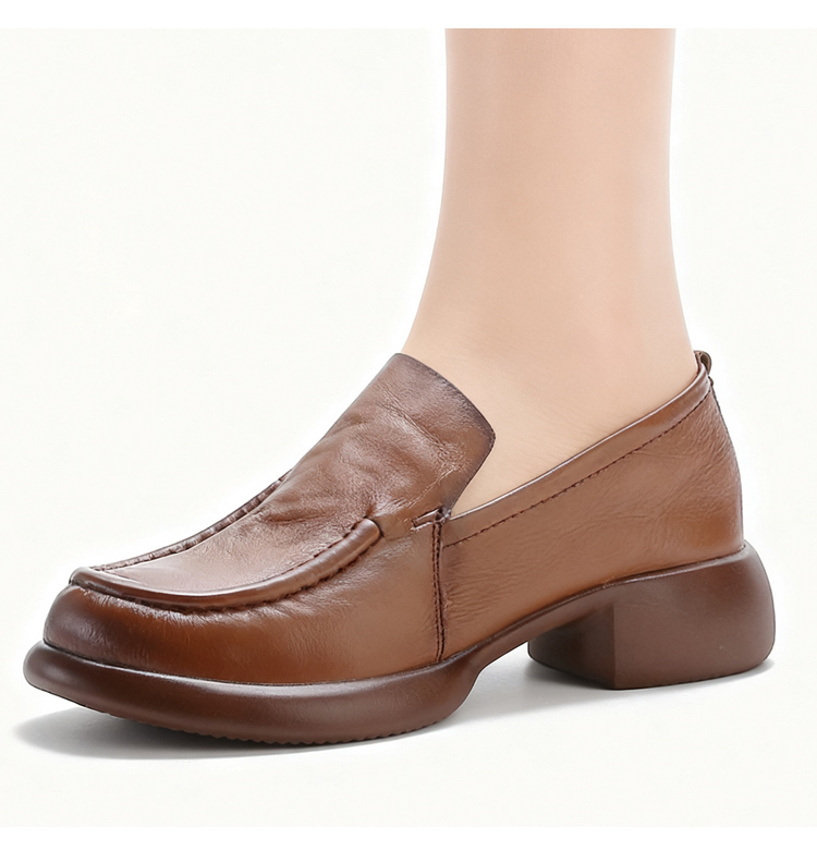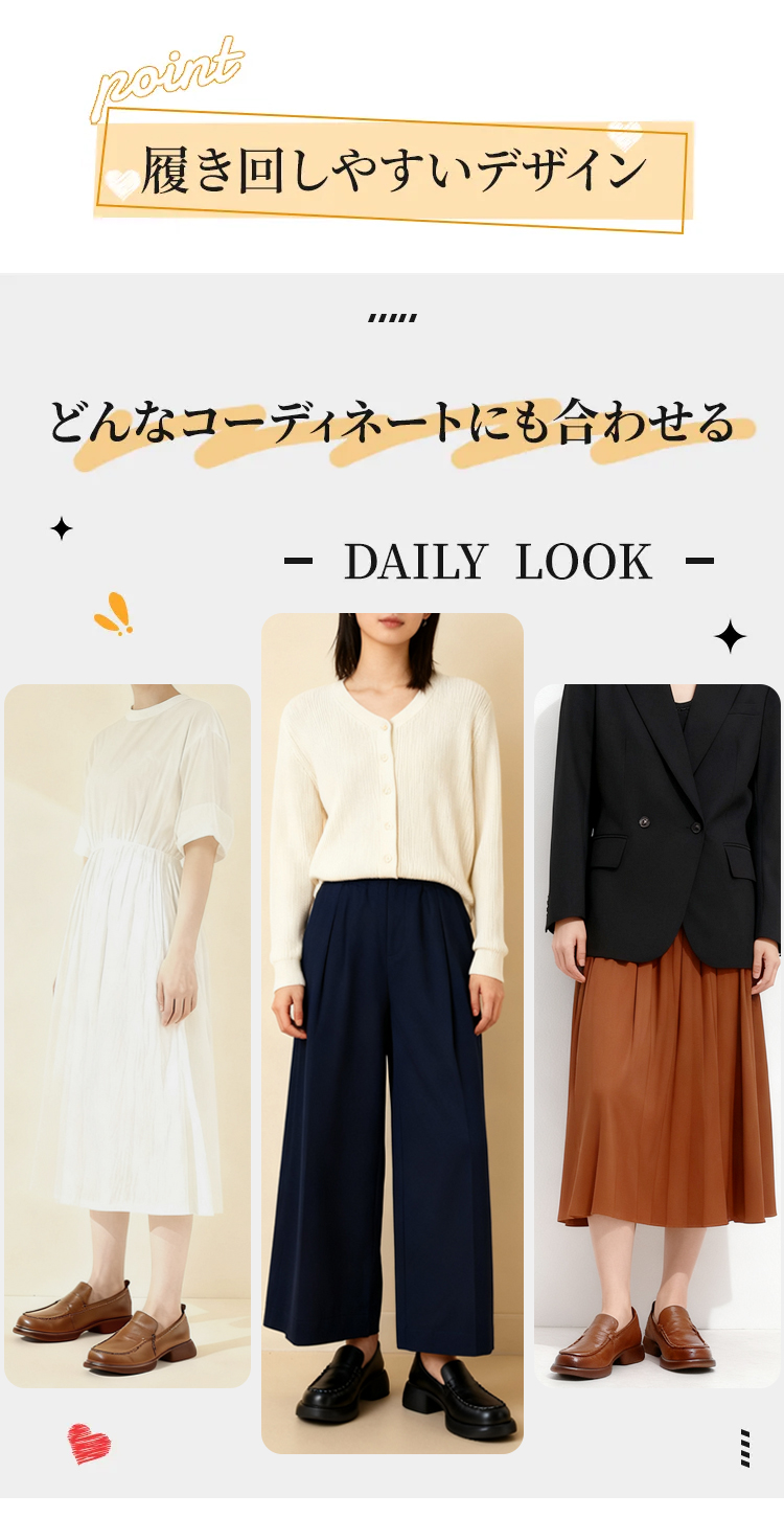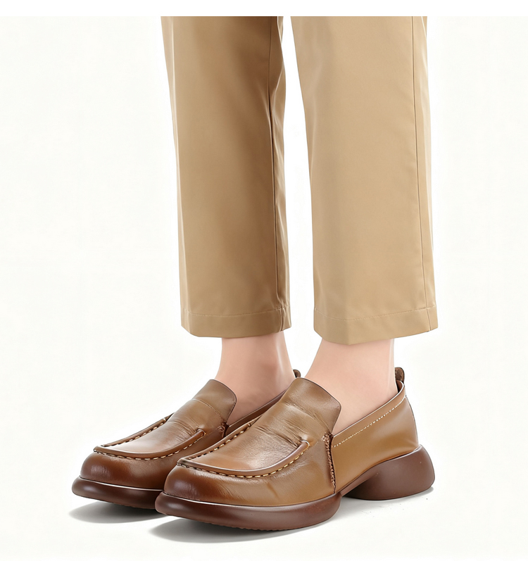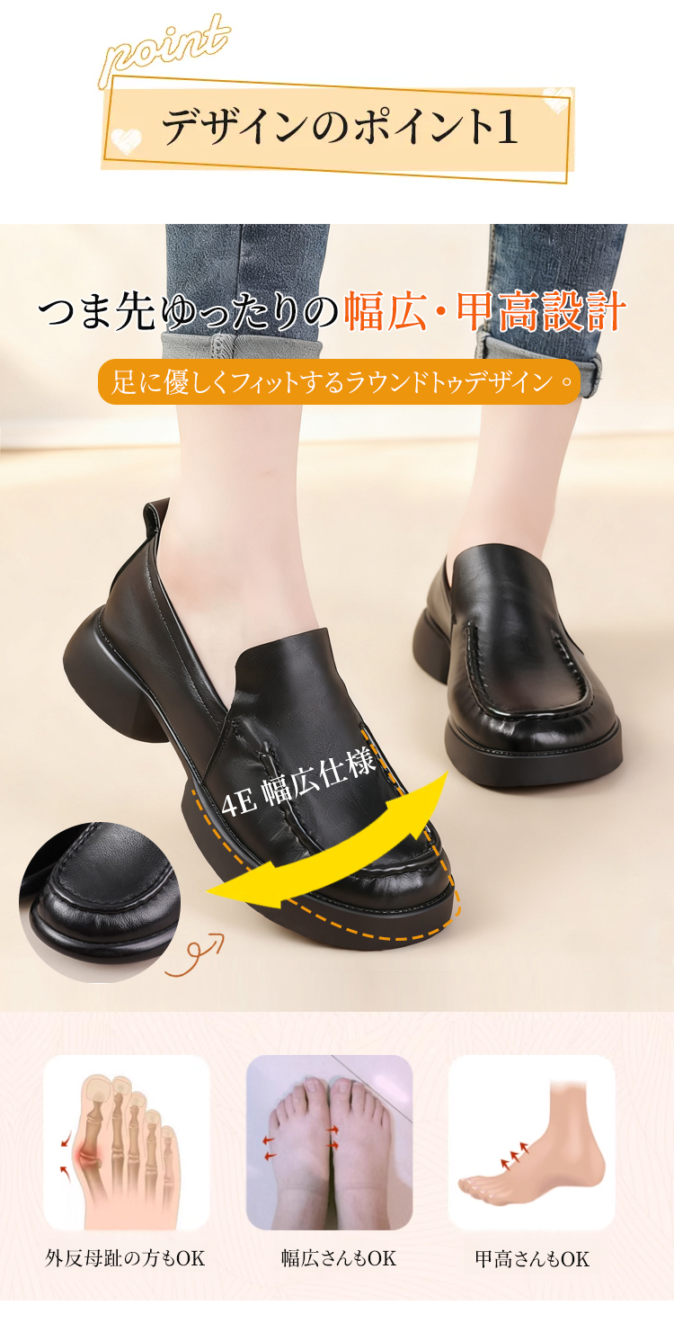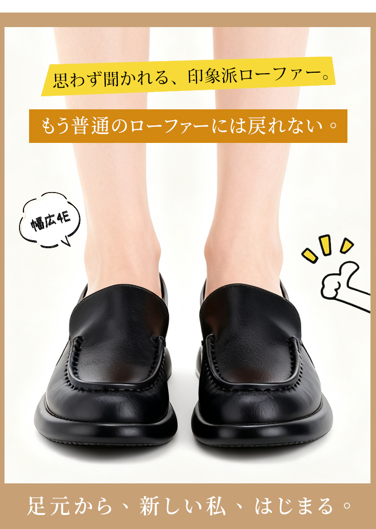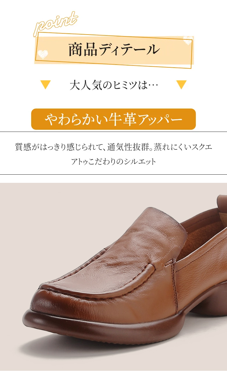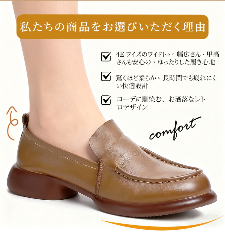 本革 厚底ローファー レディース 3cmヒール 4E幅広設計 屈曲ソール コンフォートシューズ