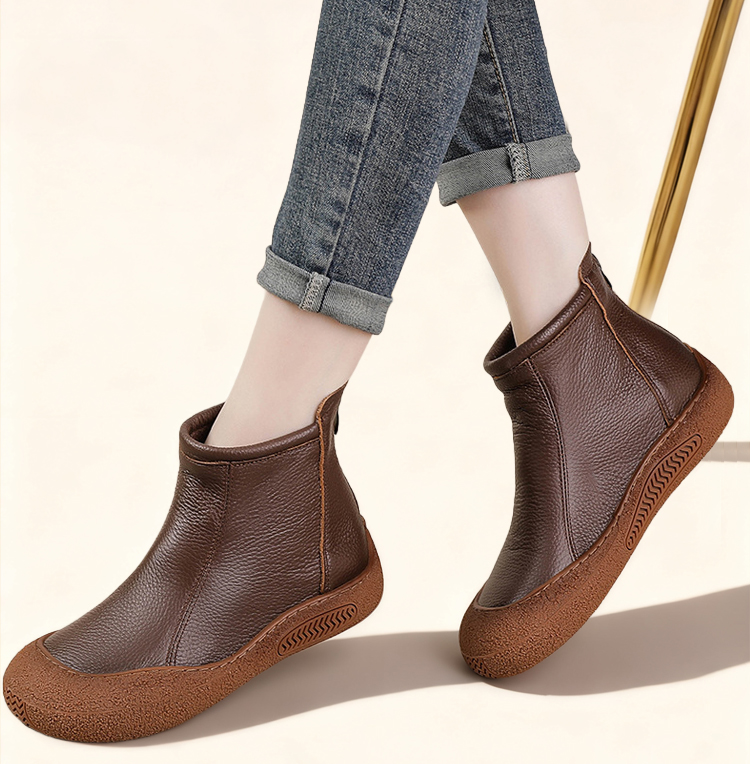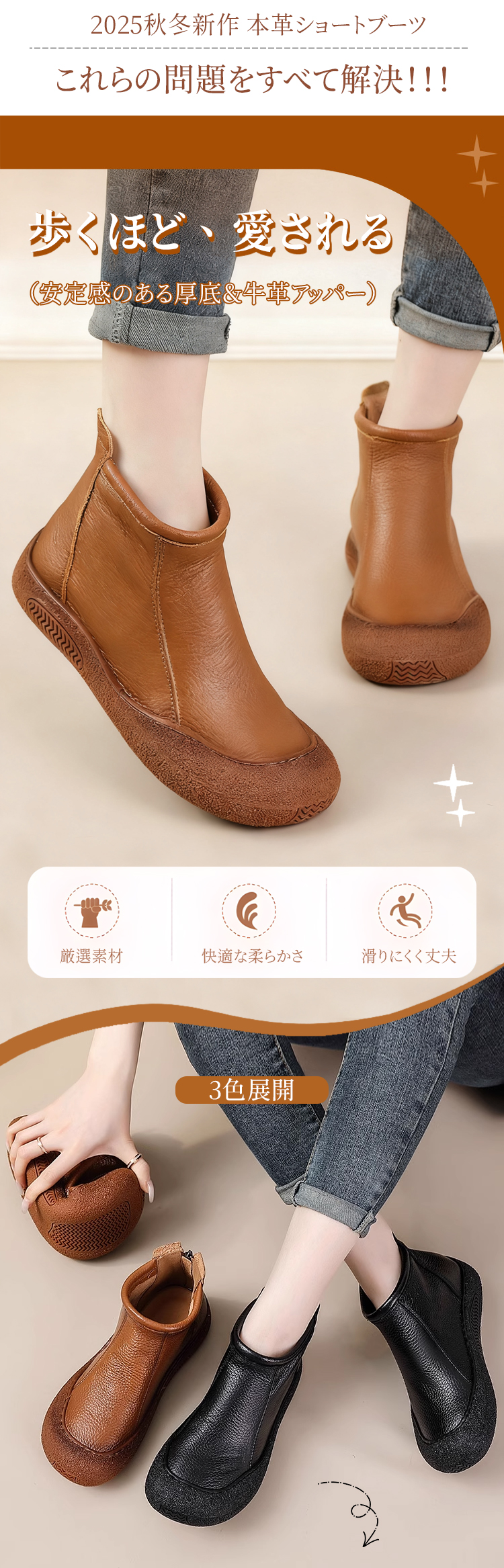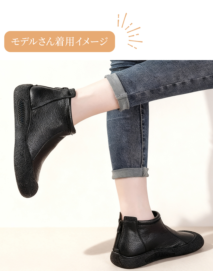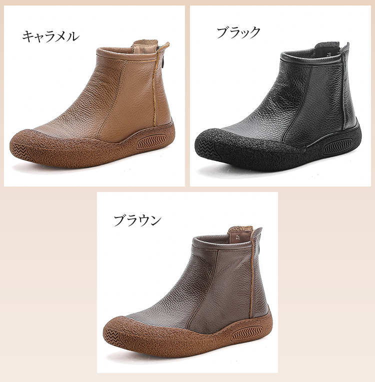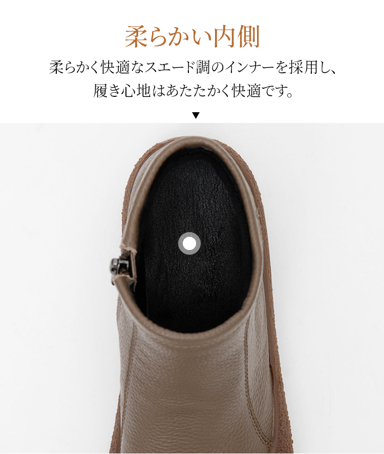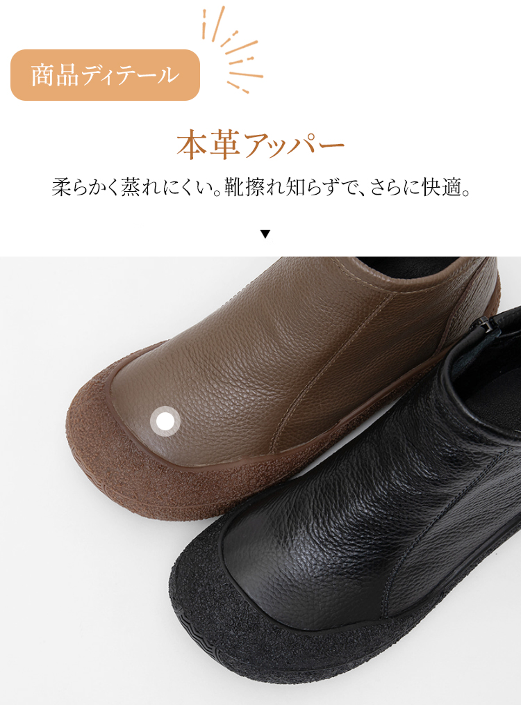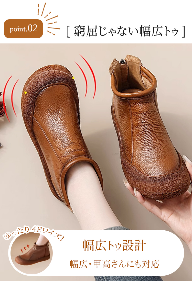 本革 幅広4E コンフォートショートブーツ 外反母趾対応 3cmヒール 防滑