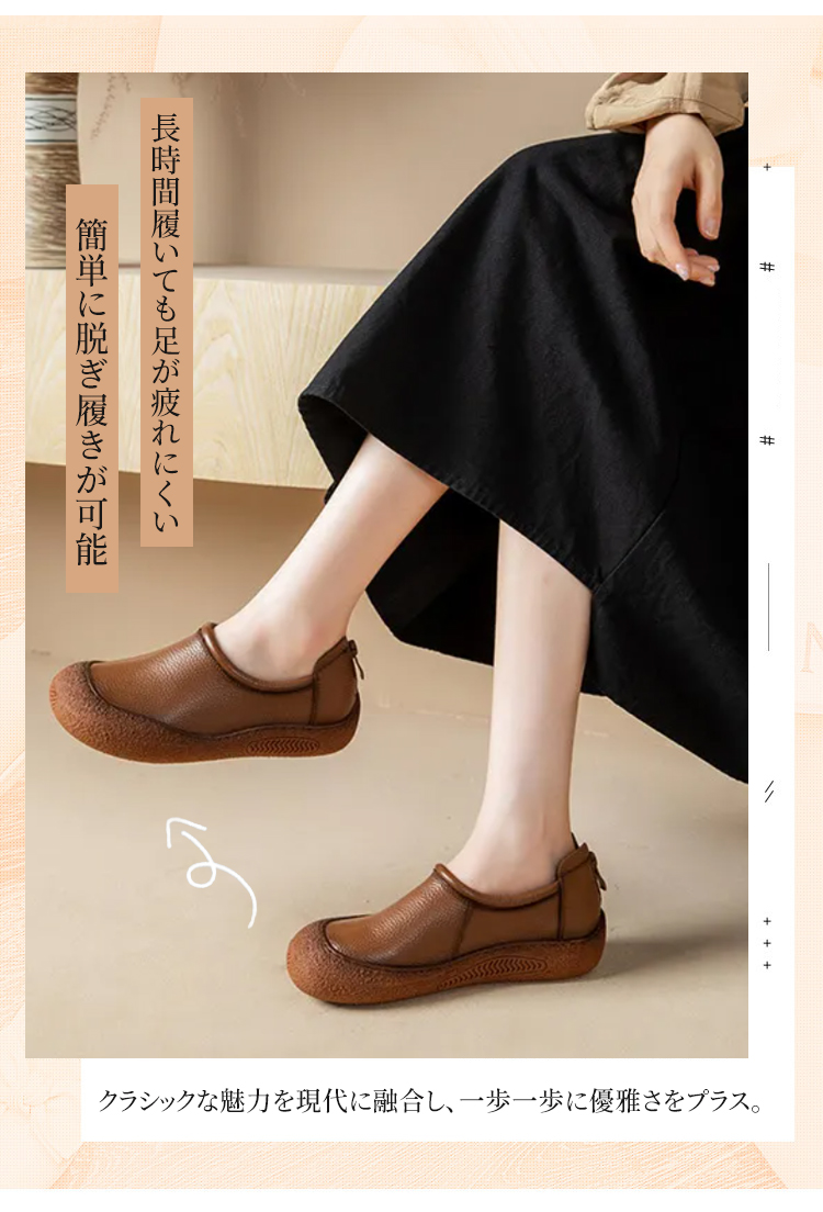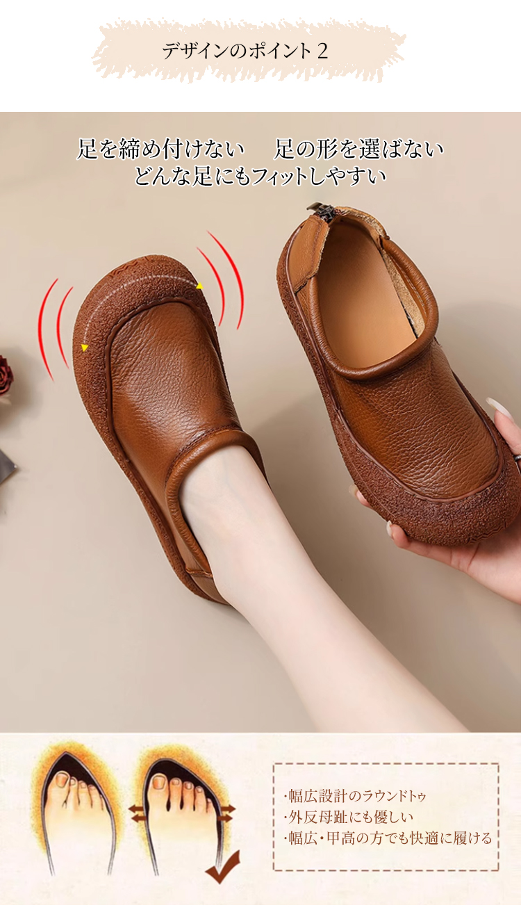 本革 幅広4E コンフォートシューズ 外反母趾対応 レトロ スリッポン レディース