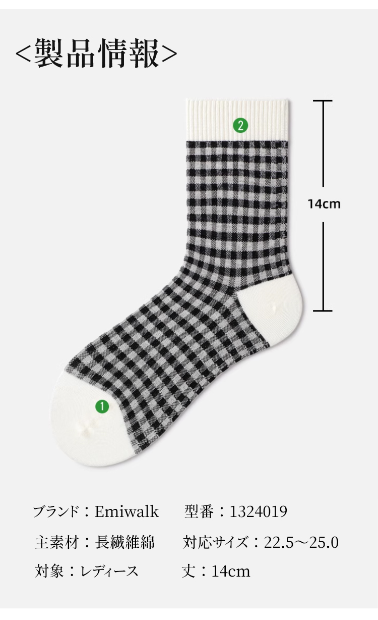 ギンガムチェック柄 高品質コットンソックス レディース 4足セット 着用イメージ スポーティーでアクティブなデイリースタイル ギンガムチェック柄ソックスとサンダルの組み合わせ AAA級の吸汗効果 蒸れにくく臭わない高品質コットンの生地ディテール 厳選された産地の長繊維綿 高品質コットンのイメージ画像 高ストレッチ素材で締め付けゼロのリブ口 快適な履き心地の検証 フィット感を高めるY字ヒール構造 かかとのズレを防止するソックス設計 つま先補強加工で長く履ける 耐久性を重視した高品質ソックス ギンガムチェックソックスのサイズ詳細 14cm丈の標準的なミドルカット仕様 ストライプ&チェック柄ソックス|ナチュラルでレトロ、どんなコーデにも合わせやすい(4足セット) - 1011255971 - emiwalk ストライプ&チェック柄ソックス|ナチュラルでレトロ、どんなコーデにも合わせやすい(4足セット) - 1011255971 - emiwalk