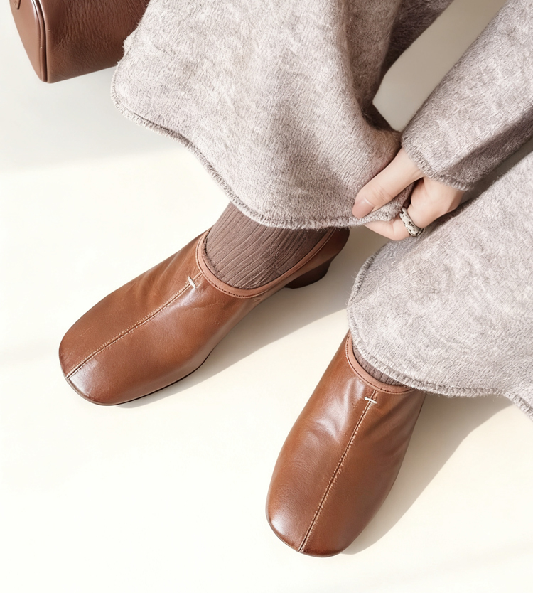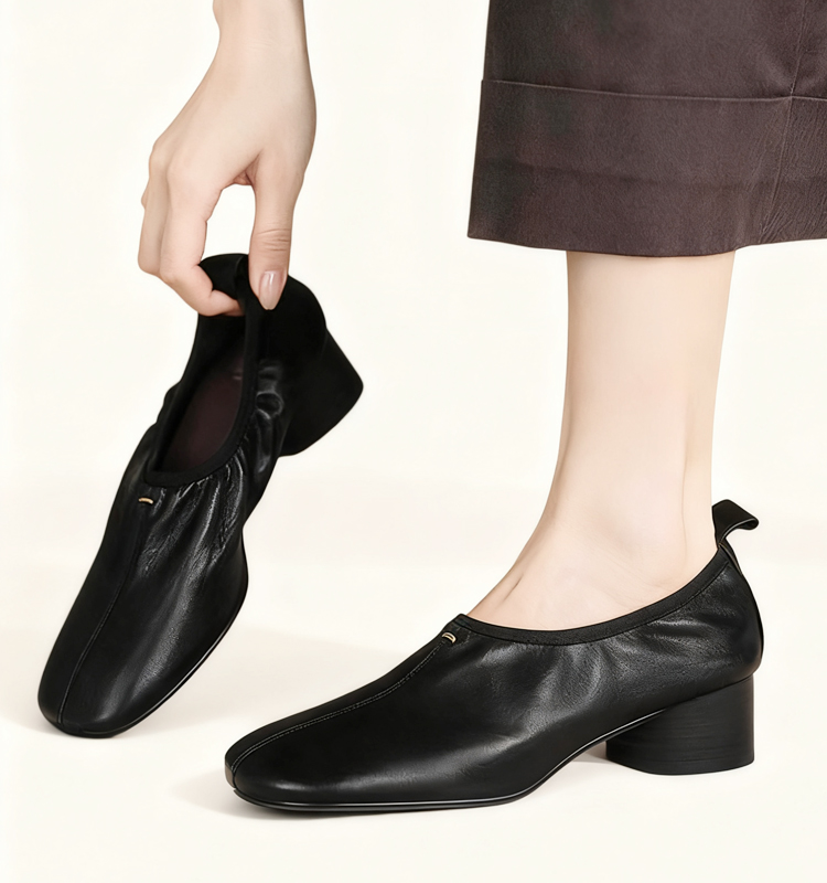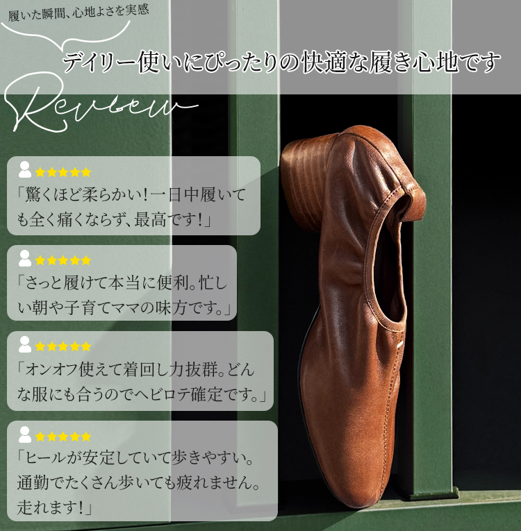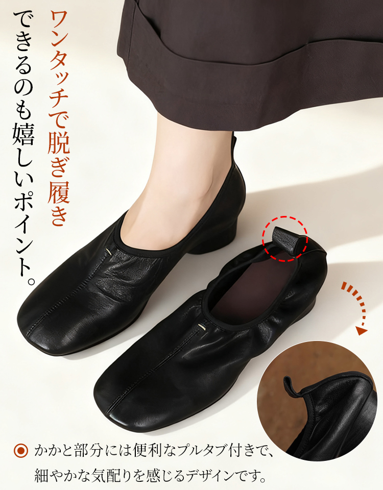 熟練職人仕立て ラムスキン チャンキーヒール コンフォート パンプス