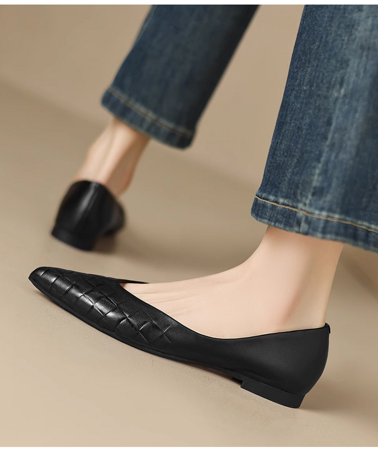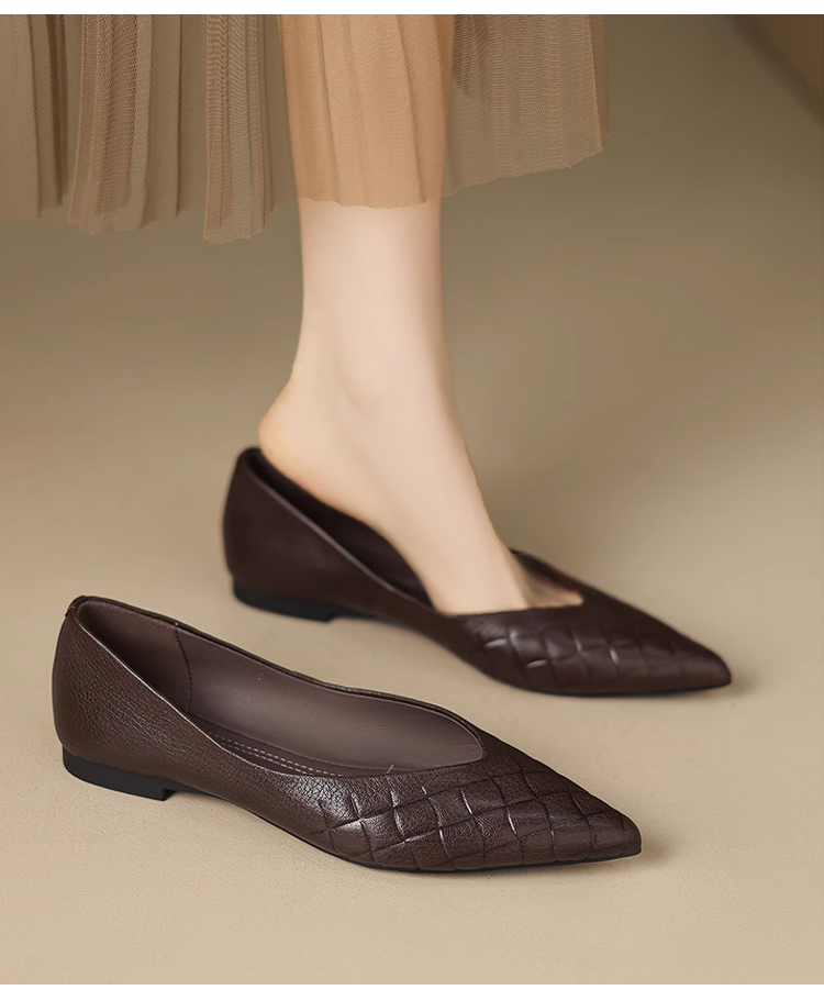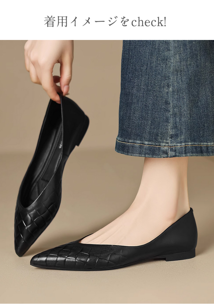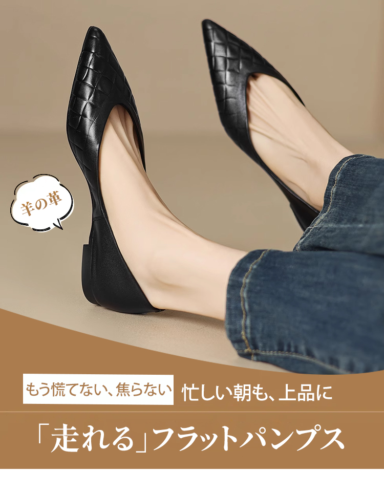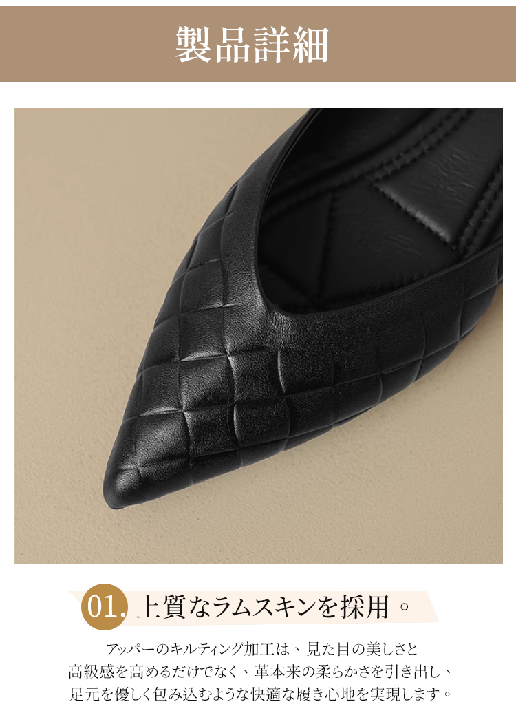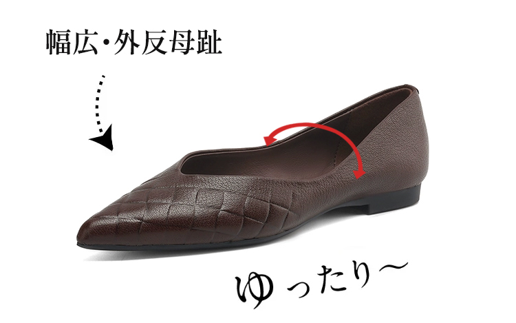 ラムスキン キルティング フラットパンプス 4E 幅広 外反母趾対応 痛くない ぺたんこ ポインテッドトゥ 羊革 レディース