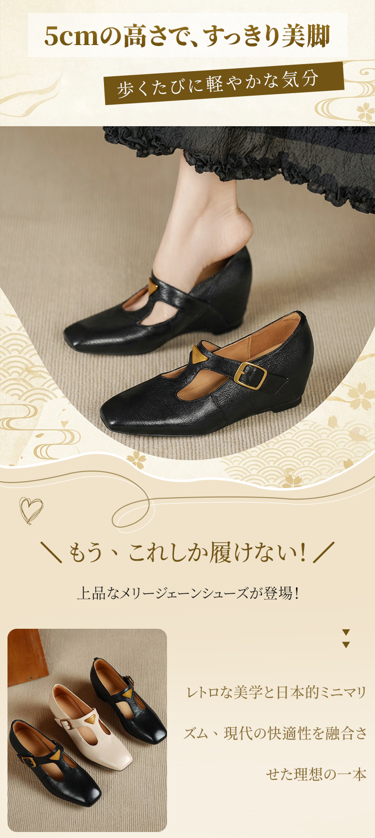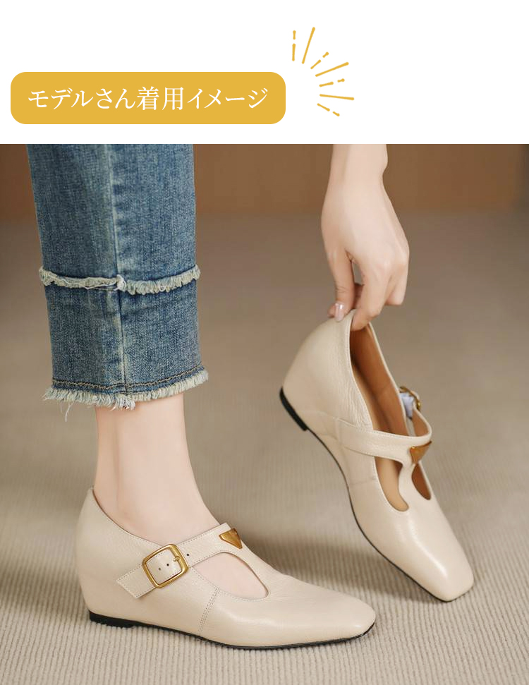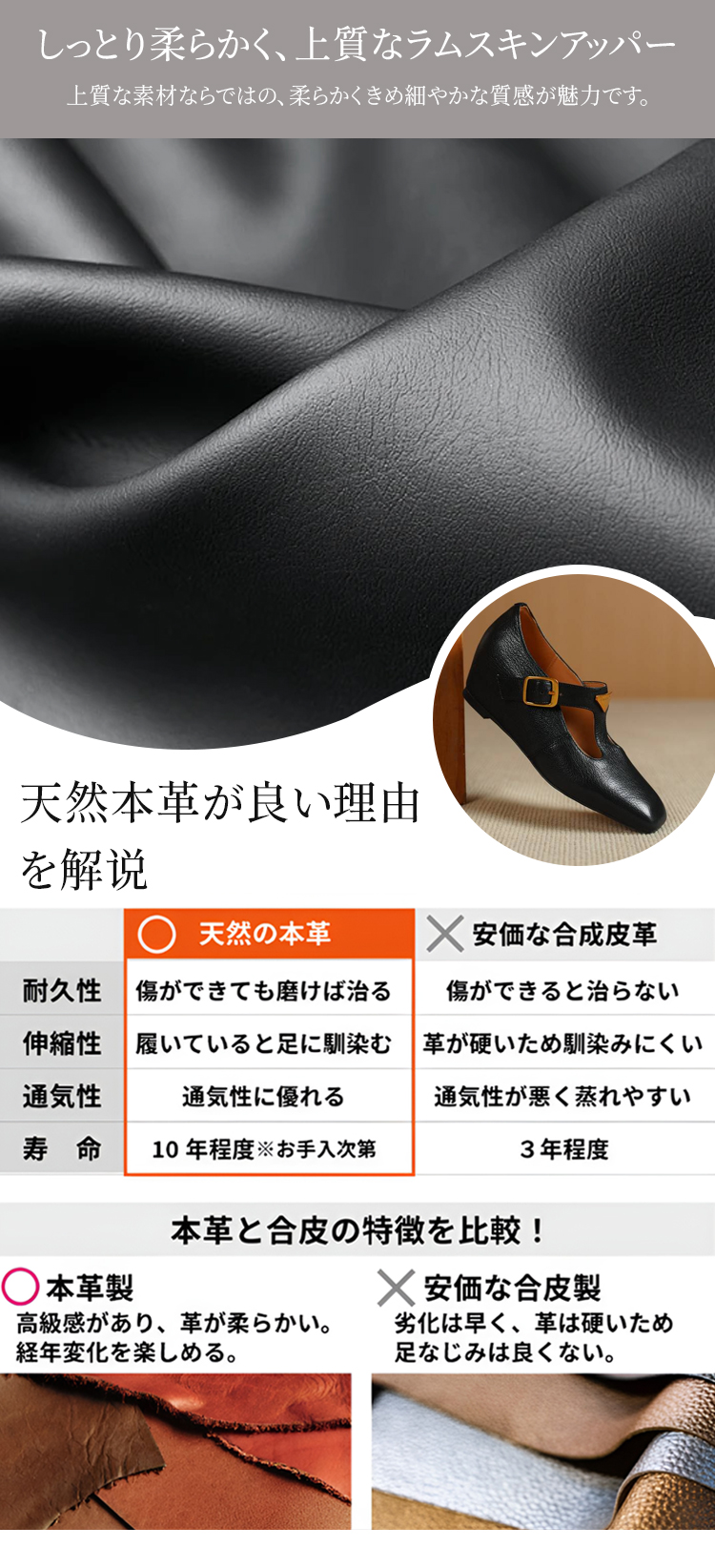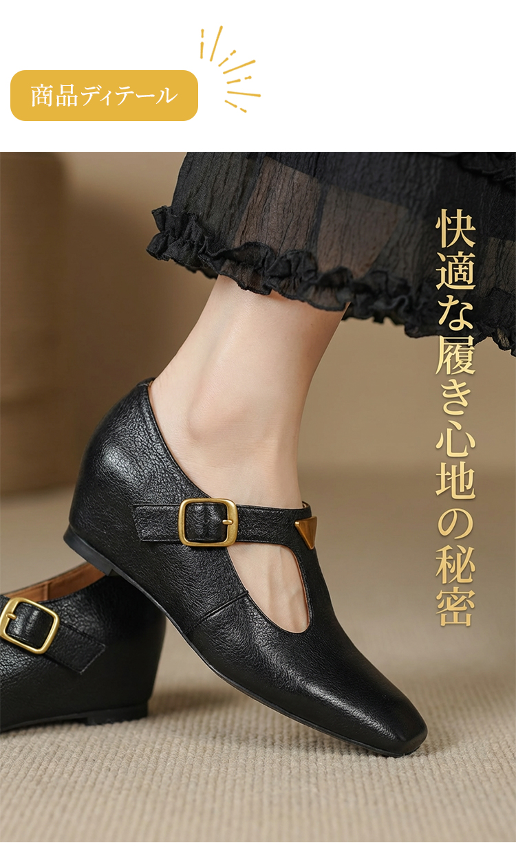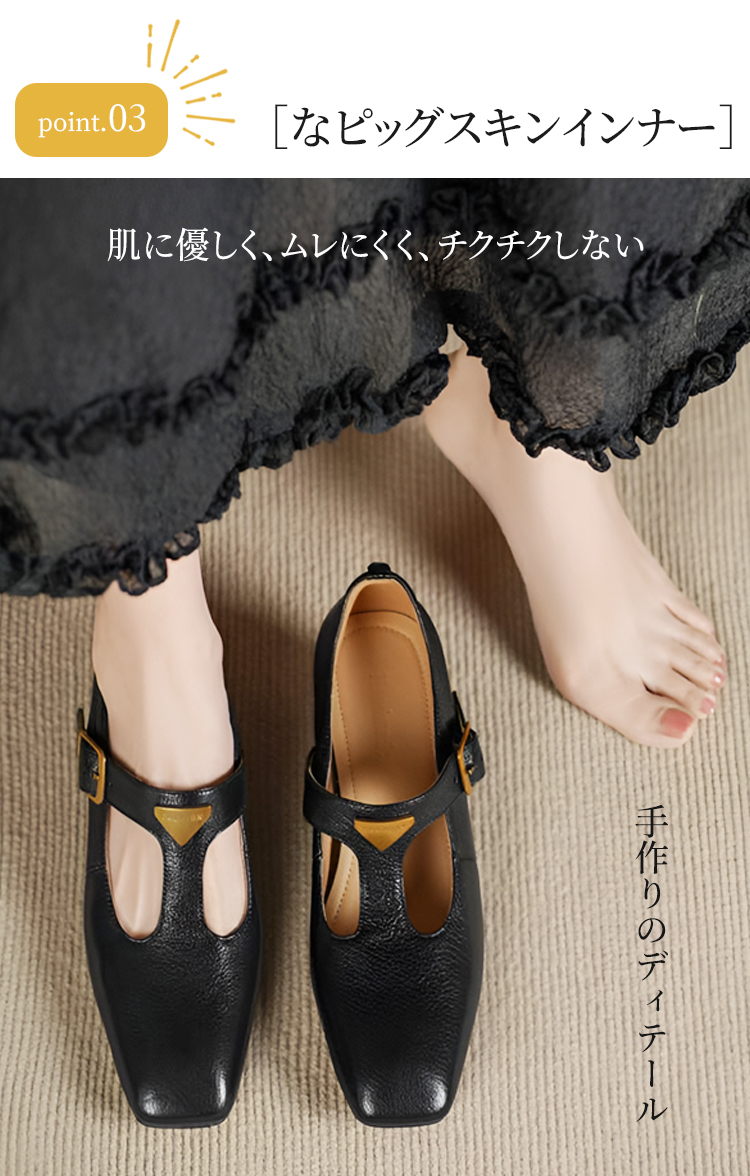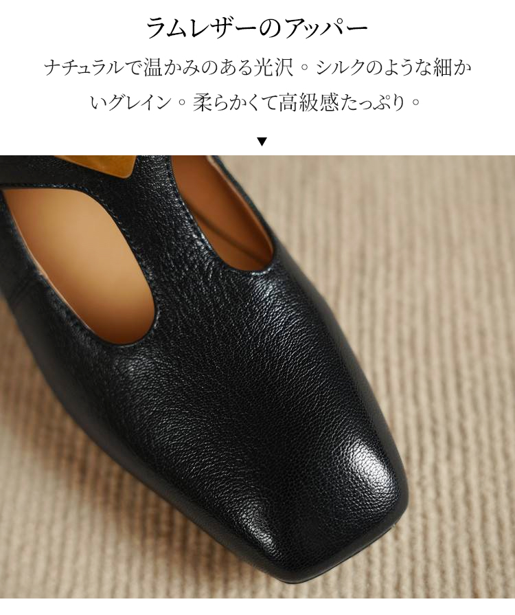 本革 ラムスキン Tストラップ パンプス スクエアトゥ 5cmヒール 痛くない