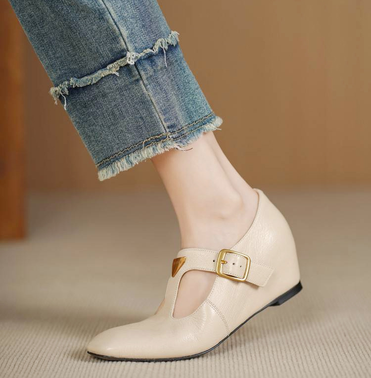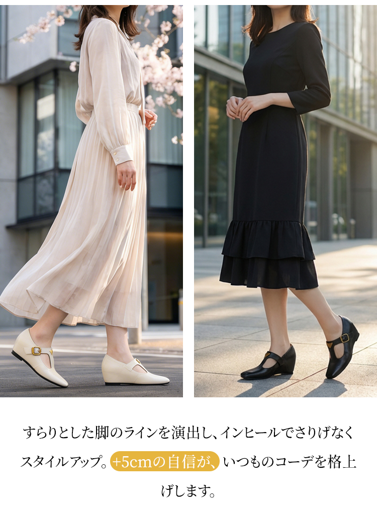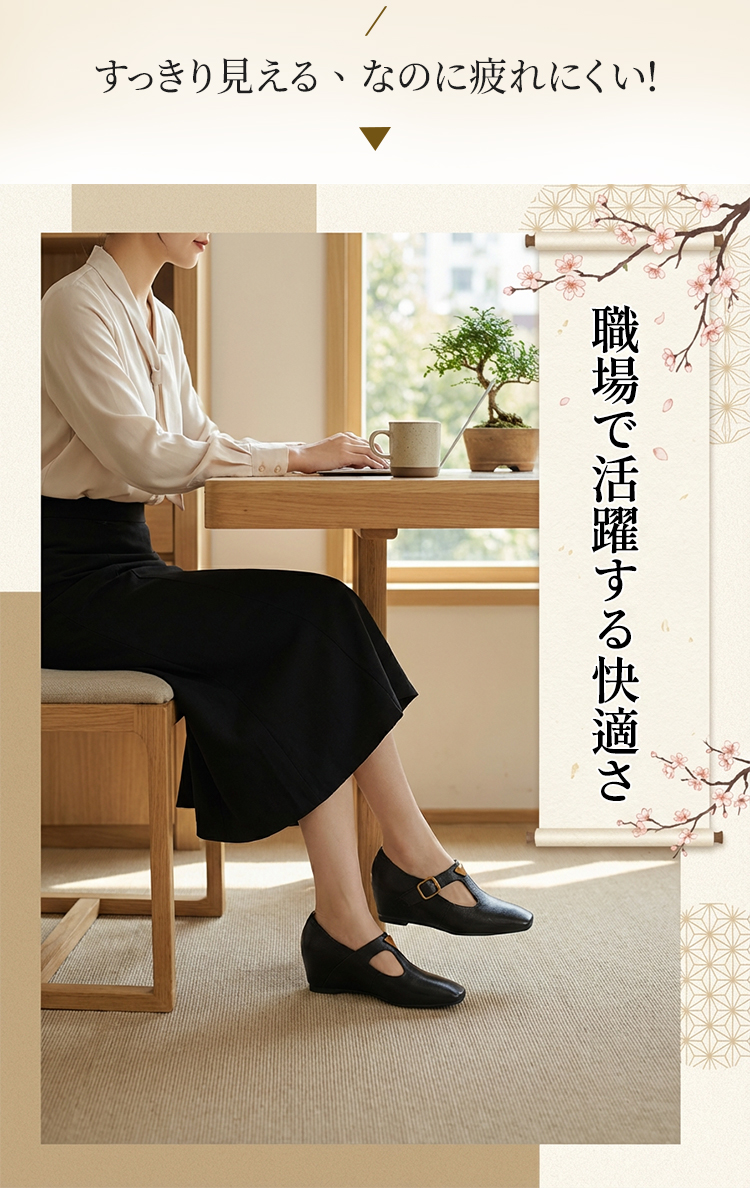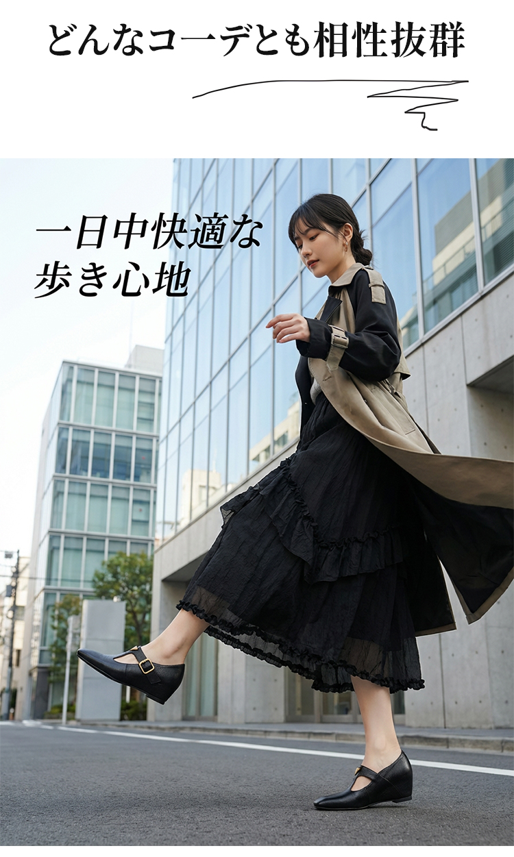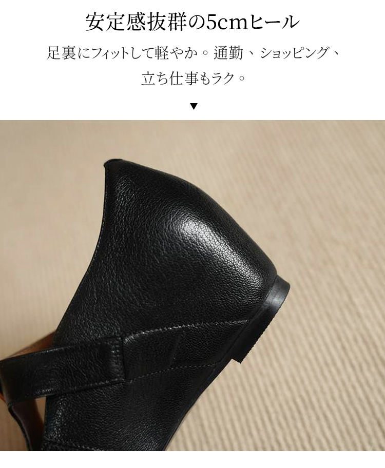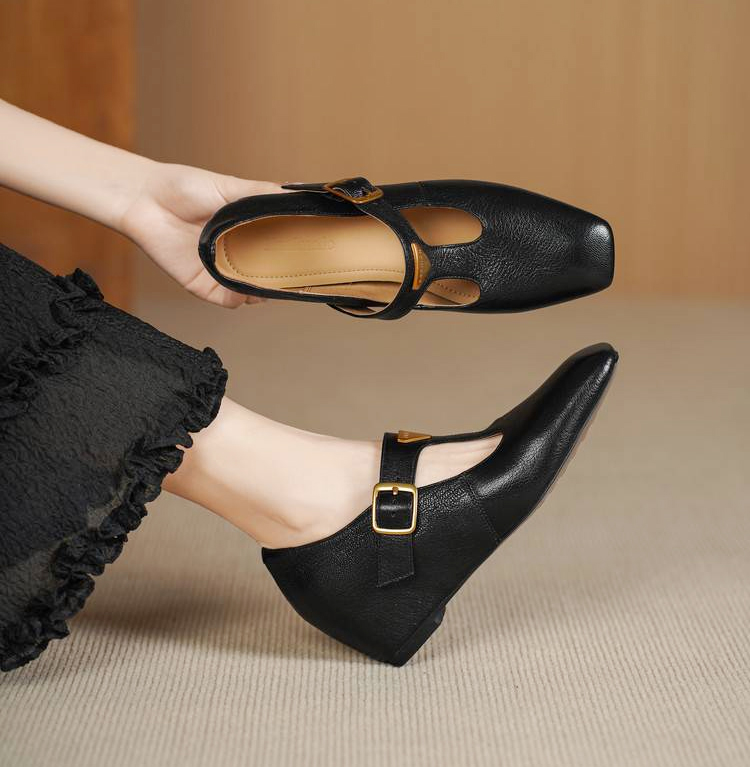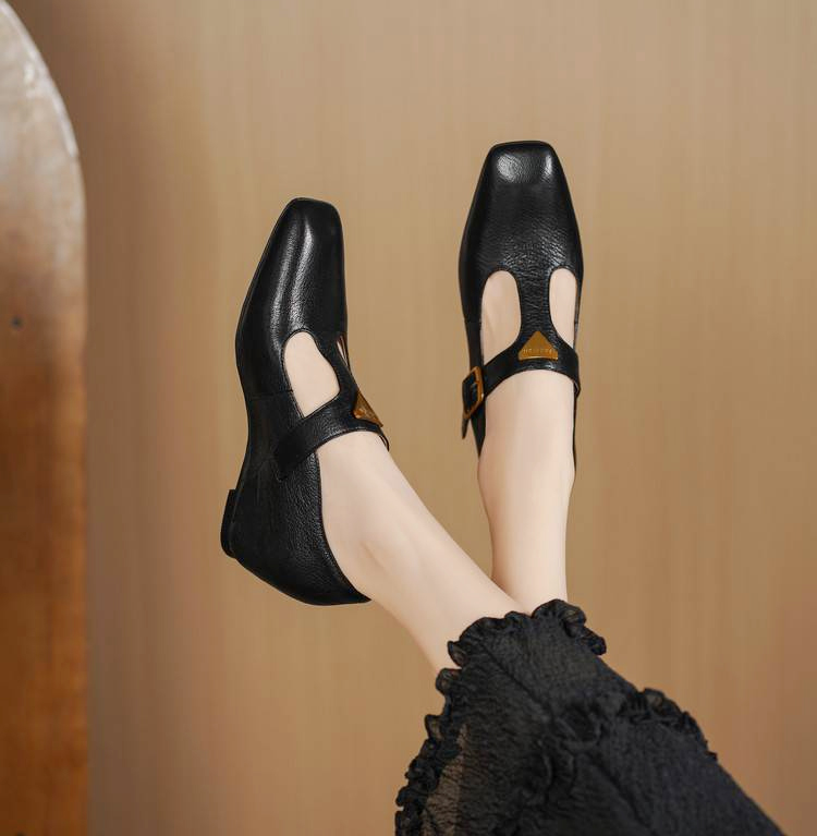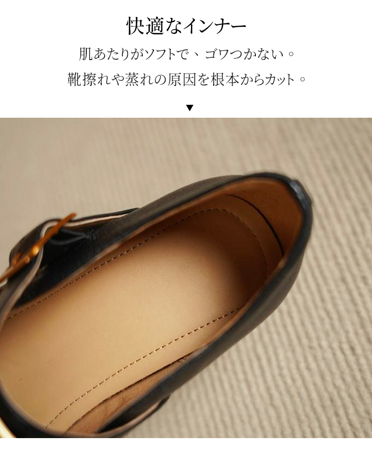 本革 ラムスキン Tストラップ パンプス スクエアトゥ 5cmヒール 痛くない