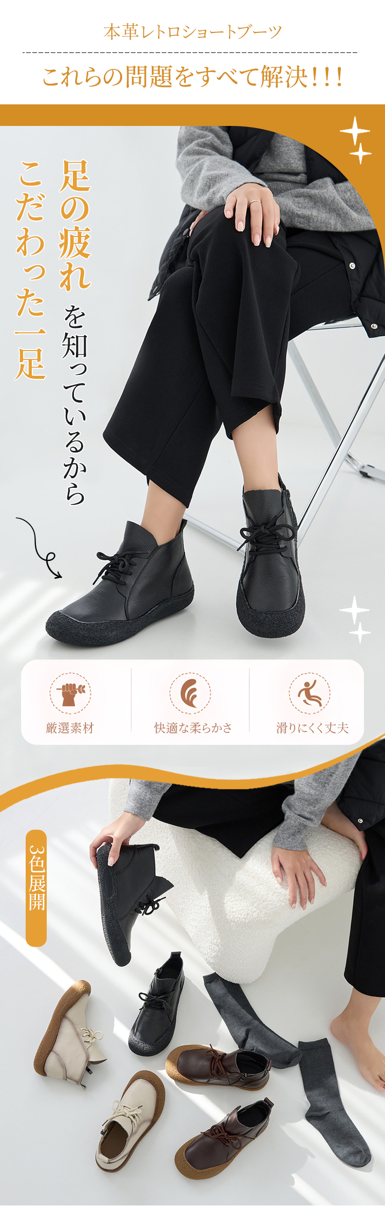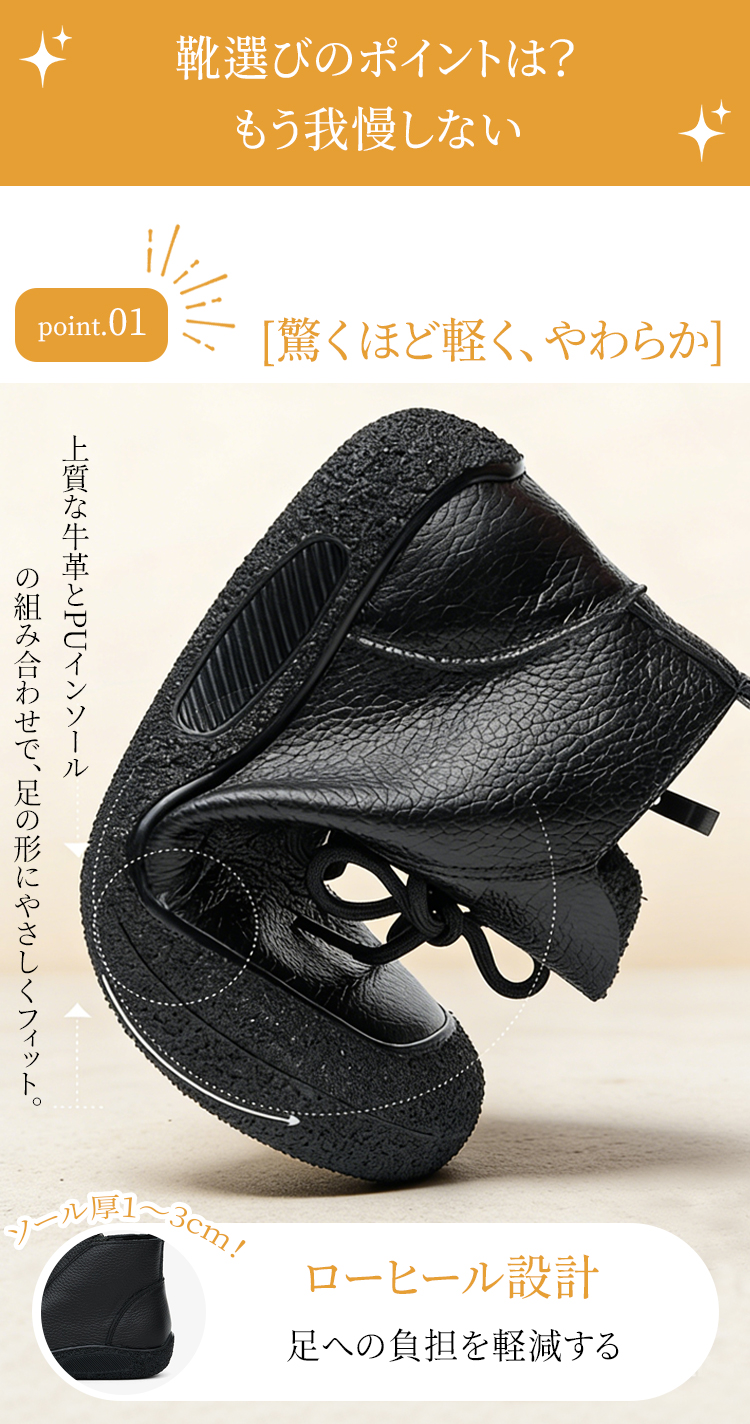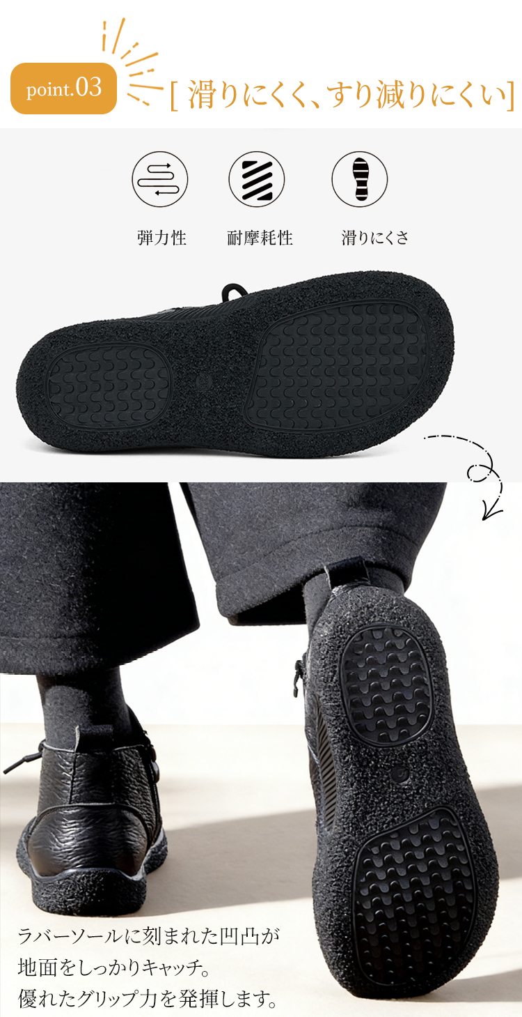 プレミアム牛革 外反母趾サポート コンフォート ショートブーツ サイドジップ 超軽量設計