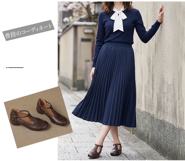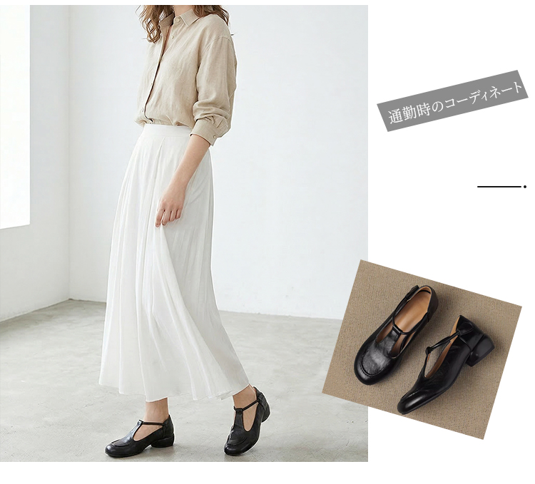 本革 Tストラップパンプス 痛くない 外反母趾対応 2.5cmローヒール コンフォートシューズ