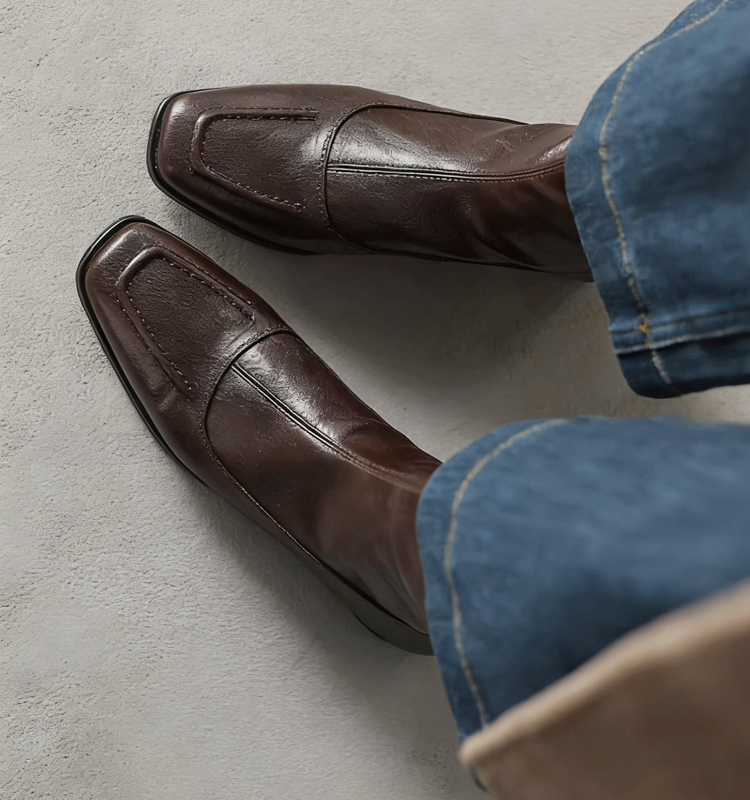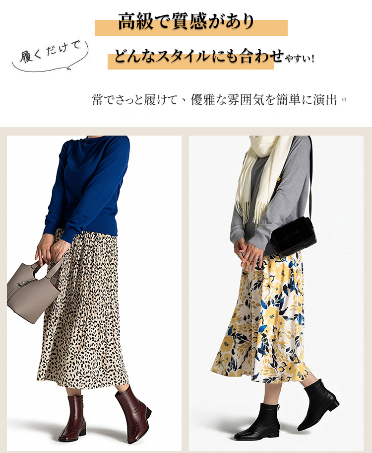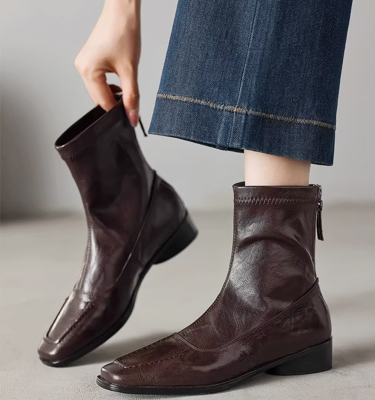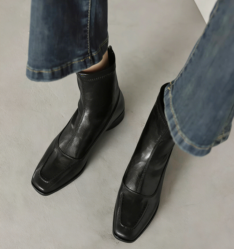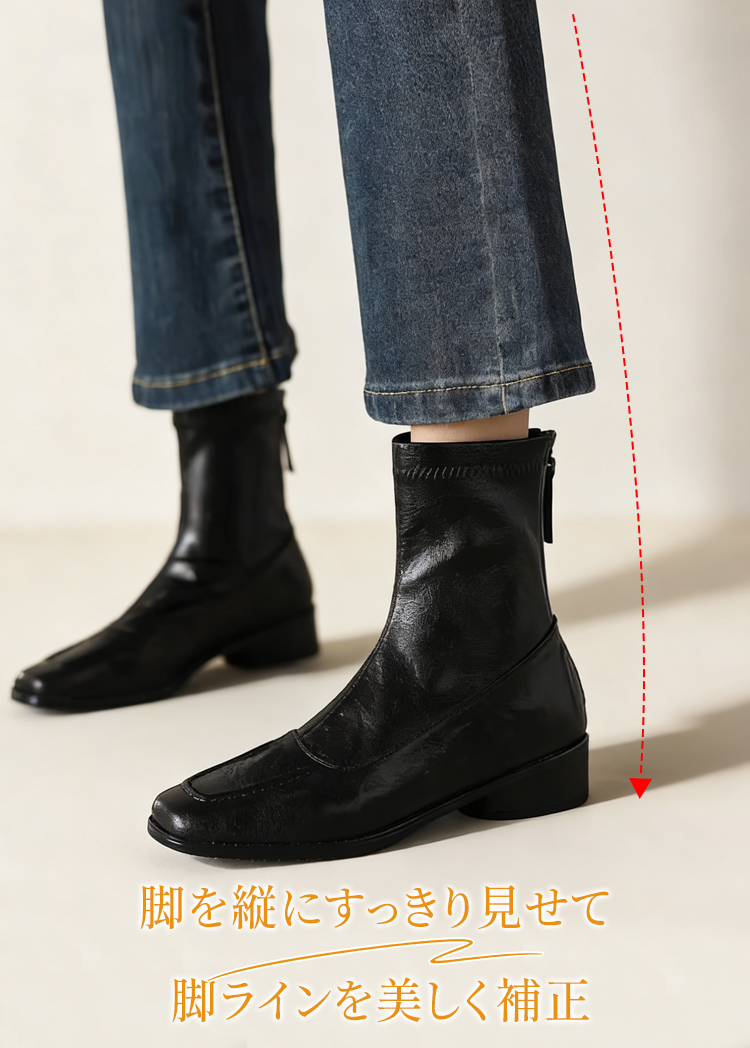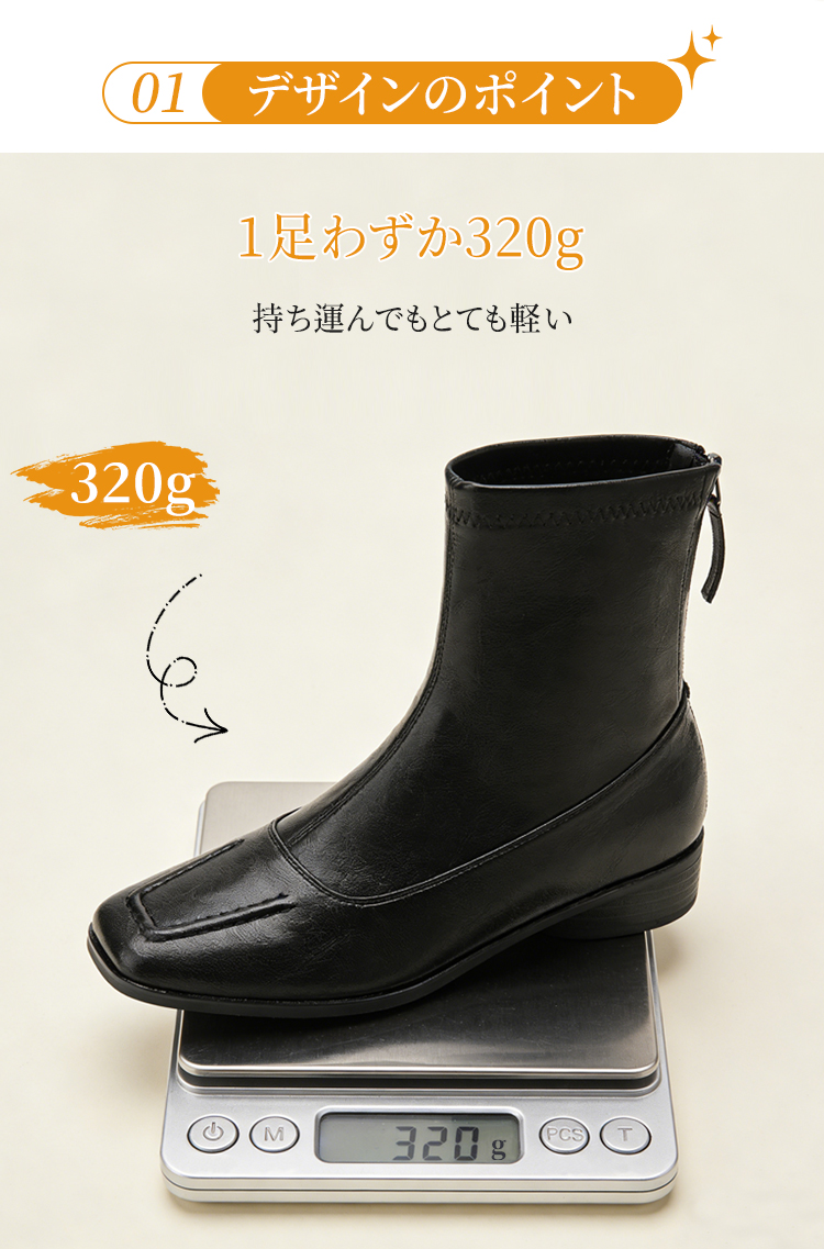 ストレッチ ショートブーツ スクエアトゥ バックジッパー 3cmローヒール 2種裏地選べる 軽量設計
