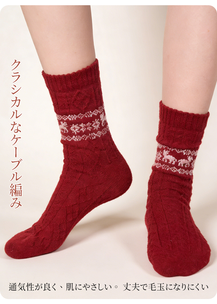 北欧風ウールソックス ケーブル編み ジャガード柄 あったか靴下 大人可愛い 4足セット