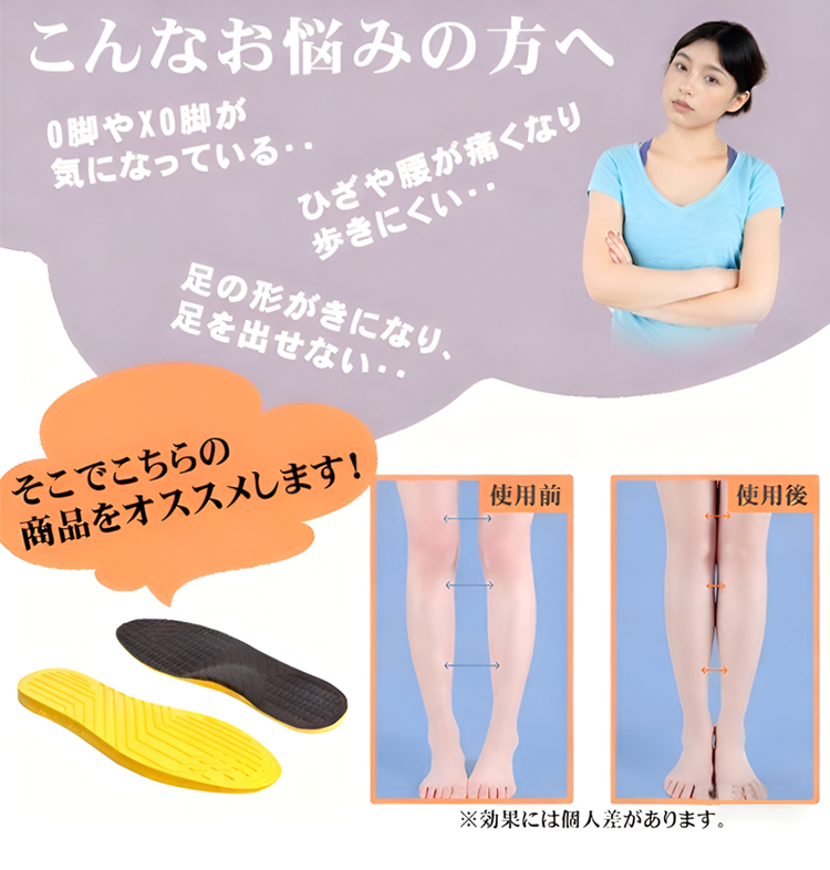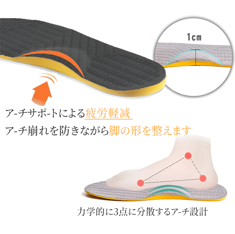 O脚 X脚 矯正 インソール 重心補正 アーチサポート 衝撃吸収 天然ラテックス 男女兼用
