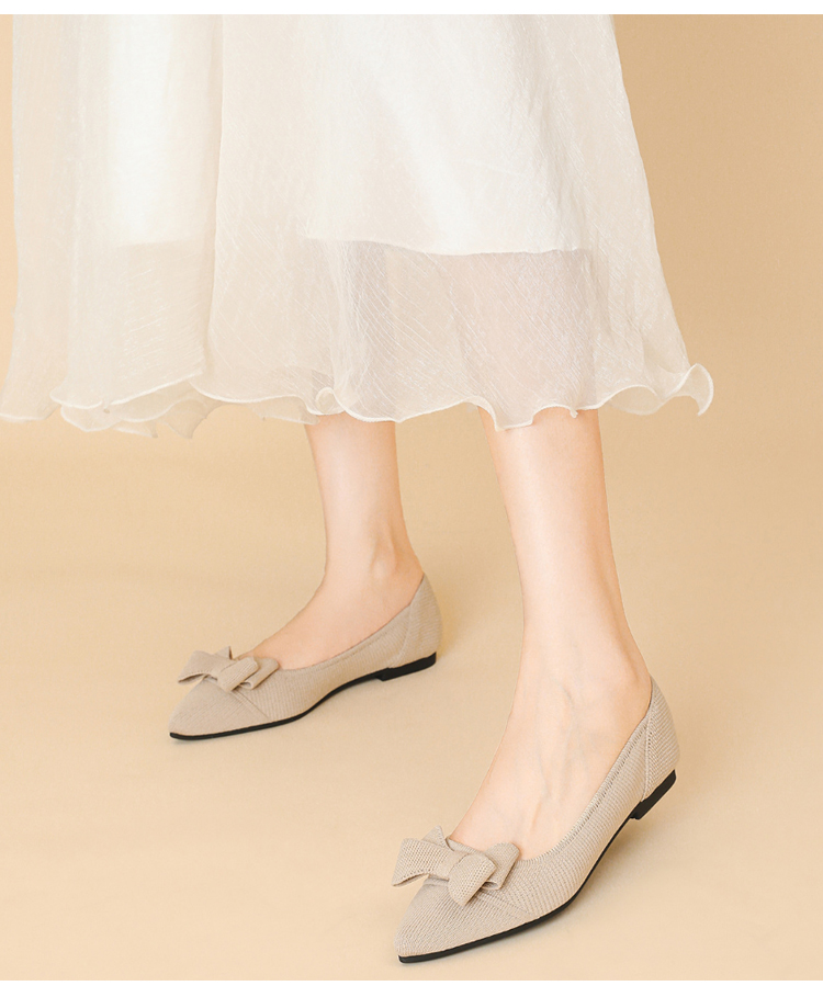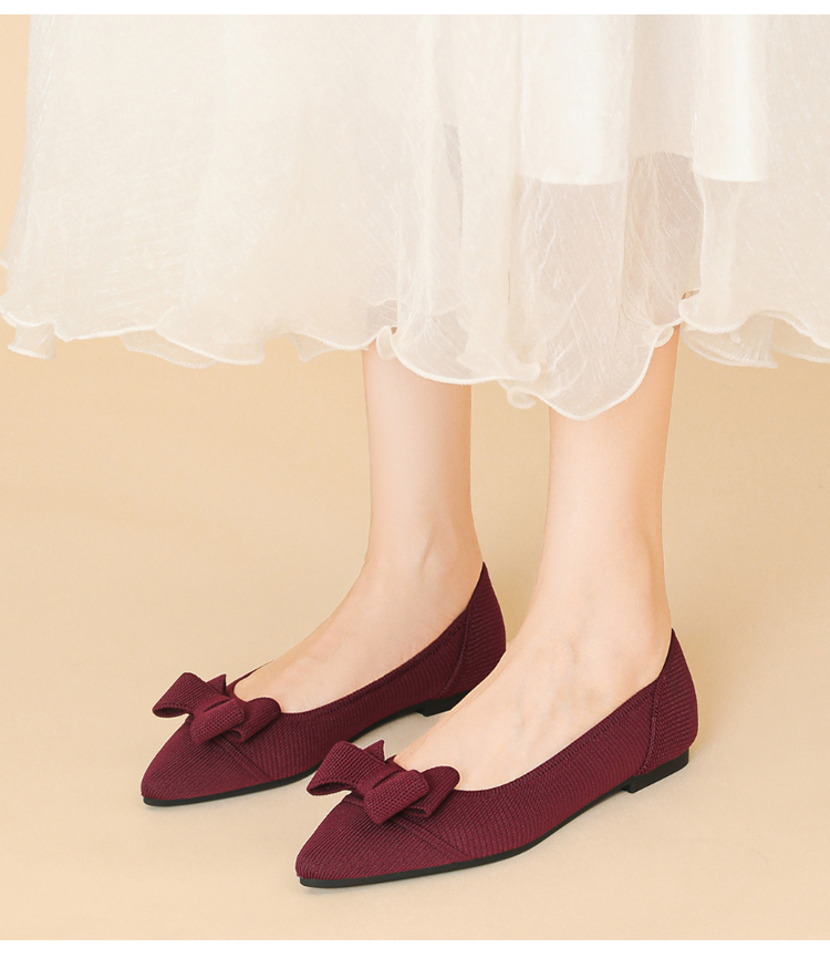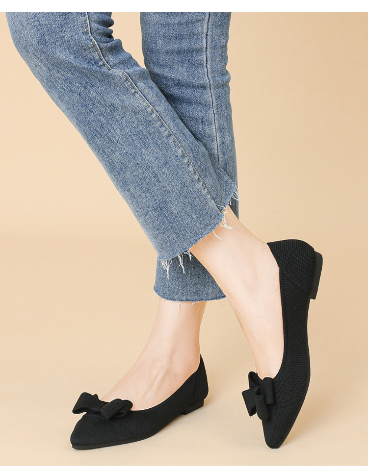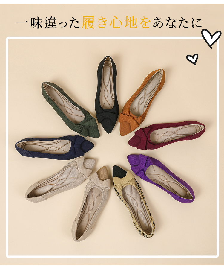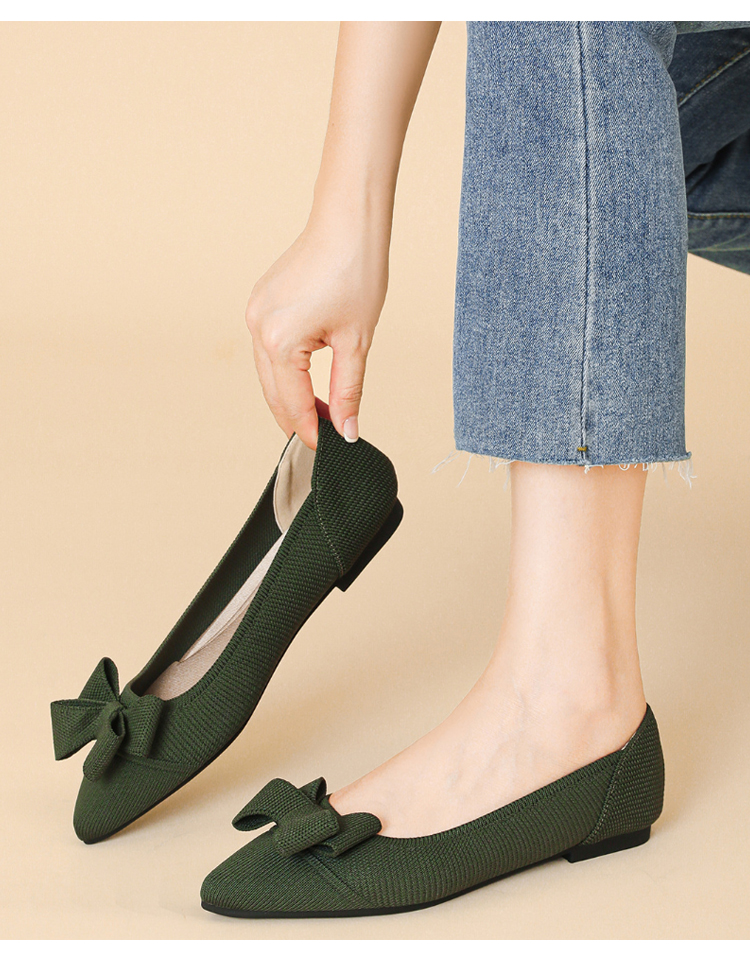 ポインテッドトゥ リボン ニットパンプス 軽ふわ 痛くない ローヒール レディース