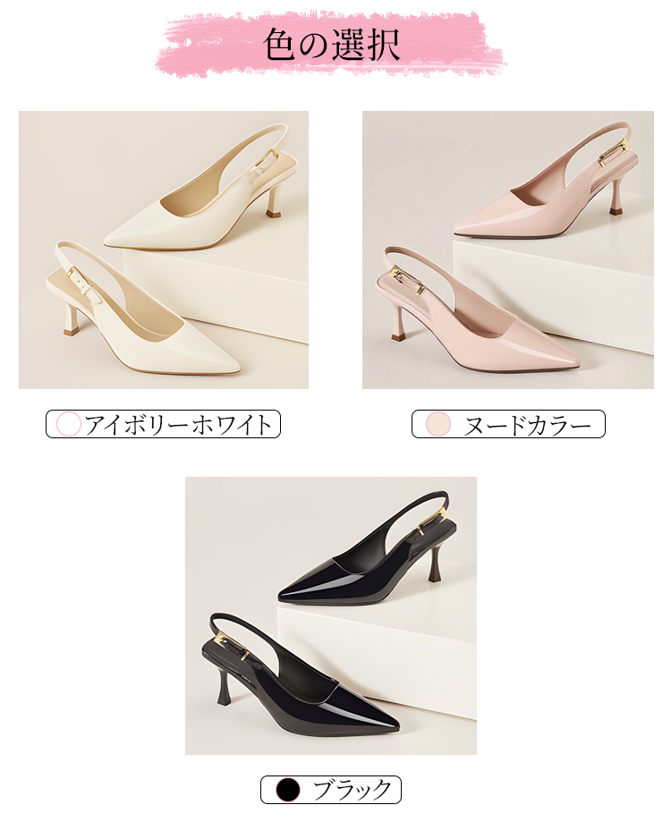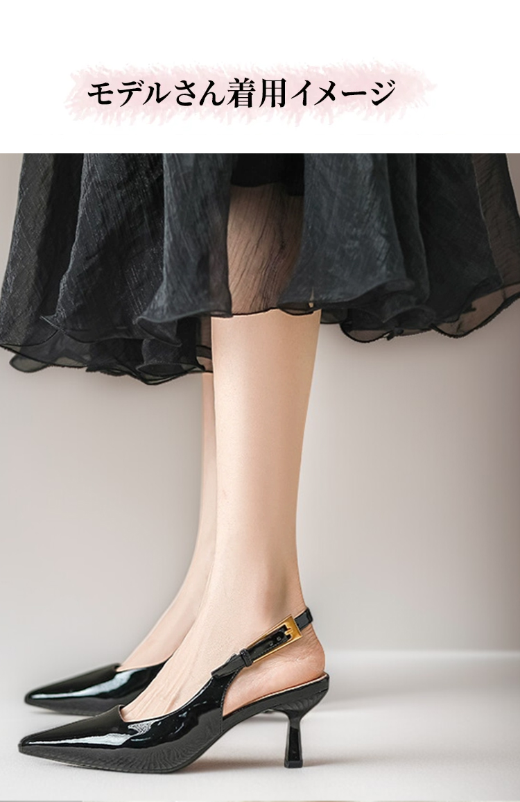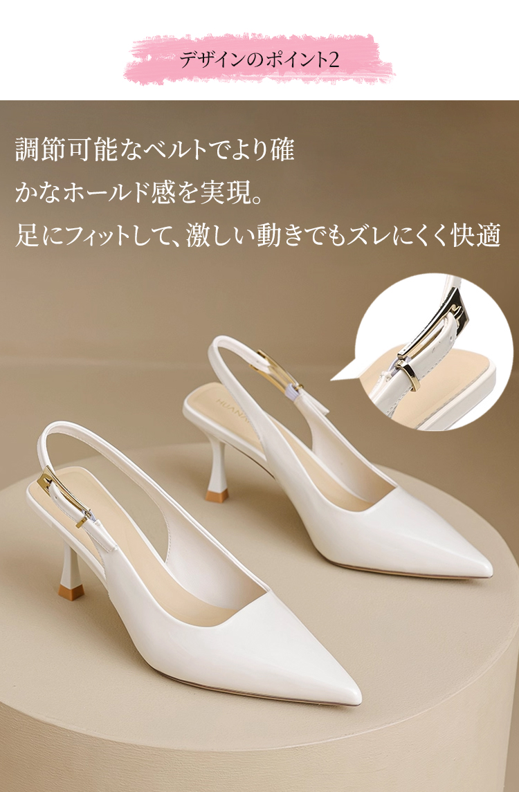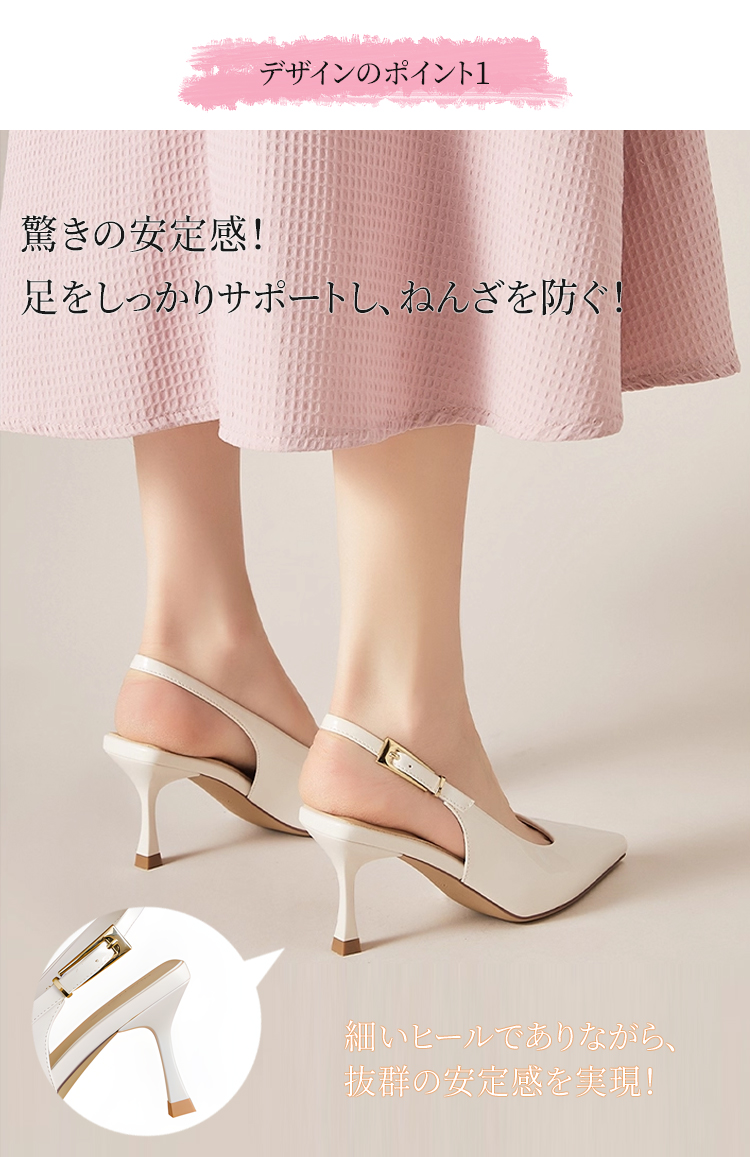 ポインテッドトゥ バックストラップパンプス 5.5cmヒール 痛くない 高反発クッション