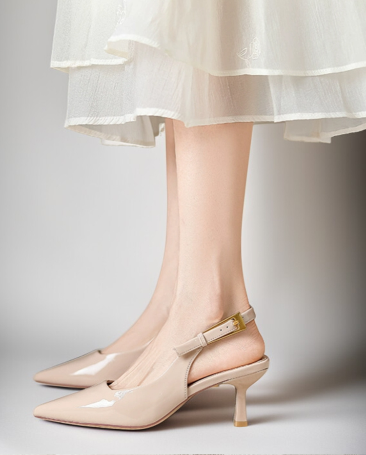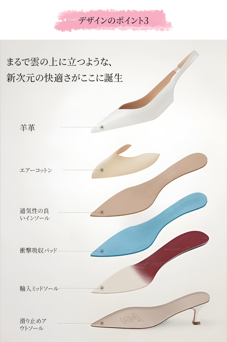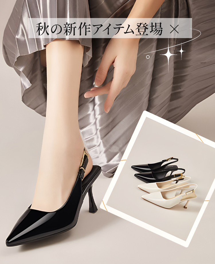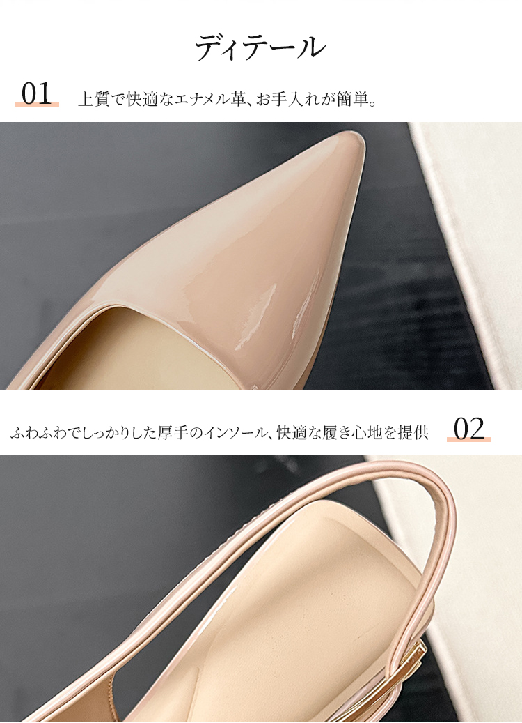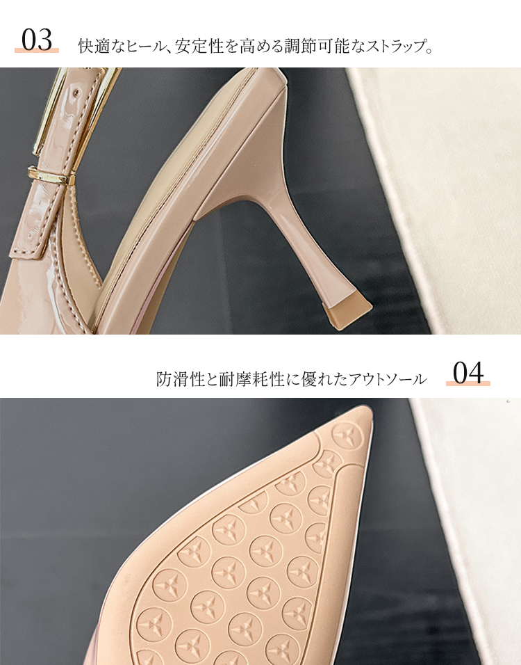 ポインテッドトゥ バックストラップパンプス 5.5cmヒール 痛くない 高反発クッション