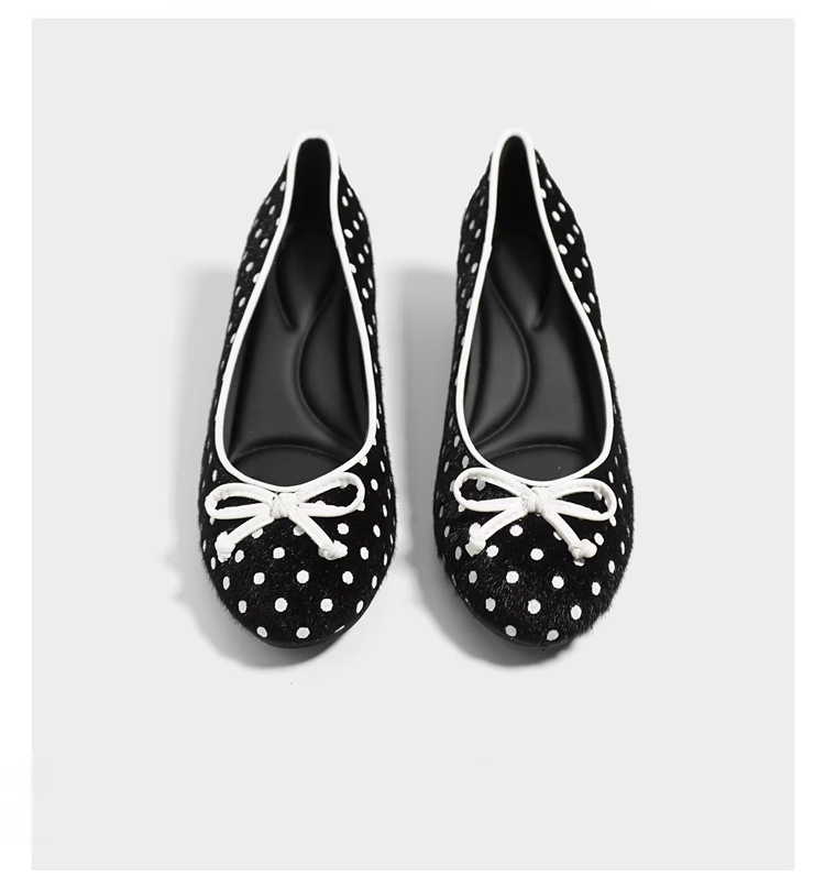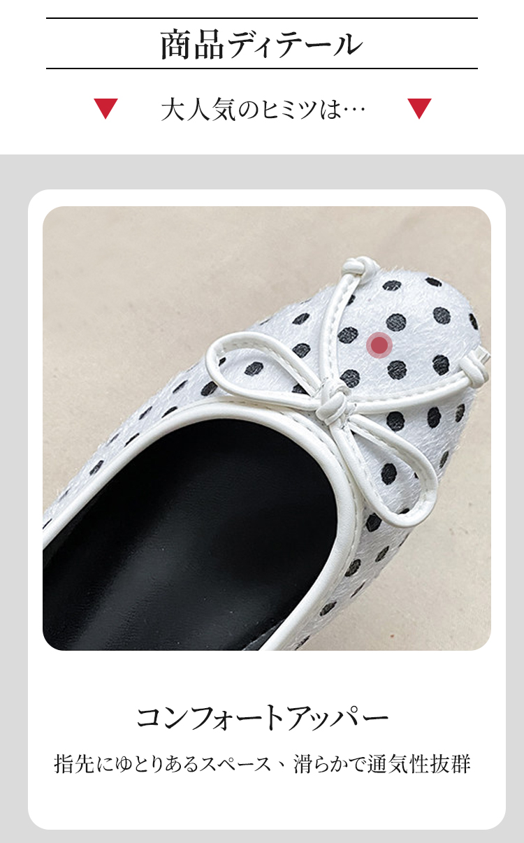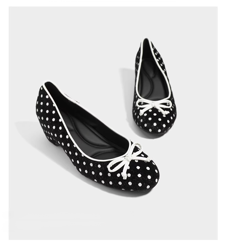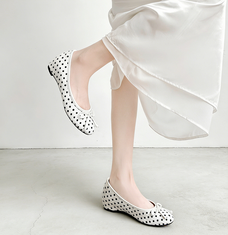 Emiwalk ポルカドット バレエパンプス ブラック 4cmインビジブルヒール 早春コーデイメージ シープスキンとホースヘアを採用した通気性の良いドット柄アッパー詳細 弾力のあるソフトレザーを手で曲げて柔軟性を表現したバレエパンプス 隠しウェッジヒール4cmによる美脚効果と軽快な歩行感の着用比較 長時間歩いても疲れにくい4cm隠しウェッジソールとインソールの内部構造 足を優しくサポートする柔らかい高機能インソールとアウトソールの詳細 エレガントなラウンドトゥデザインと甲高・幅広向けサイズ選びの案内 桜の下で履きこなす柔らかい履き心地のドット柄パンプス お花見・デートスタイル ベージュのパンツに合わせた優しい通勤スタイルのポルカドットパンプス クラシックなモノクロドットにキャッツイヤーリボンを添えたバックスタイル 百搭なブラック ホワイト 靴のディテール 【本革&立体的リボン】レトロドットフラットパンプス|4cmマイクロヒール・歩いても痛くない・通勤&デート万能・低身長さんも脚長効果抜群 【本革&立体的リボン】レトロドットフラットパンプス|4cmマイクロヒール・歩いても痛くない・通勤&デート万能・低身長さんも脚長効果抜群