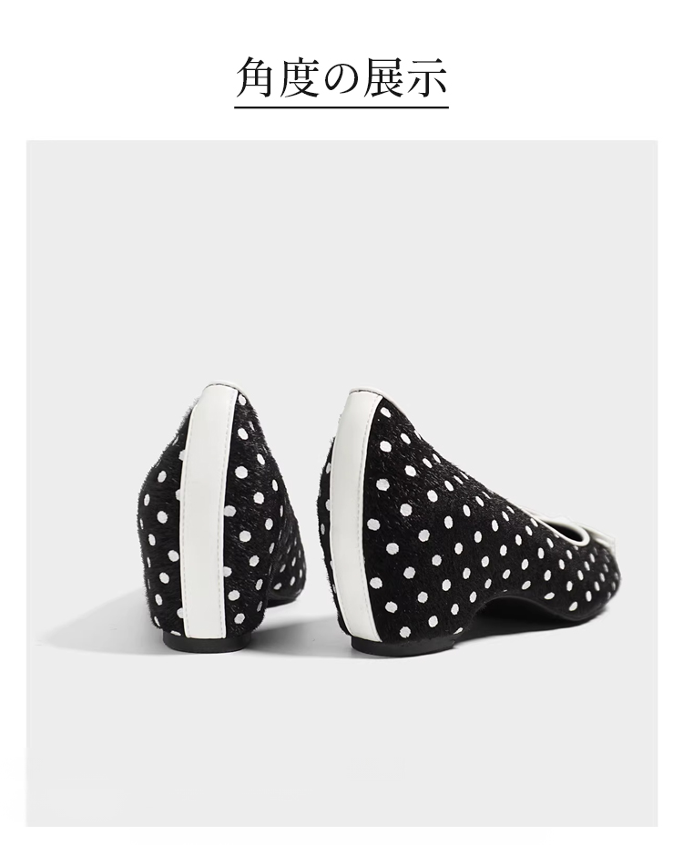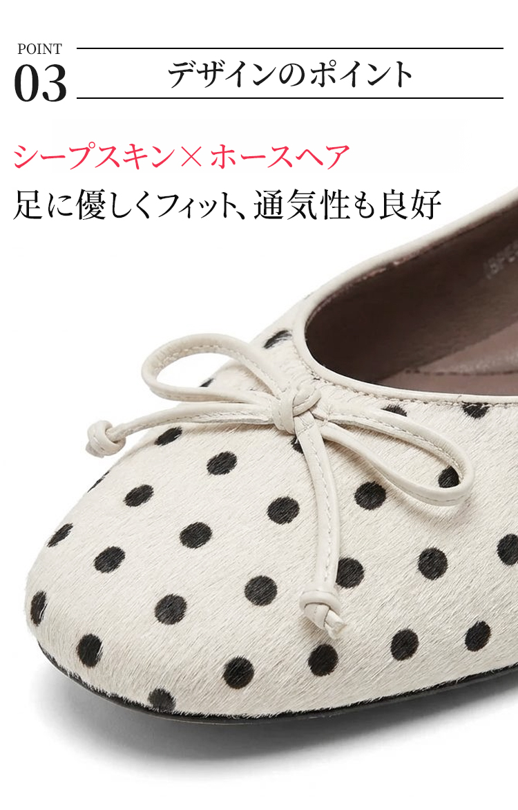 本革 ポルカドット バレエパンプス インビジブルヒール 4cm 羊革 ホースヘア