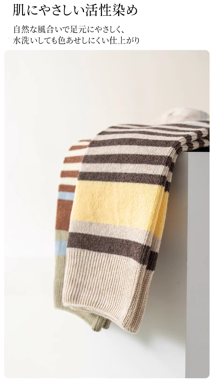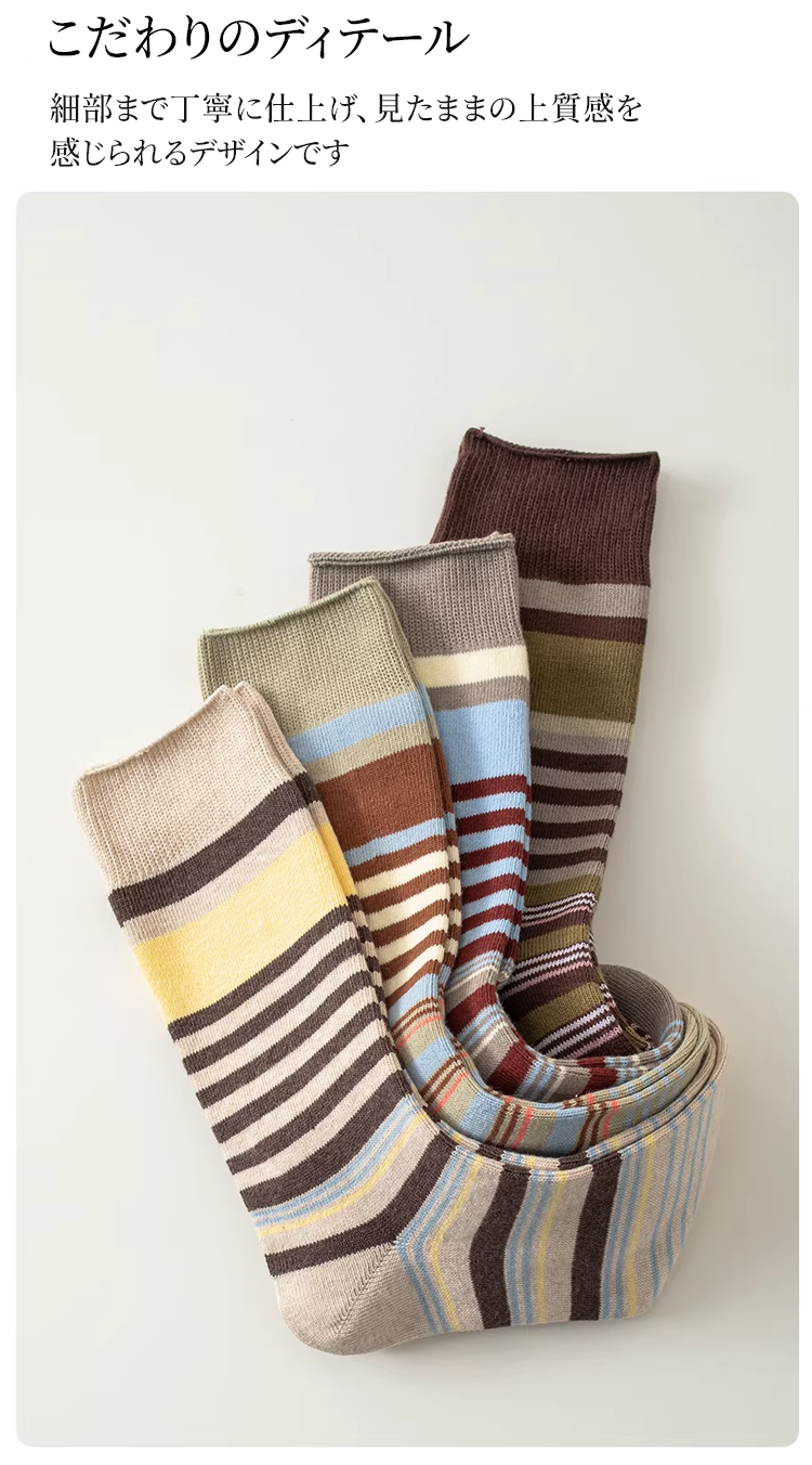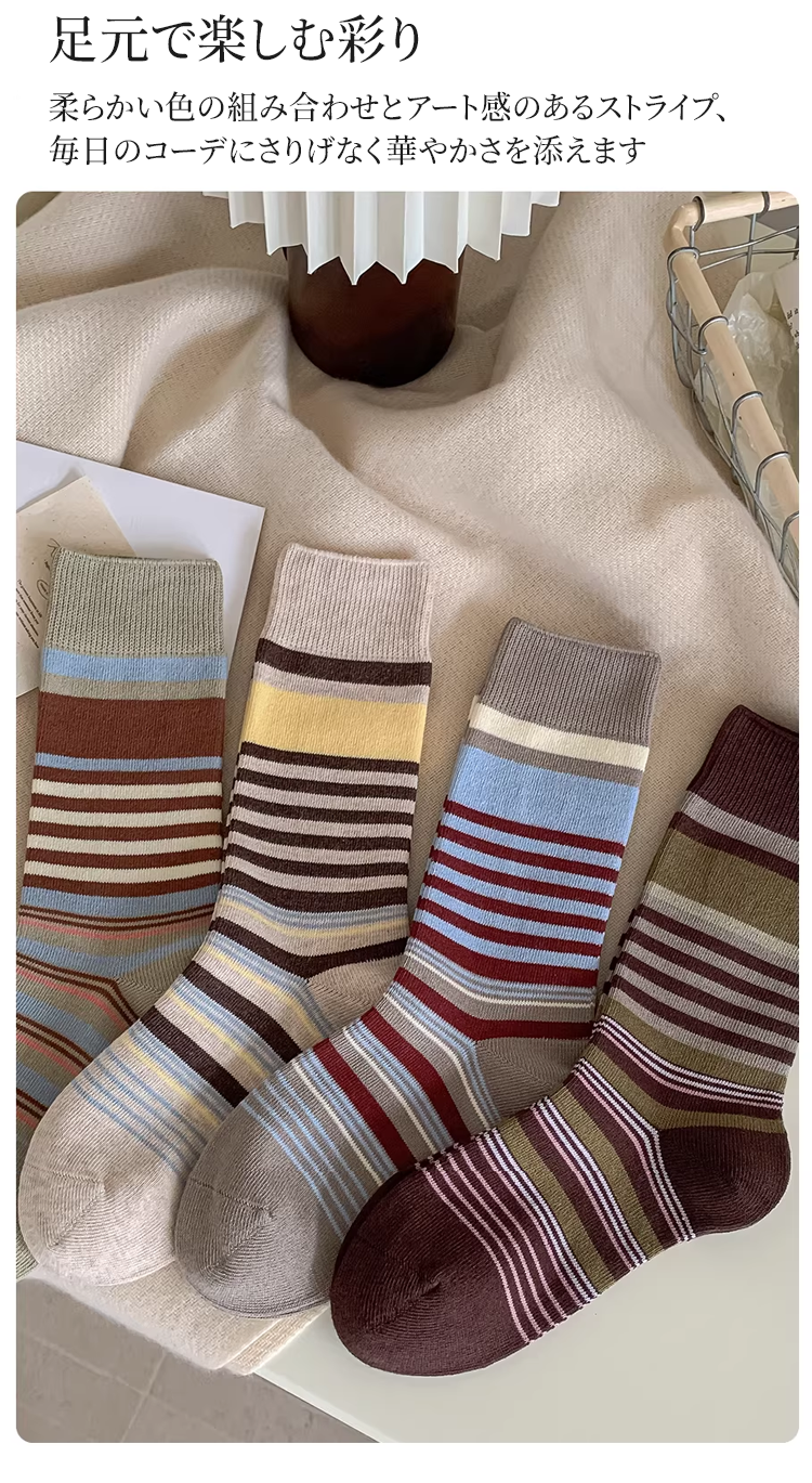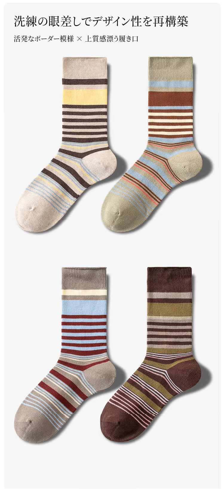 厳選超長綿 コントラストストライプ ソックス 4足セット 通気性 耐久性