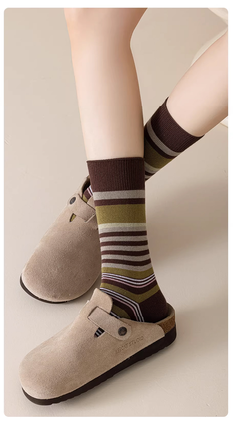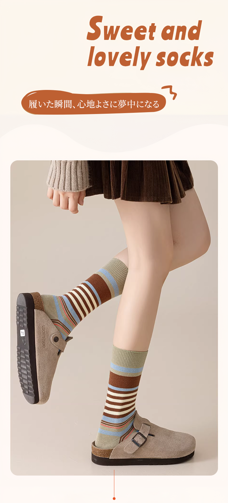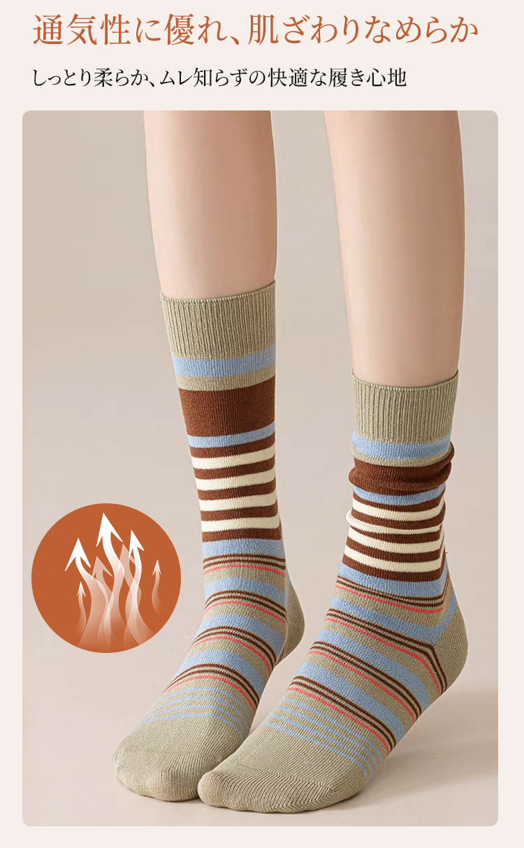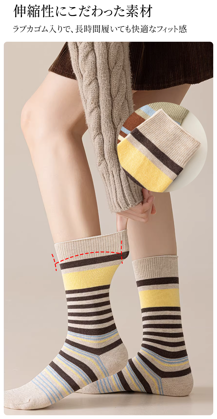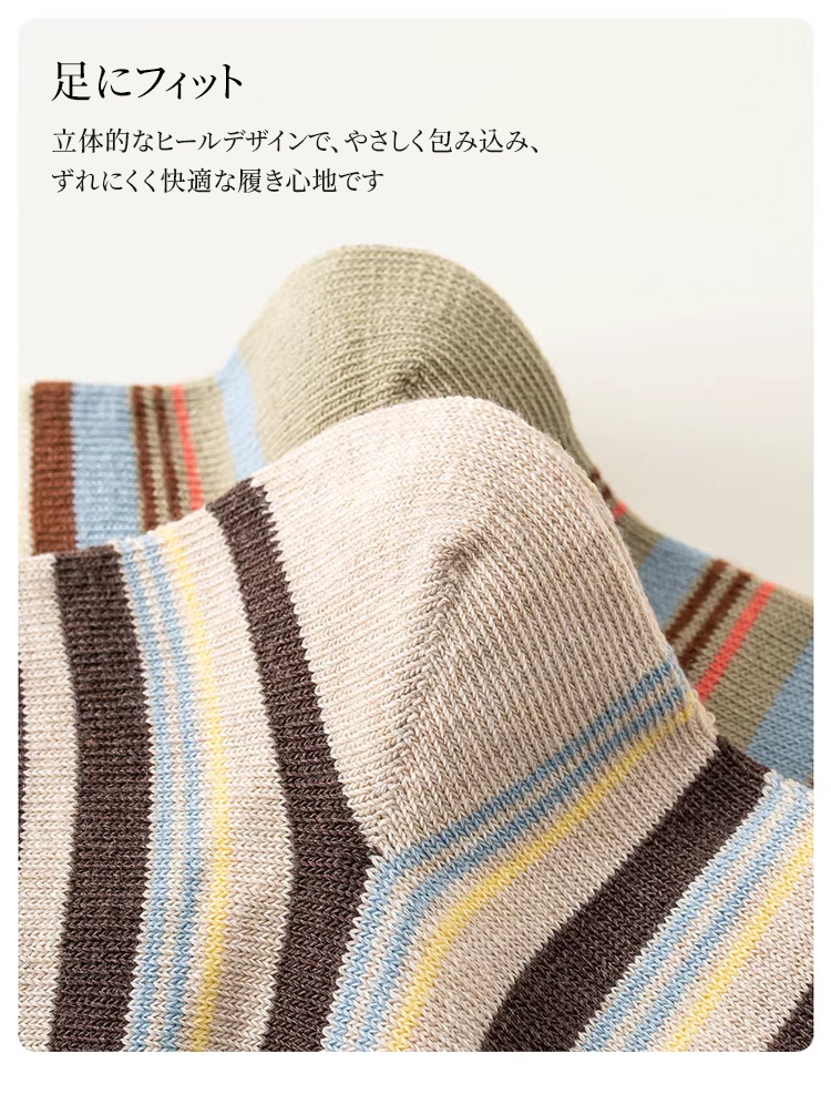 厳選超長綿 コントラストストライプ ソックス 4足セット 通気性 耐久性