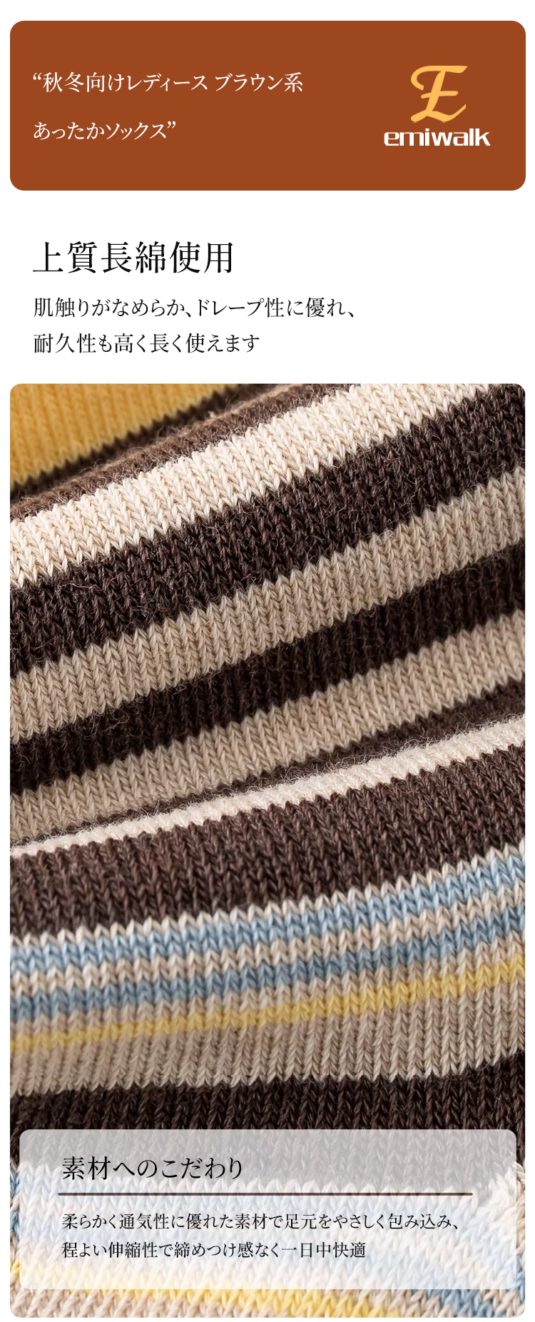 厳選超長綿 コントラストストライプソックス 4足セット ナチュラル丈20cm 厳選超長綿 コントラストストライプソックス 4足セット ナチュラル丈20cm 柔らかくしなやかで耐久性のある厳選ロングコットンの編み地 吸湿・通気性に優れ蒸れを防ぐしっとり柔らかなストライプソックス 伸縮性にこだわったラブカゴム入りの履き口 締め付けないフィット感 クラシックとモダンが融合したコントラストストライプのカラーバリエーション 秋冬向けレディース ブラウン系あったかソックス 秋冬向けレディース ブラウン系あったかソックス 秋冬向けレディース ブラウン系あったかソックス 秋冬向けレディース ブラウン系あったかソックス 秋冬向けレディース ブラウン系あったかソックス 秋冬向けレディース ブラウン系あったかソックス 秋冬向けレディース ブラウン系あったかソックス