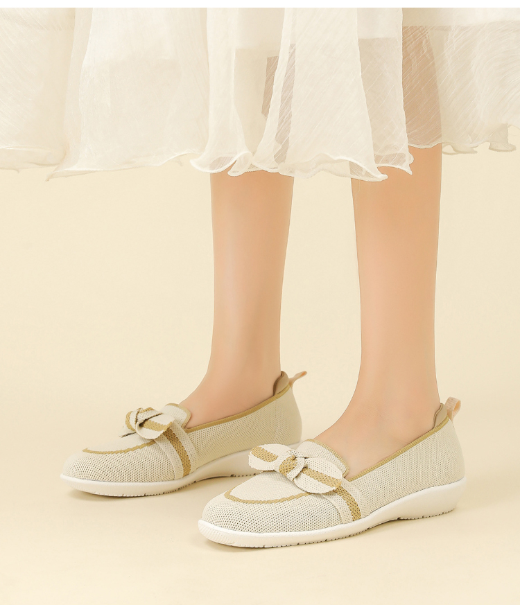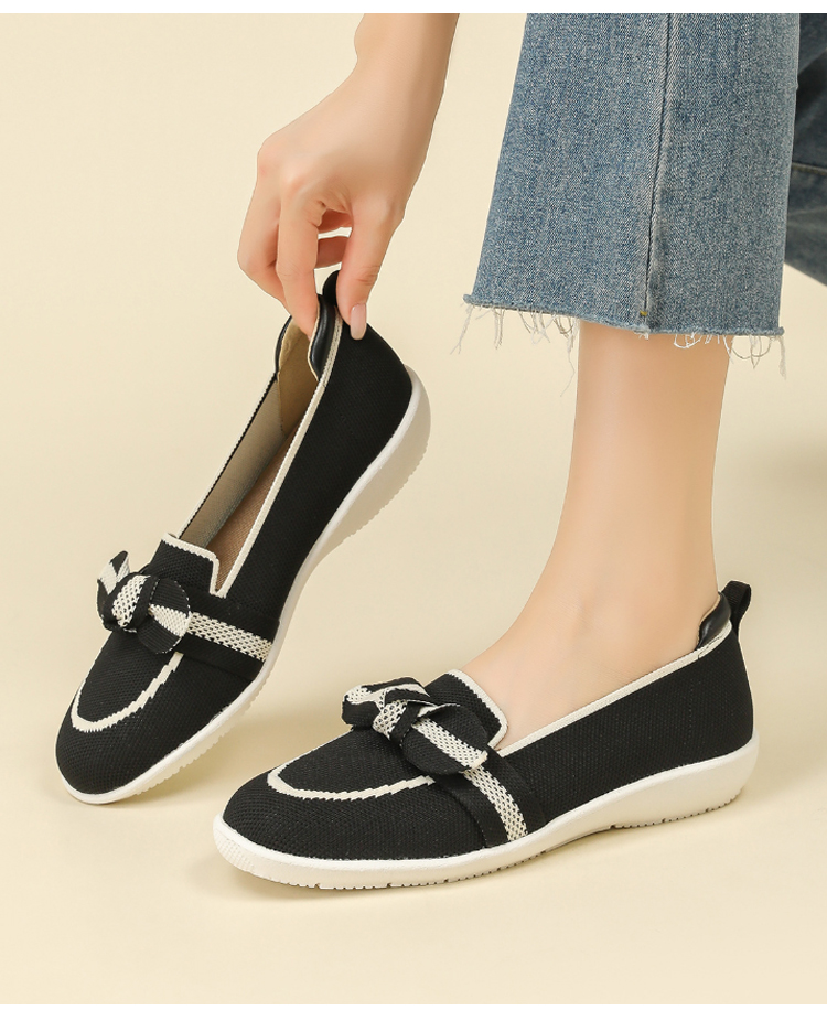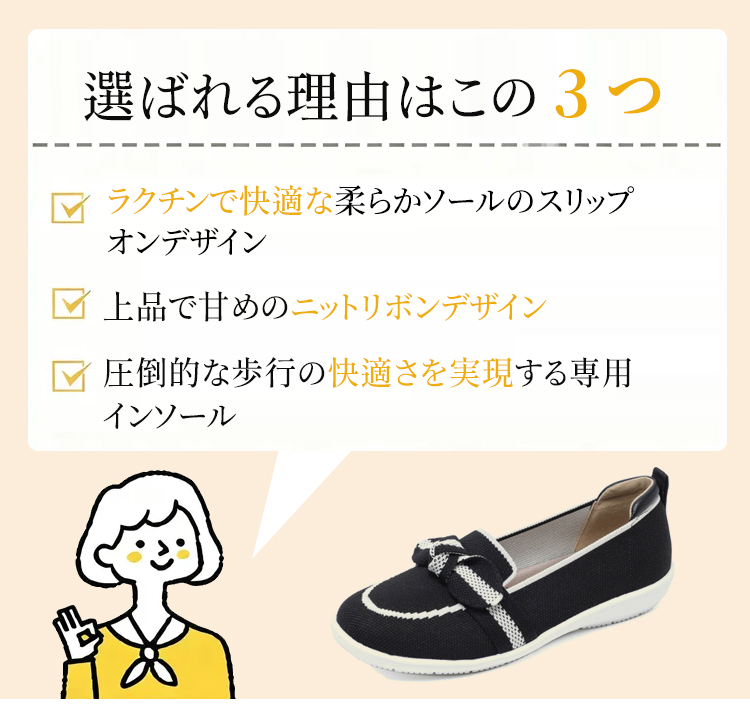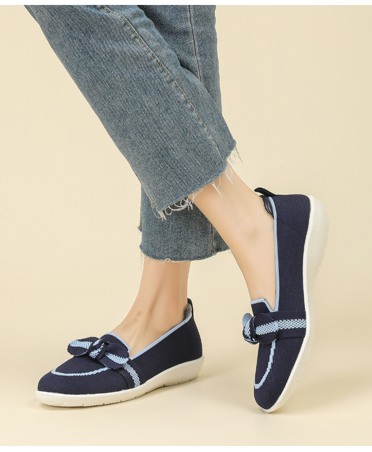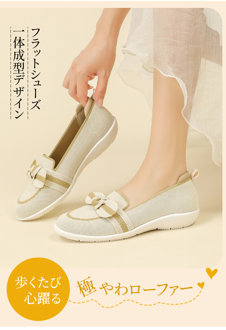リボンモチーフ ニットローファー 軽量 通気性 ストレッチ 屈曲ソール レディース