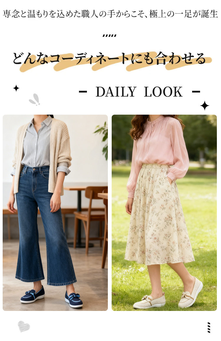 リボンモチーフ ニットローファー 軽量 通気性 ストレッチ 屈曲ソール レディース Emiwalk リボンモチーフ ニットローファー ベージュ 着用イメージ Emiwalk ニットローファー ブラック ネイビー ベージュ 3色展開 商品一覧 Emiwalk ニットローファー ブラック デニムスタイル 着用シーン スリムな足元 Emiwalk 高品質ニット素材 クローズアップ 軽量 通気性 柔らかさの訴求 Emiwalk 屈曲ソール 柔軟性テスト 長時間歩いても疲れにくい機能紹介 Emiwalk 高弾性インソール ラテックス ライクラ素材 通気性設計 Emiwalk 安定感のあるヒールとかかと部分 履きやすさの構造 Emiwalk リボンデザイン 詳細 美しいシルエットの強調 ローファー(浅めのオープントゥ+ニットリボンデザイン) - 1011247077 - emiwalk ローファー(浅めのオープントゥ+ニットリボンデザイン) - 1011247077 - emiwalk