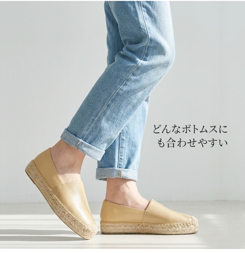 羊革 バイカラー ジュート エスパドリーユ スリッポン フラットシューズ