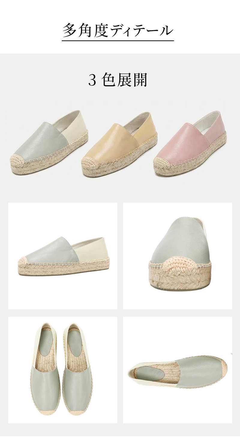 【Emiwalk】ナチュラルスピリットカラーブロックエスパドリーユ | 羊革×ジュート編み・通気性快適フラットシューズ