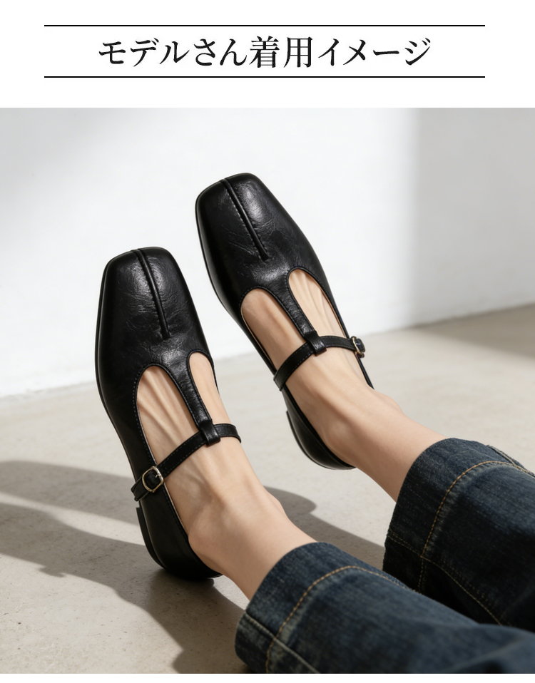 Tストラップ スクエアトゥ パンプス ローヒール 滑り止めソール