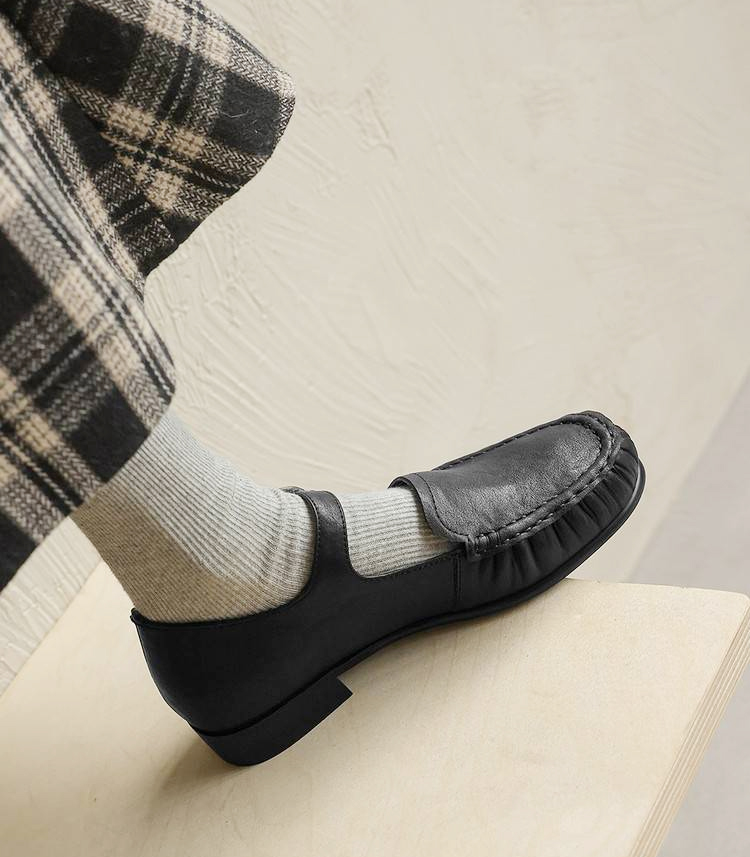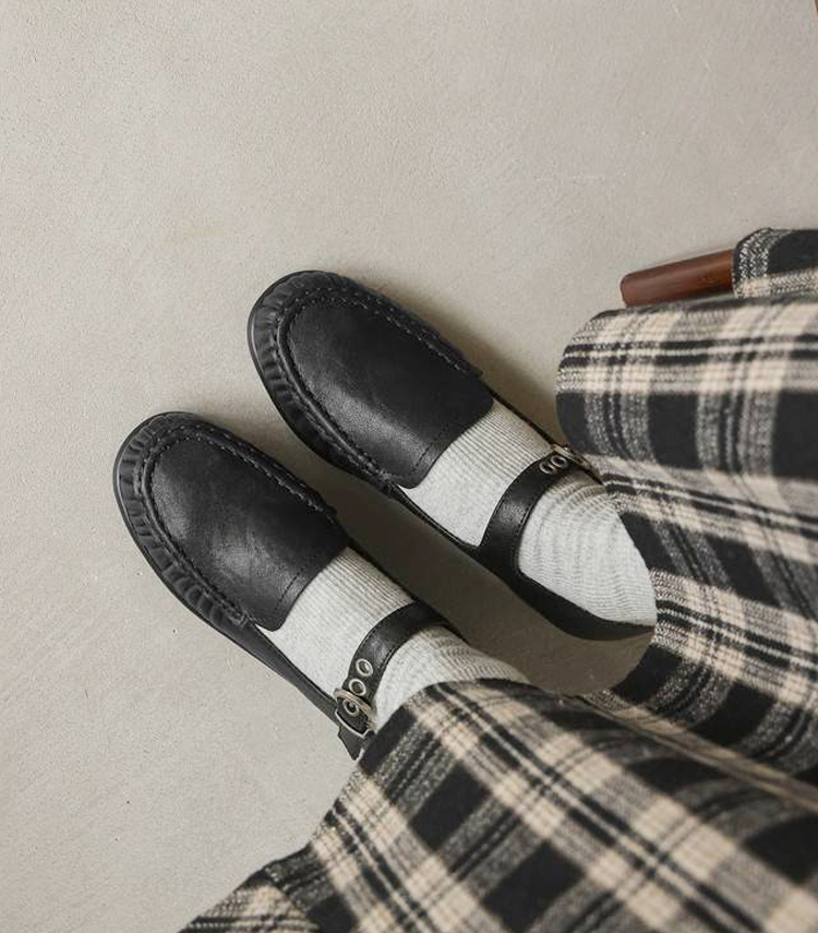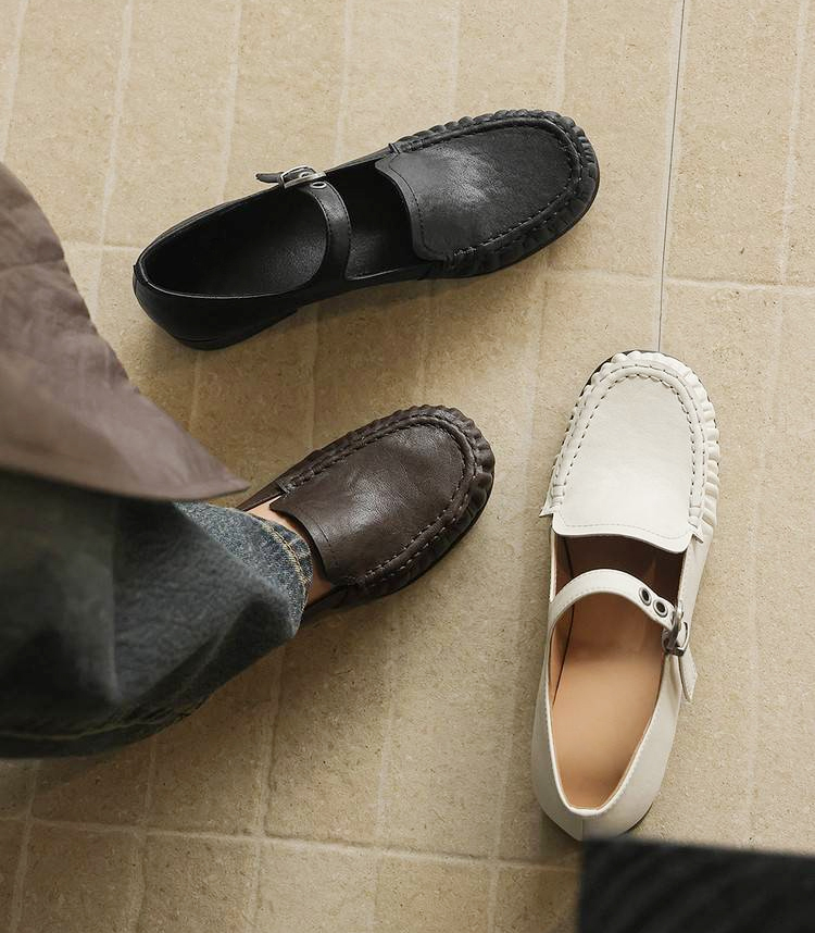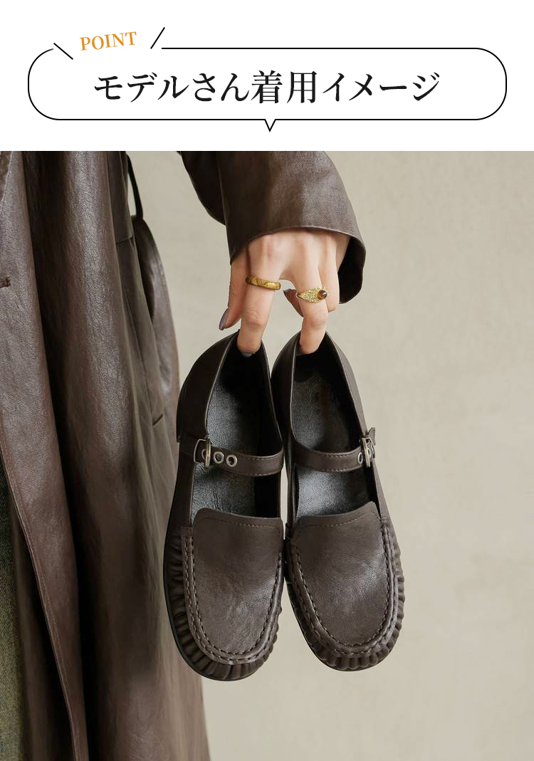本革 メリージェーン ローファー ストラップ パンプス ヴィンテージ風 牛革