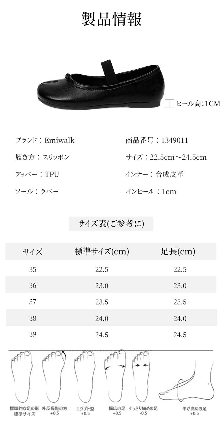 Eフラットバレエタビシューズ 足袋バレエシューズ ブラック 着用シーン スカート合わせ 22.5-24.5cm タビパンプス レッド デニムスタイル コーディネート バレエ調デザイン Eフラットバレエタビシューズ Eフラットバレエタビシューズ Eフラットバレエタビシューズ Eフラットバレエタビシューズ 足袋型バレエシューズ つま先ゆったり設計 外反母趾サポート フィット感 タビシューズ 圧力分散 構造図 正しい足配列 歩きやすい設計 比較 防水TPUアッパー素材 質感 柔らかい 快適な履き心地 ホワイト 伸縮ゴムバンド ストラップ 伸縮性 足にフィット 脱げにくい構造 足袋バレエシューズ ライトブルー 平置き 細部デザイン 快適パンプス Eフラットバレエタビシューズ Eフラットバレエタビシューズ 日本監修 日本工場 靴製造プロセス 職人手仕事 高品質保証 足袋シューズ メリット 足指解放 安定感向上 屈曲性 グリップ力 Emiwalk 商品情報 1349011 サイズ表 1cmインヒール 素材構成 足袋バレエシューズ 弾性ストラップ付 防水TPU 1cmインヒール Eフラットバレエタビシューズ Eフラットバレエタビシューズ Eフラットバレエタビシューズ Eフラットバレエタビシューズ Eフラットバレエタビシューズ
