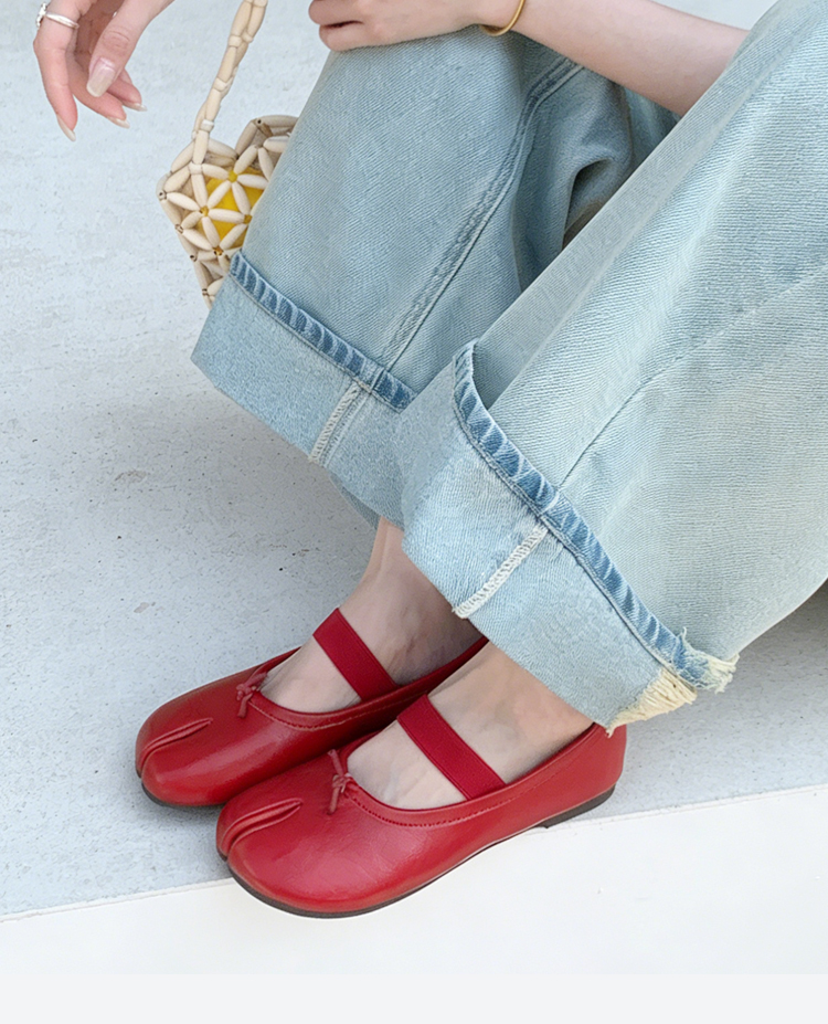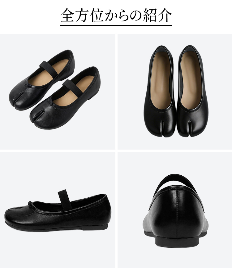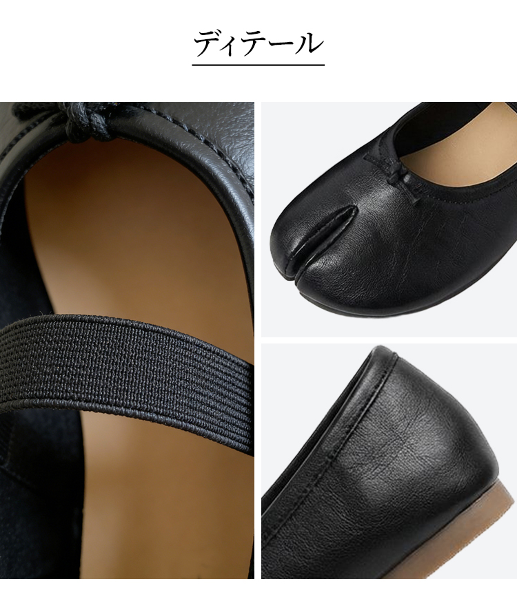 【Emiwalk】セパレートトゥのバレエシューズ。クラシックなブラックデザインで、レトロとモダンの要素を融合させ、日常の通勤やカジュアルなお出かけなど、様々なシーンに対応します。